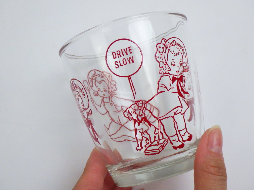 ヘーゼルアトラス社で製造されたこちらは、元はクラフト社のチーズ販売容器として作られたものなんですよ。使い終わった後、グラスとして使用出来るようになっています。