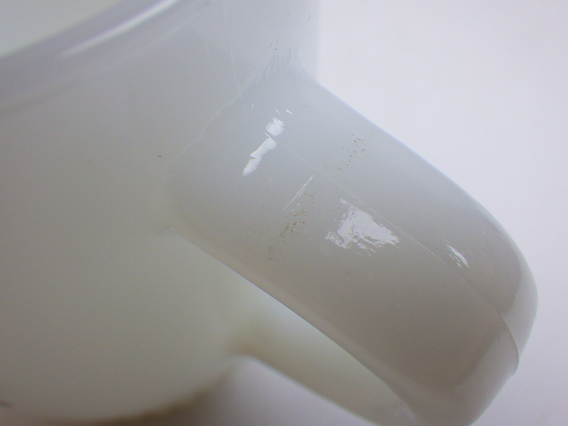 | condition | リム、ボトムに製造時よりのフリーバイト(ガタつき)があります。 ボトム、ハンドル上部に薄い着色がありますが、気にならない程度です。 その他ワレ、カケなく、ツヤもあり良い雰囲気です。 |