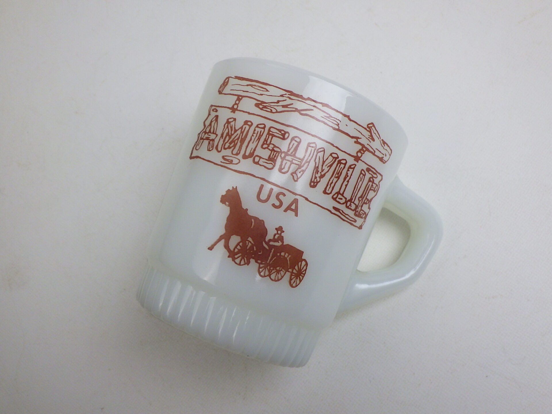 ”Fire king AMISHVILLE Mug ファイヤーキング リブドボトム アドバタイジング マグ