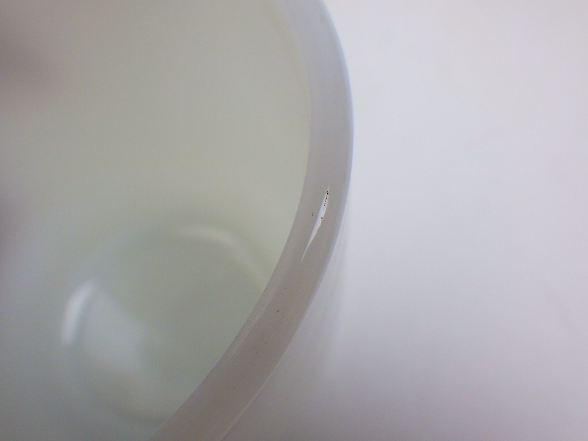 | condition | リム、ボトム、側面に薄い着色があります。 ハンドルに劣化線がありますがご使用には問題ありません。 その他ワレ、カケなく、ツヤもあり良い雰囲気です。 |