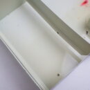 | アメリカで買い付けしたビンテージのファーストエイドキットです。 ファーストエイドキットとはその名の通り、怪我等をした時に初めの処置を行うための道具を詰合せたキットです。 こちらは壁に常設するためのフック穴がありますが、持ち出し用の持ち手も付いています。 蓋の裏には元々入っていたキットの内容が記されています。 細々した物を入れてキャンプに持ち出したり、お部屋のインテリアとして壁に打ち付けても雰囲気の出るアイテムですね。 |