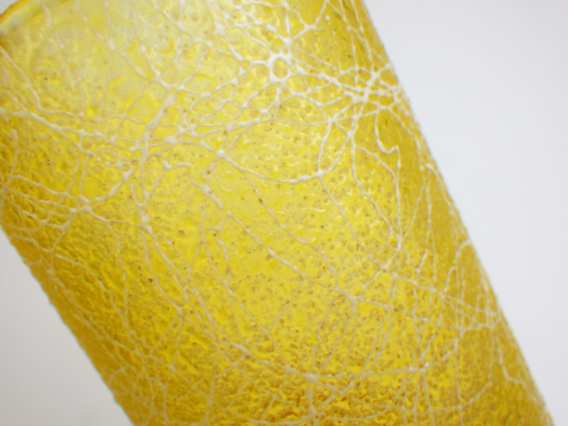 | アメリカで買い付けました。 ガラスのタンブラーにラバーコーティングが施されています。 ラバーの上のホワイトストリングは全て手作業で描かれているので、デザインはそれぞれ異なります。 夏場にジュースや麦茶を容れても、十分喉を潤してくれる容量が入ります。 食器棚に並べて飾っても可愛いアイテムですね。 |