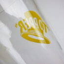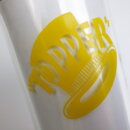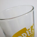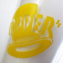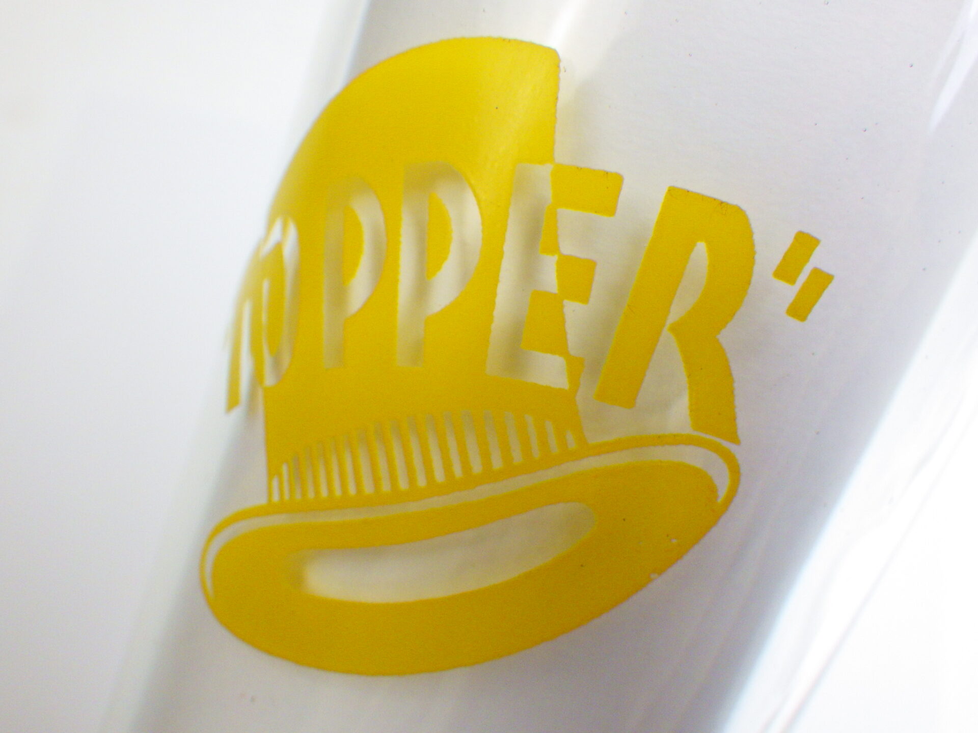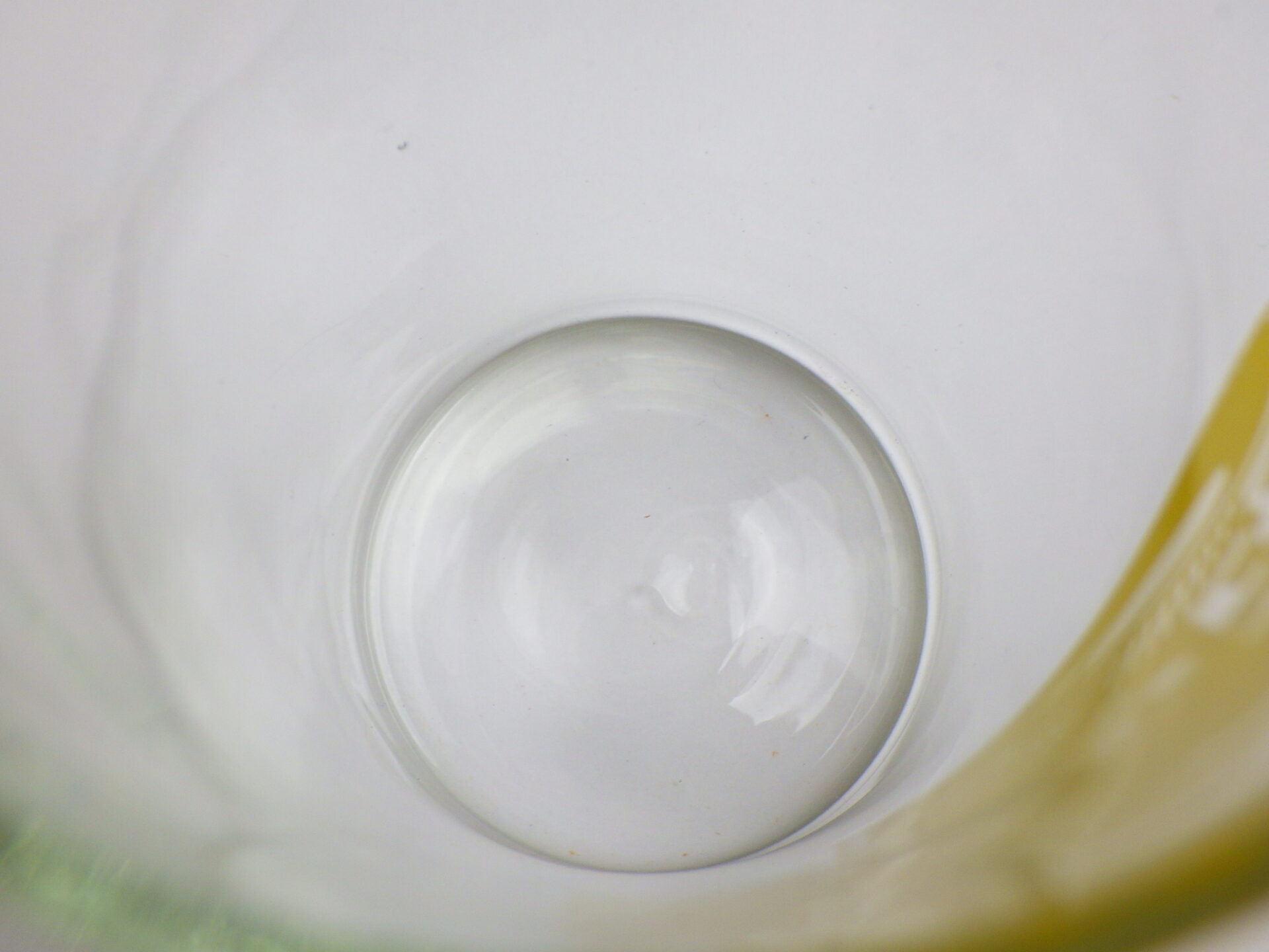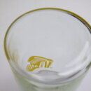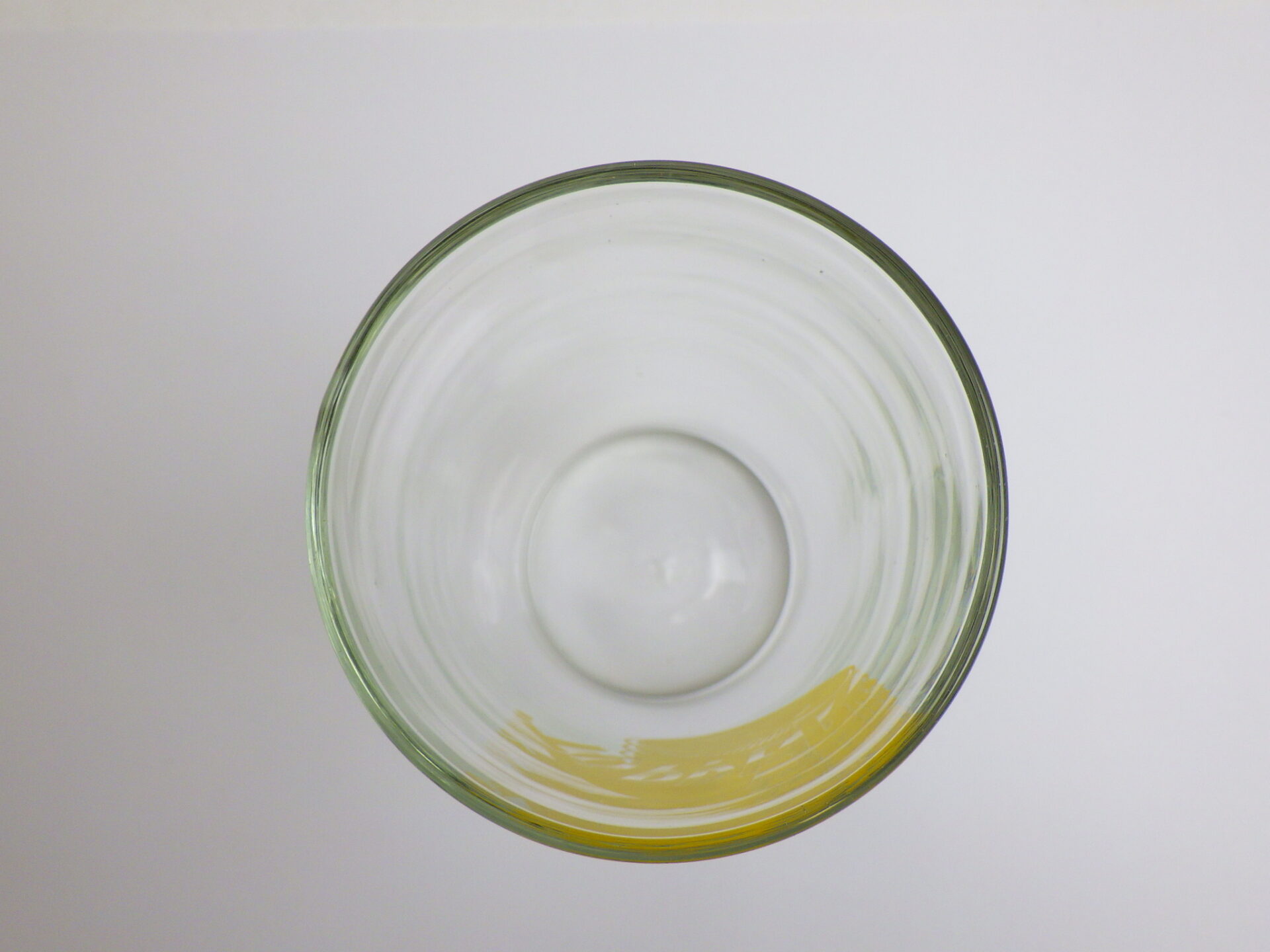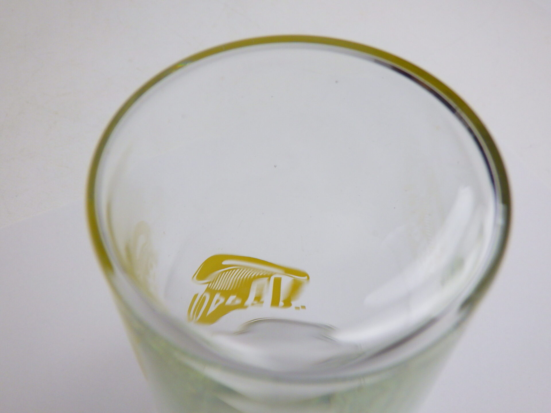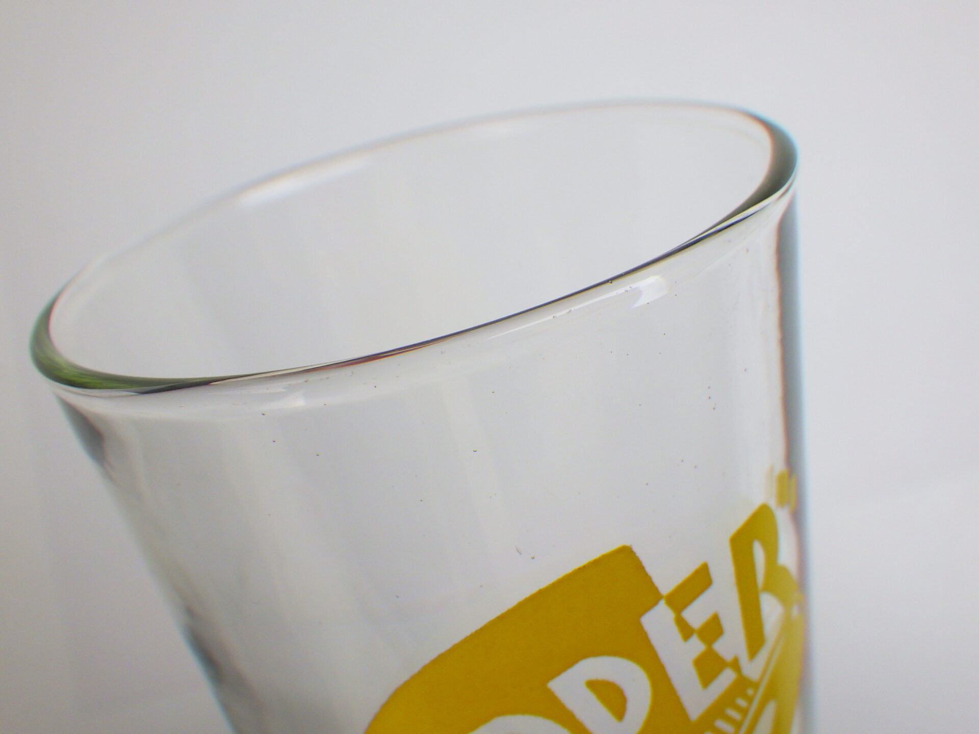 | アメリカで買い付けました。 帽子屋さんのアドバタイジンググラスでしょうか? 透明のグラスにポップなイエローが何とも言えない可愛らしさです。 夏はカルピスをいれて飲みたくなります。 |