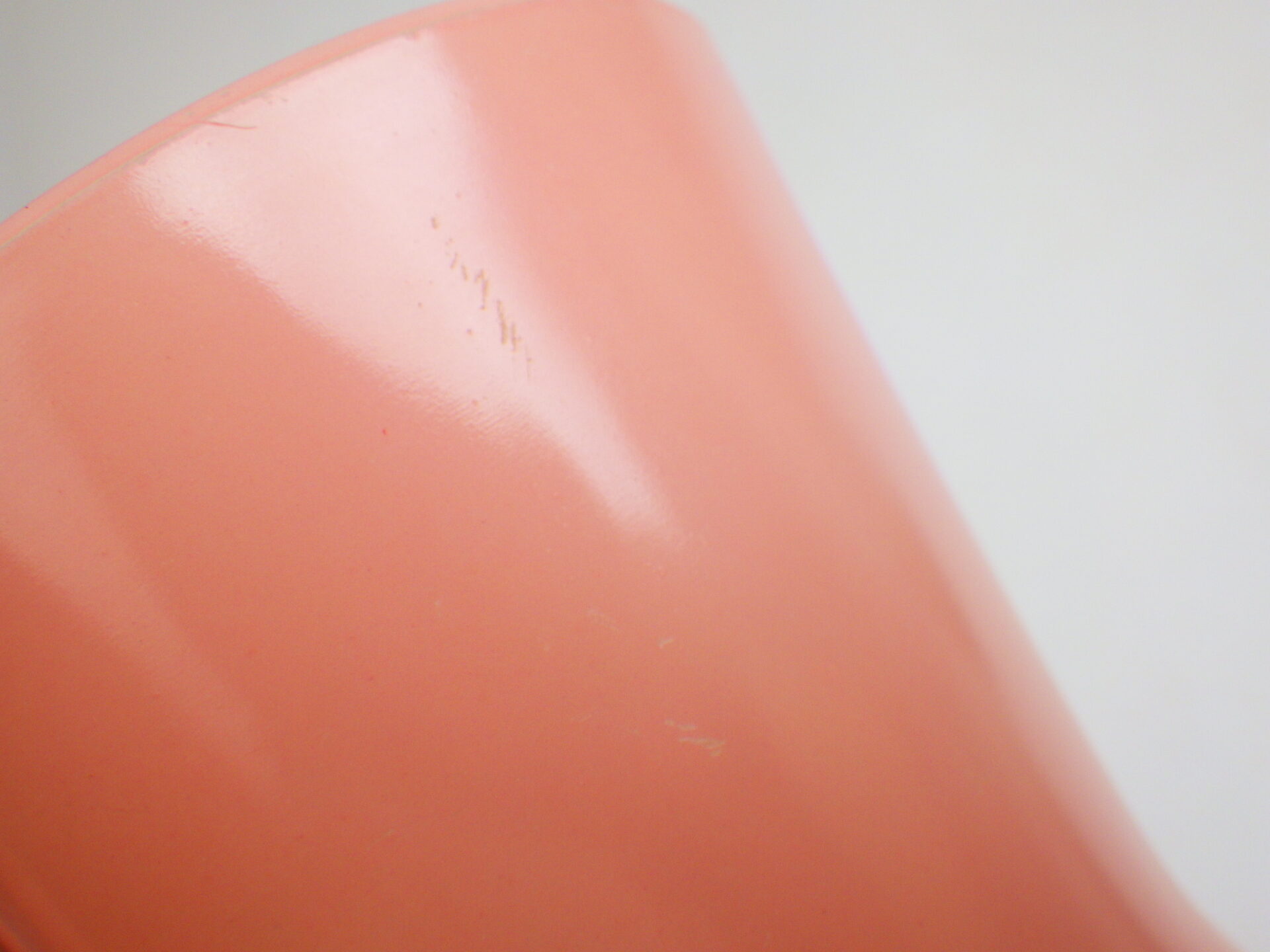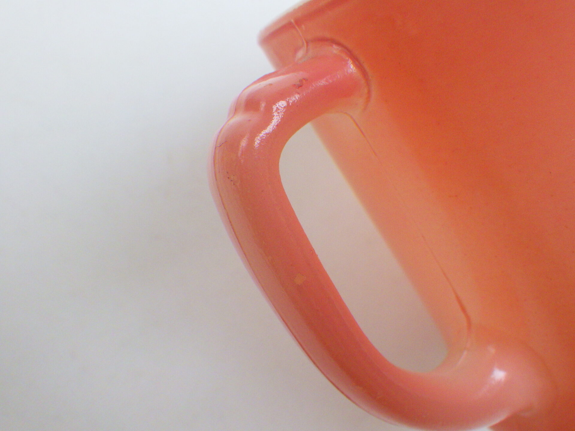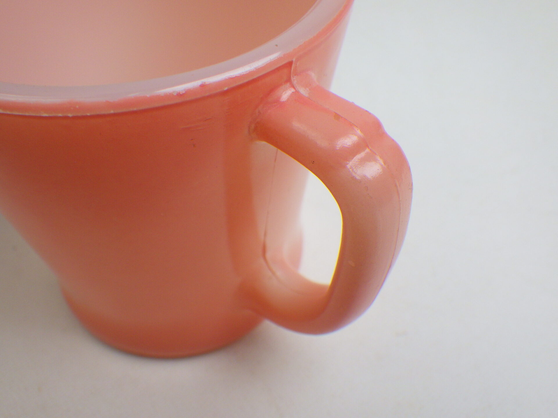 | Dハンドルマグのカラー吹付タイプです。 ホワイトのDハンドルマグをベースにして、カラーが施されており、12色程展開されています。 こちらは人気のピンクカラーです。ピンクは濃いピンクと薄いピンクの二種類がありますが、こちらは薄いピンクのタイプです。 マグも肉厚タイプで少しぽってりしています。 |