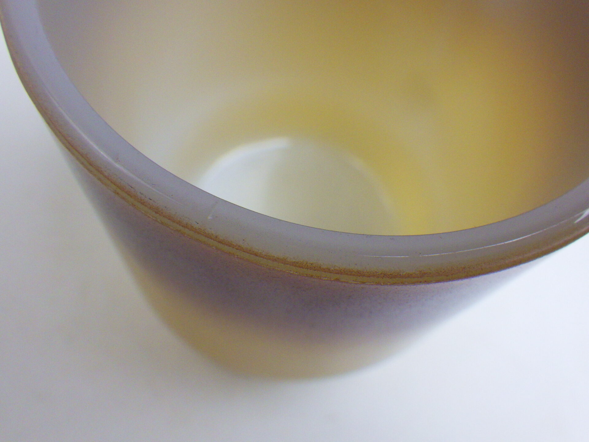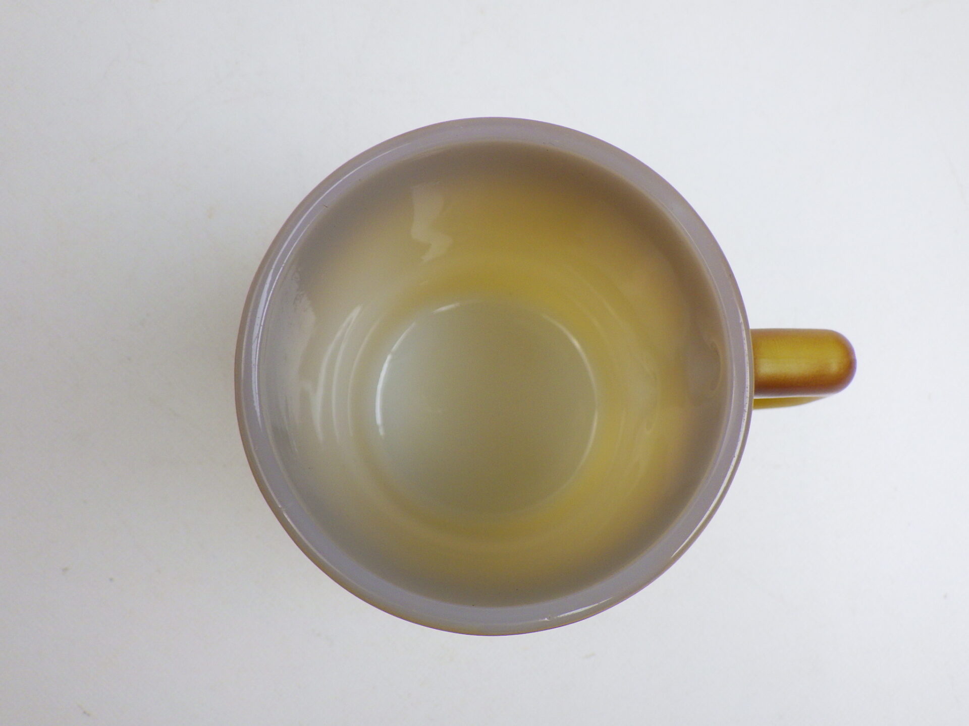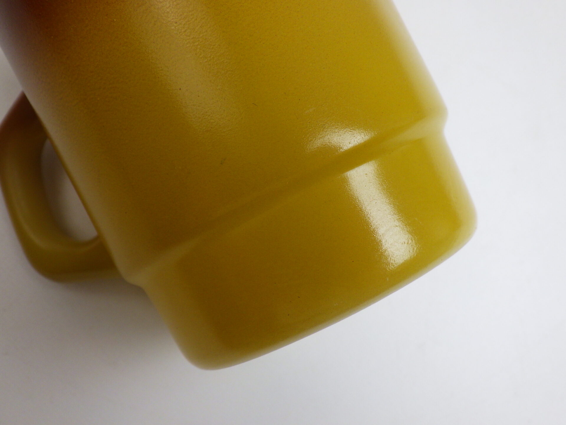 | スタッキング(積み重ね)出来るタイプのマグです。 様々なカラーパターンが出ていますが、こちらはグラデーションタイプ。 当時、アメリカの一般家庭で使用されていたものなので、比較的お手頃で価格で手に入れやすいですね。 飾って良し、使って良しのアイテムです。 |