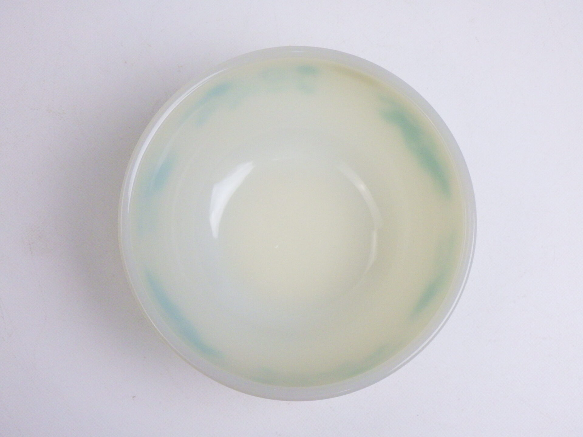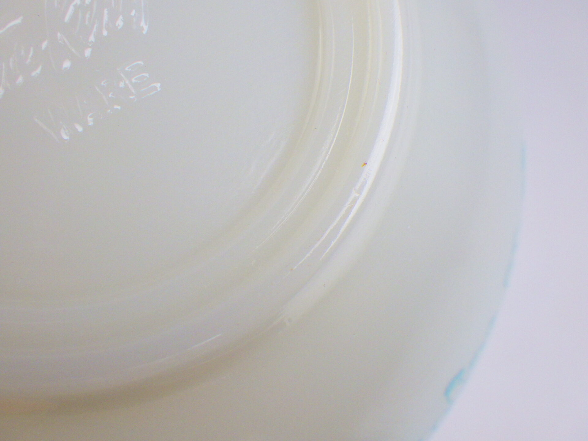 | condition | リムにわずかなフリーバイト(凹凸)があります。 内部に製造時よりの凹凸、ホワイトスポットがあります。 ボトムにわずかな着色があります。 その他ワレ、カケ等はなく、良い状態です。 |