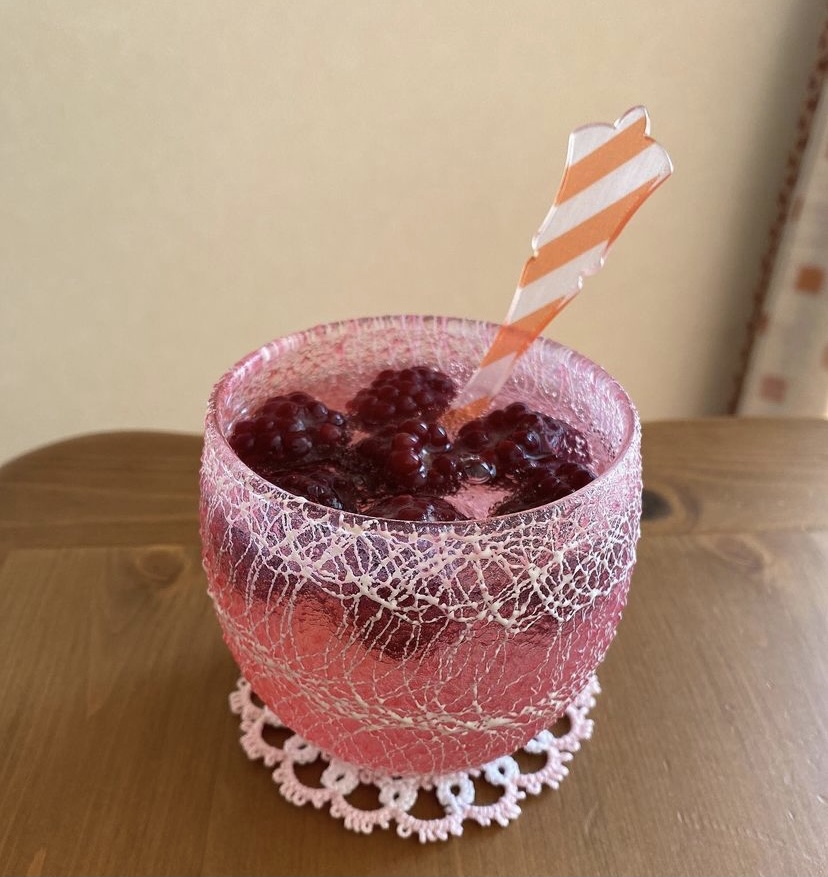 お庭で採れたブラックベリーをサイダーに浮かべて「お手製ブラックベリーソーダ」を作られたそうです。