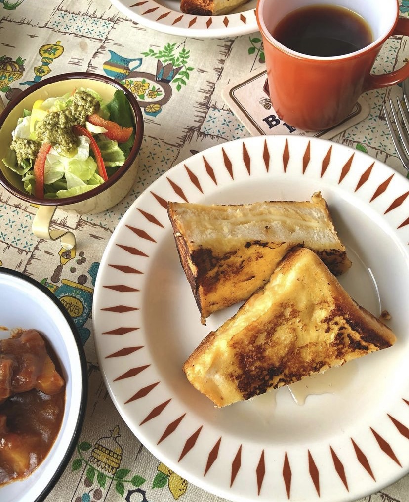 ホーマーラフリンのプレートにフレンチトーストが相性抜群で美味しそうです♪