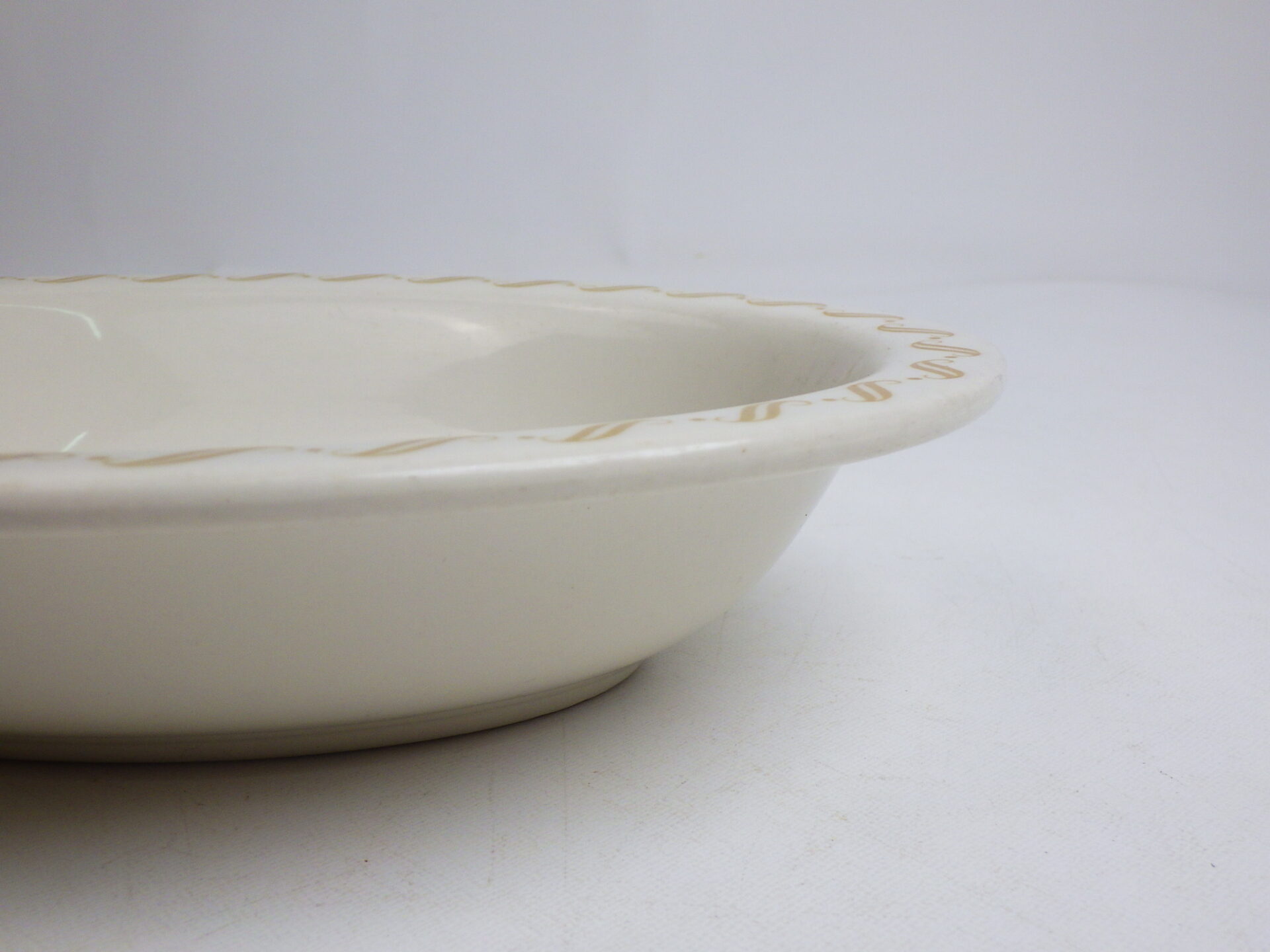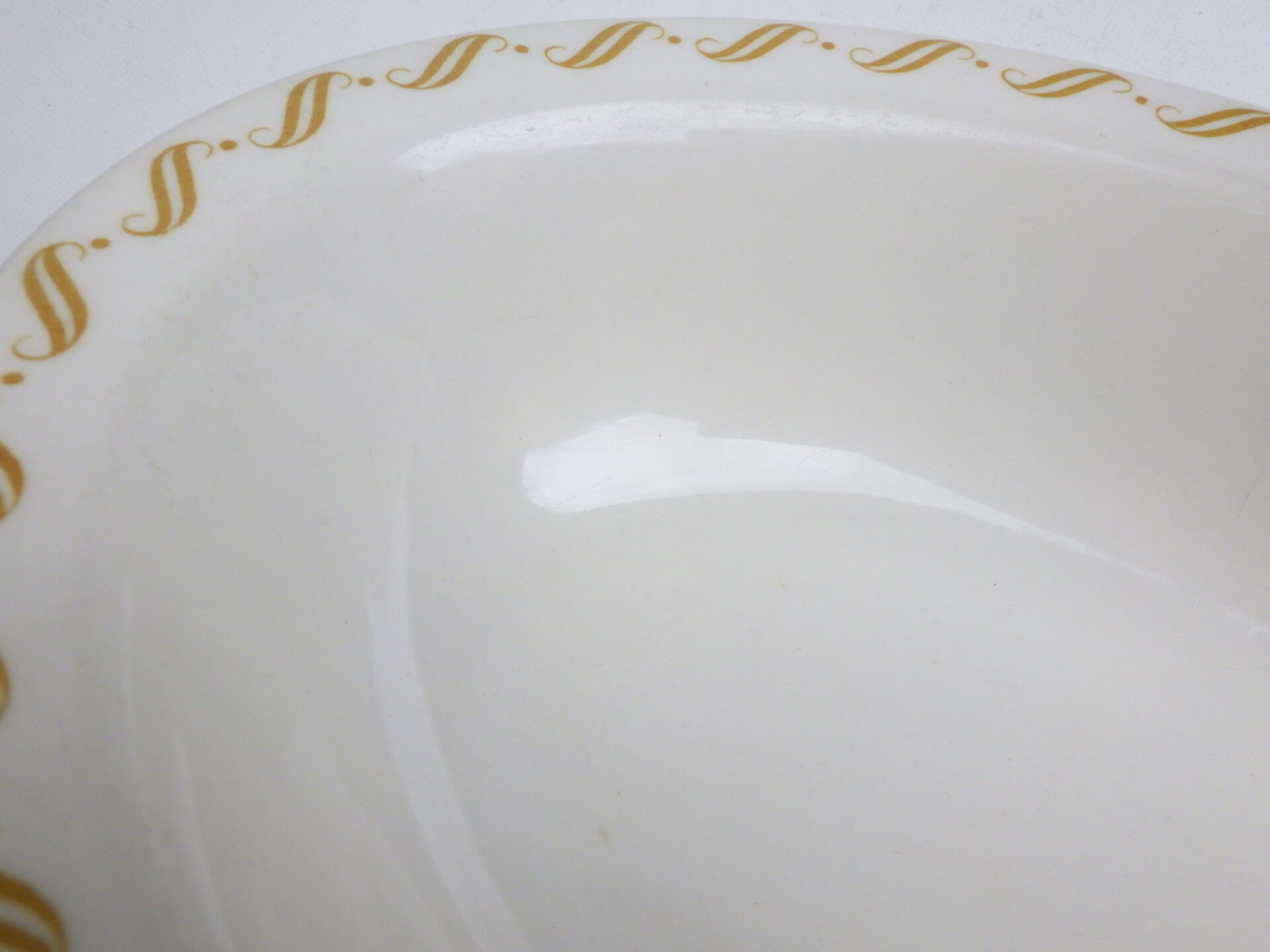 | 1901年創業のアメリカのメーカーです。 元々はソープディッシュのみを製造していましたが、事業拡大に伴いホテルや軍などに向けて製造・販売されるようになりました。 1983年にOneida Limitedに買収されており、こちらのプレートはその当時のアイテムとなります。 簡単に割れないように分厚く作られており、その厚みがたまらなく格好良いアイテムですね。 深さもあるのでカレーやシチュー、パスタなど様々な料理に合いそうです。 |