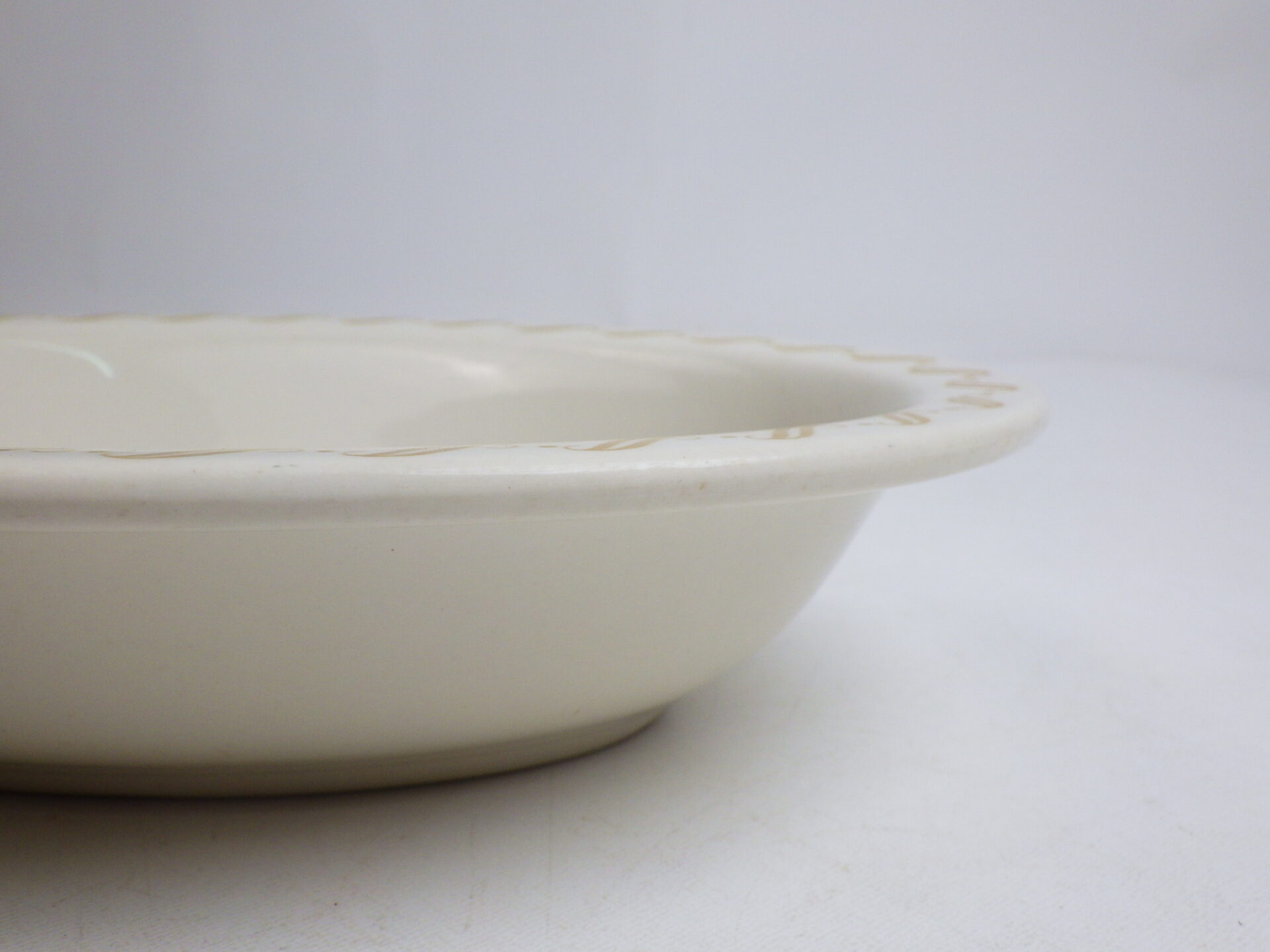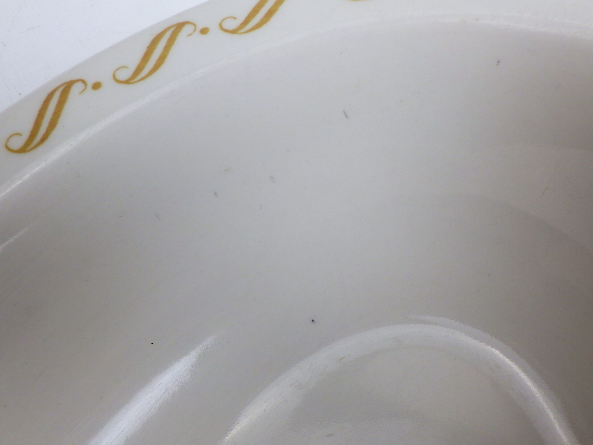 | 1901年創業のアメリカのメーカーです。 元々はソープディッシュのみを製造していましたが、事業拡大に伴いホテルや軍などに向けて製造・販売されるようになりました。 1983年にOneida Limitedに買収されており、こちらのプレートはその当時のアイテムとなります。 簡単に割れないように分厚く作られており、その厚みがたまらなく格好良いアイテムですね。 深さもあるのでカレーやシチュー、パスタなど様々な料理に合いそうです。 |