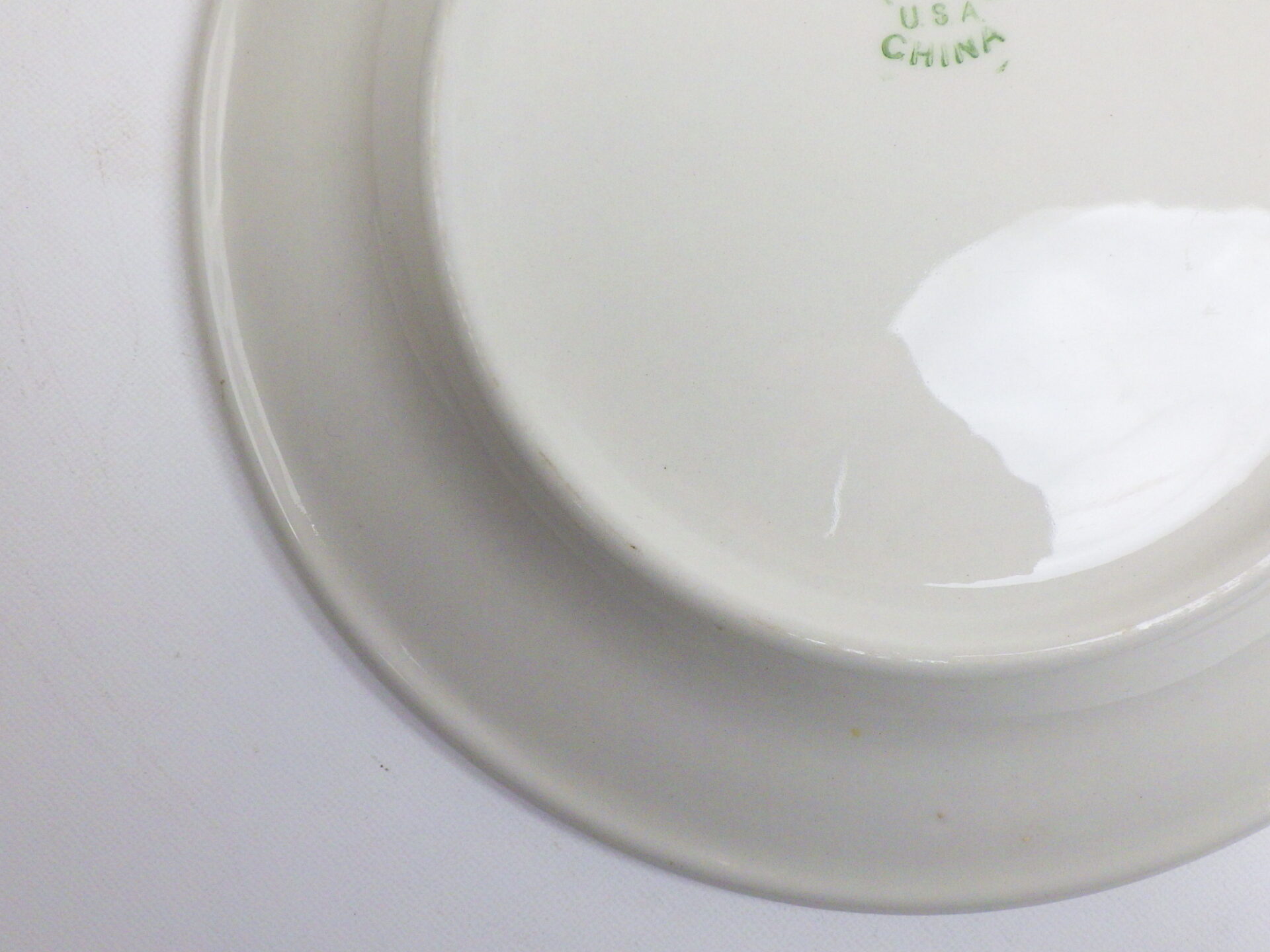 | ビンテージミリタリーの食器などで知られている「テプコチャイナ社」は、1918年~68年までの間、カリフォルニアでレストランウエア等を作っていた陶磁器メーカーです。 シンプルながらもどんな料理にも合うグリーンバンドがダイナーウエアらしく、すぐに使いたくなるアイテムです。 |