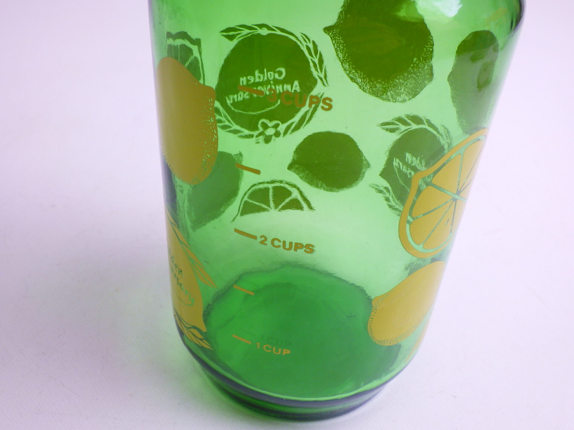 | product | "Anchor Hocking" Golden anniversary Vintage Decanter/アンカーホッキング ビンテージ デカンタ ピッチャー 水差し ジュースピッチャー レモン柄 |