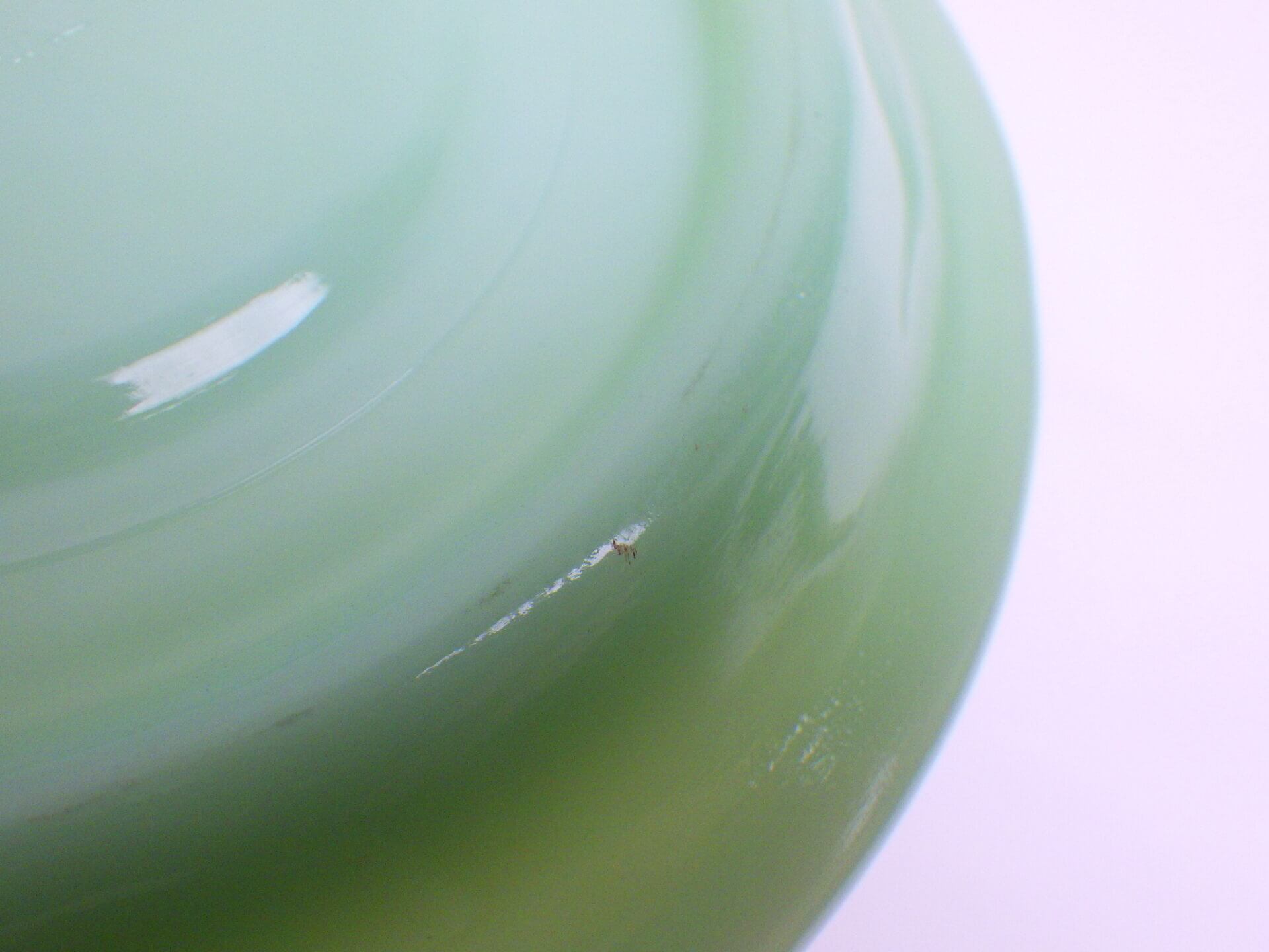 | condition | リムにわずかなスレ、着色がみられます。 側面、内部に製造時よりの気泡痕、劣化線、ヘアライン、金属痕がみられます。 ソーサーに製造時よりの気泡痕、わずかな小キズ、着色があります。 その他、ワレ、カケなどご使用に問題のあるダメージもなく、全体的にツヤもあり、綺麗な状態です。 不明な点や追加画像の必要な場合は、お気軽にお問い合わせください。 |