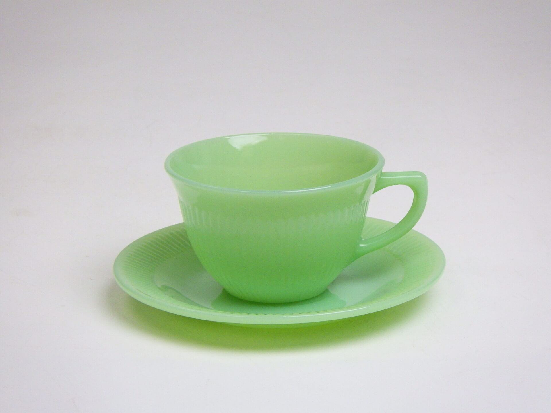 “Fire king” Jade-ite Jane Ray Cup&Saucer B ファイヤーキング ジェダイ ジェーンレイ カップ&ソーサー