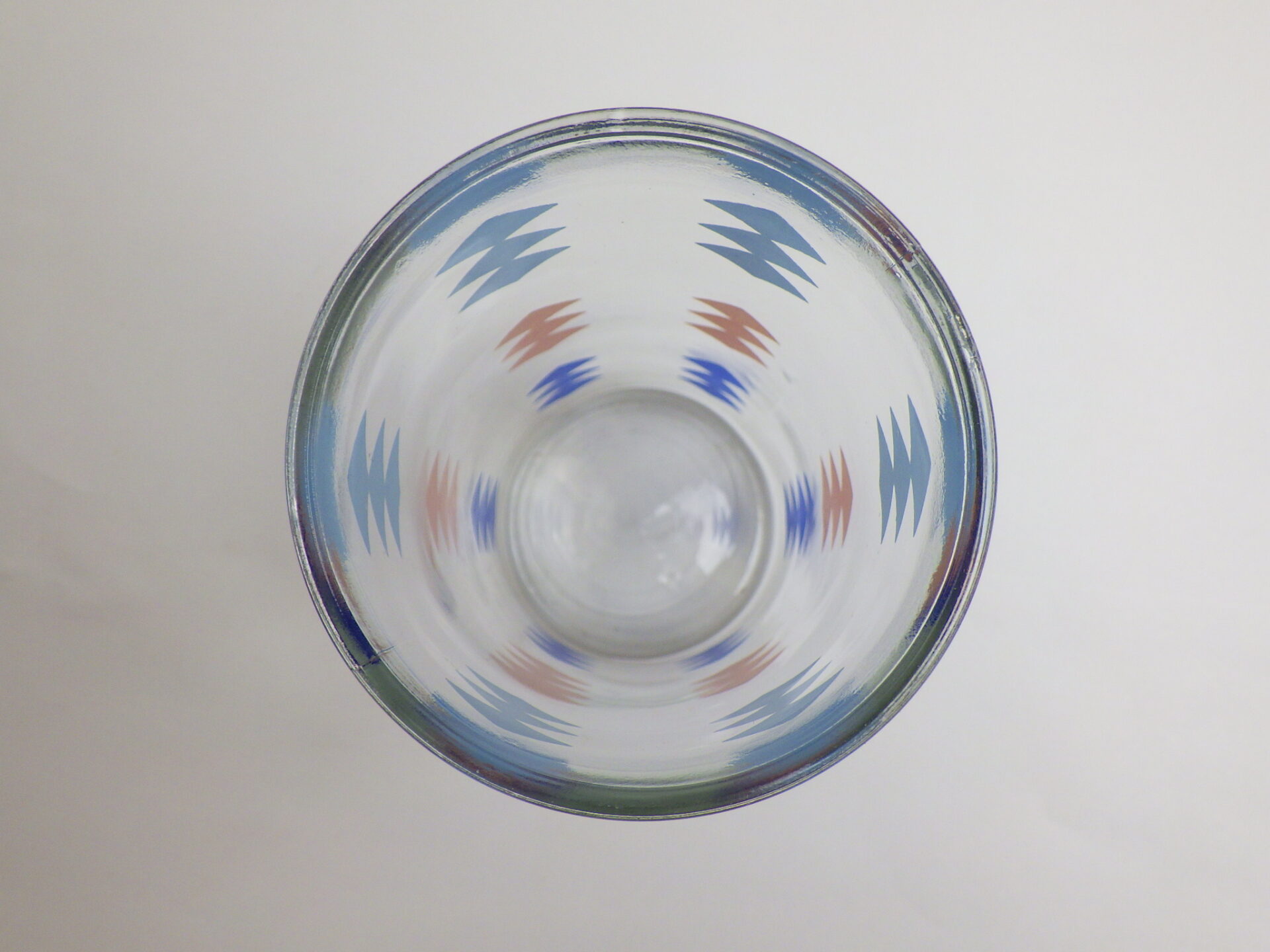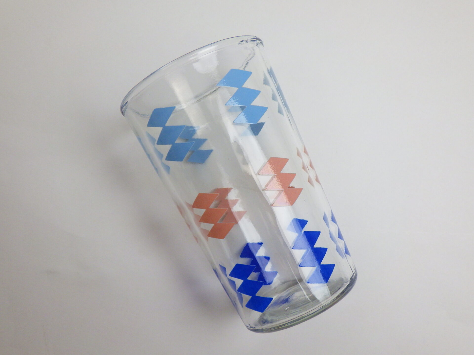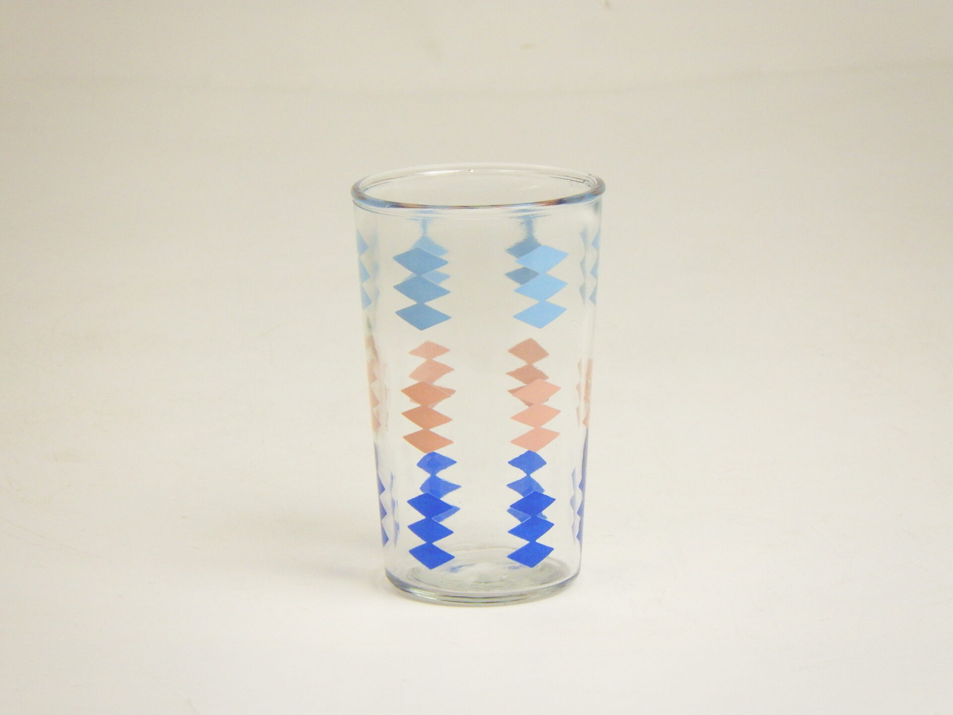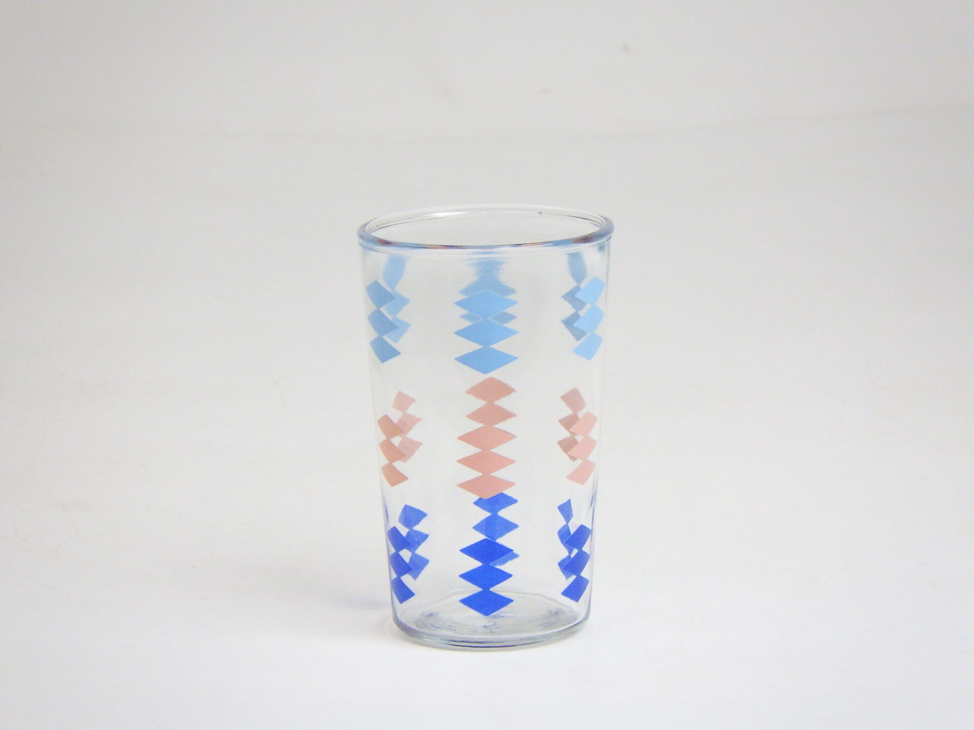| アメリカで買い付けしたビンテージのグラスです。 パステルカラーの三連のダイヤのプリントが可愛らしいですね。 |