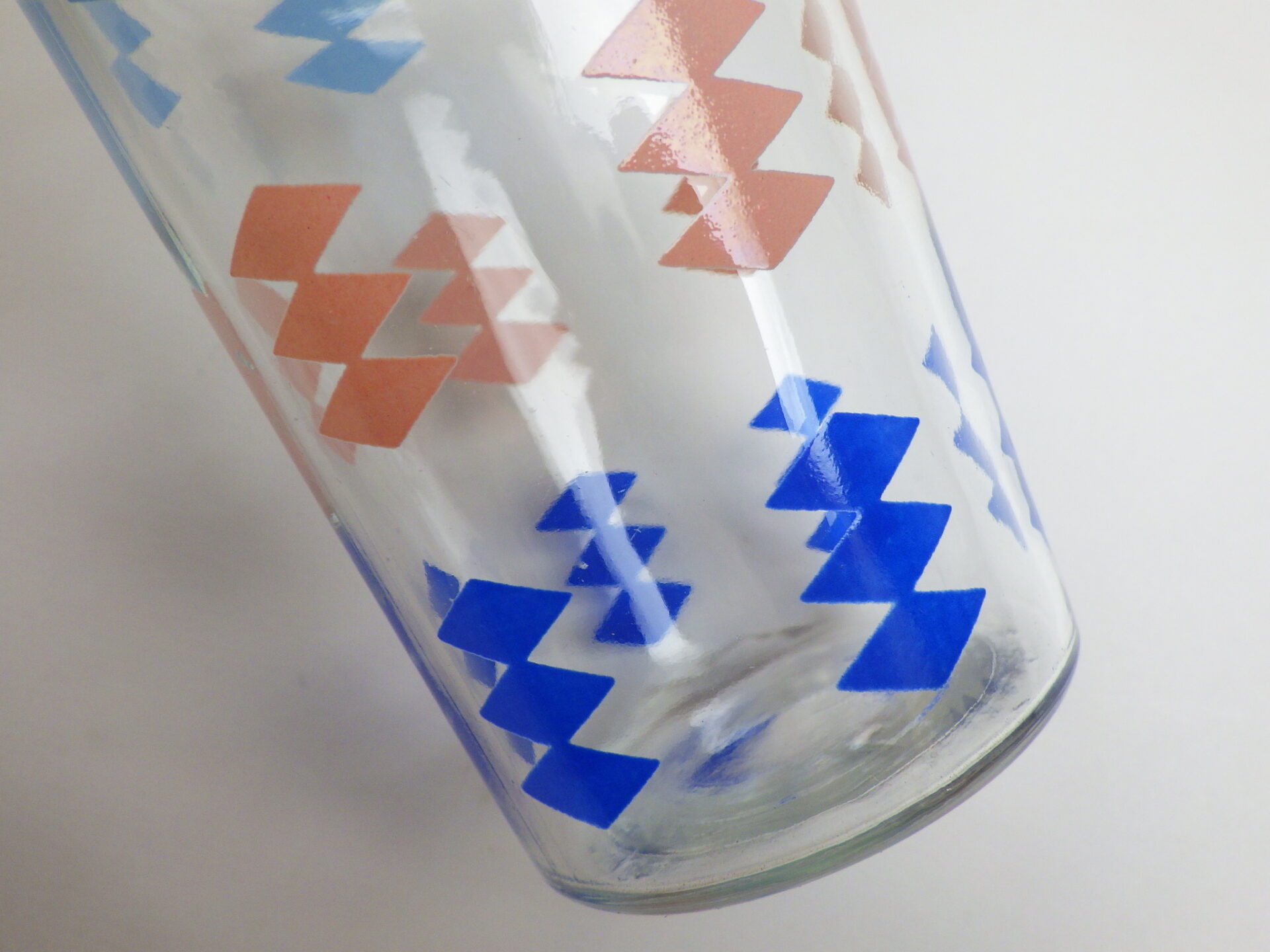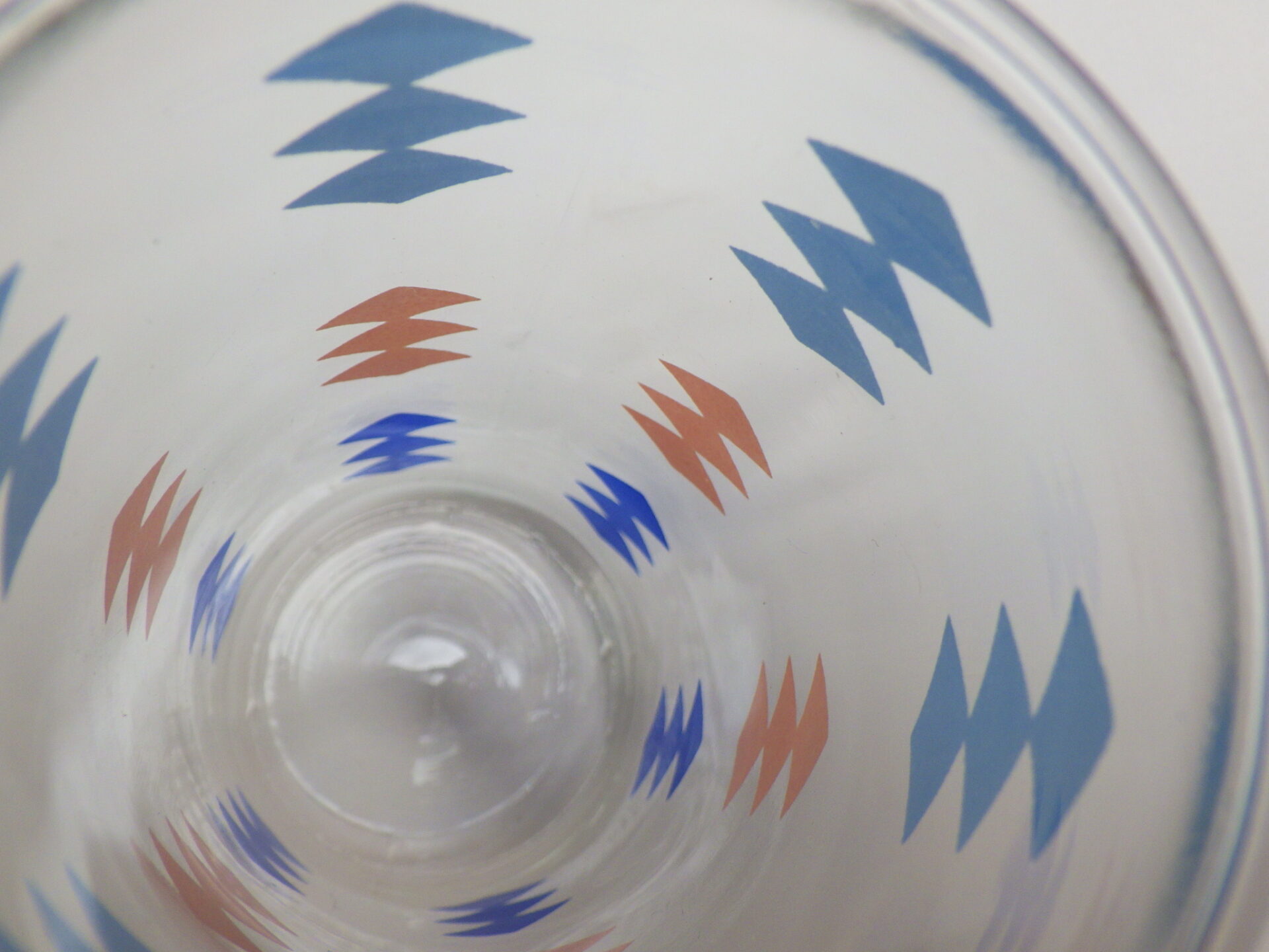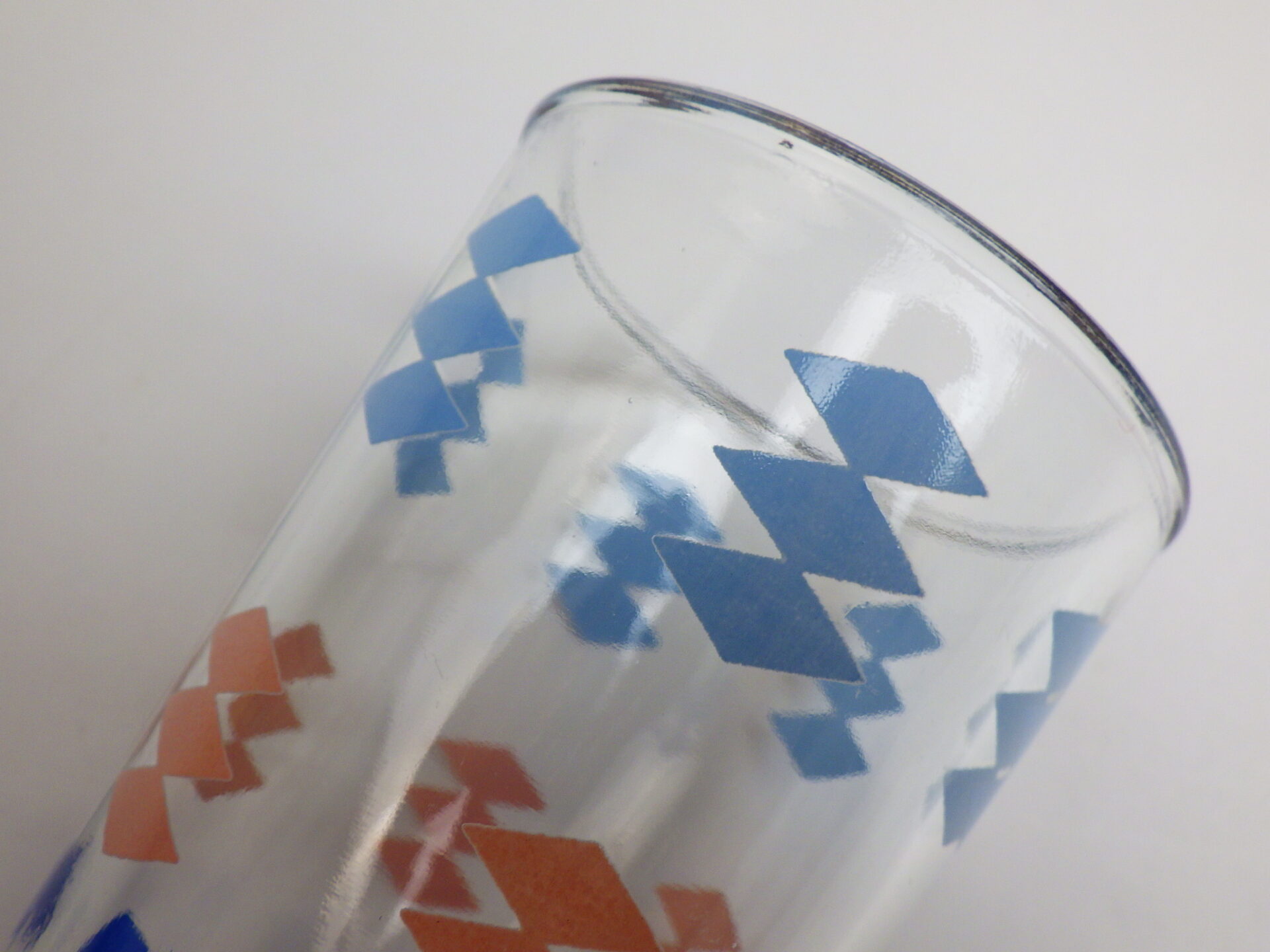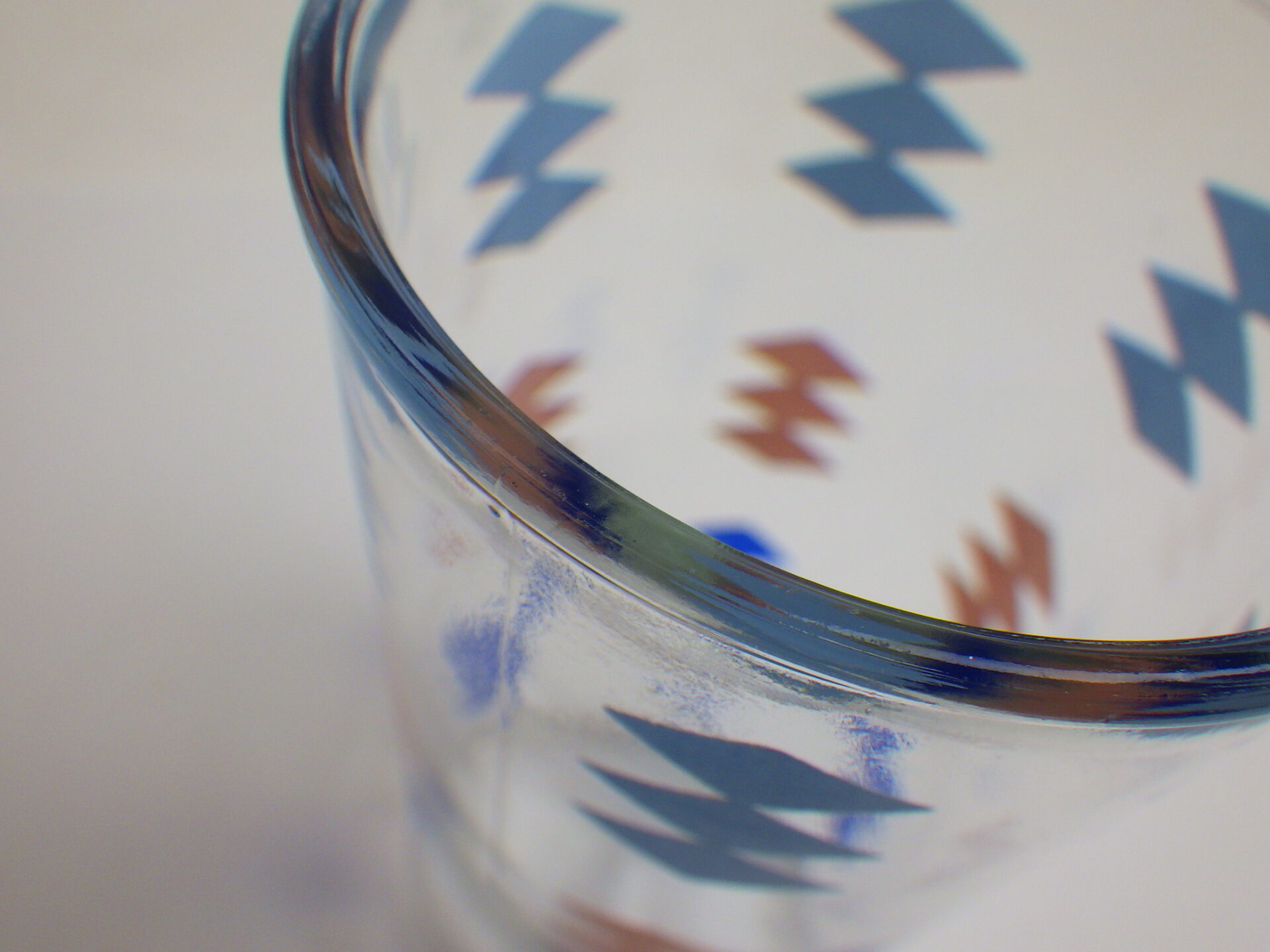 | アメリカで買い付けしたビンテージのグラスです。 パステルカラーの三連のダイヤのプリントが可愛らしいですね。 |