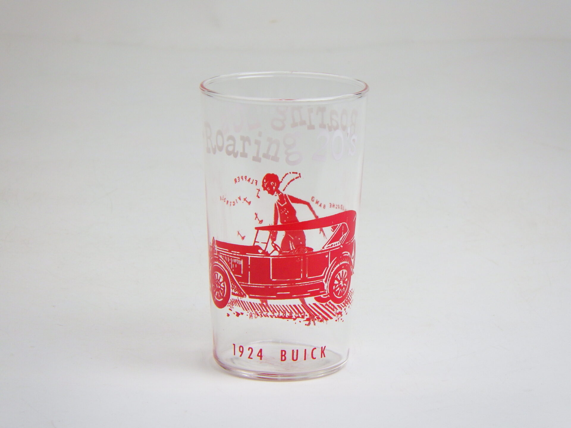 | アメリカの自動車メーカー「ゼネラルモーターズ」が製造・販売した「BUICK」のクラシカルなモデルがプリントされたビンテージグラスです。 踊る女性と共に「Roaring 20's(狂騒の20年代)」のプリントも。 車好きの方、いかがですか? |
