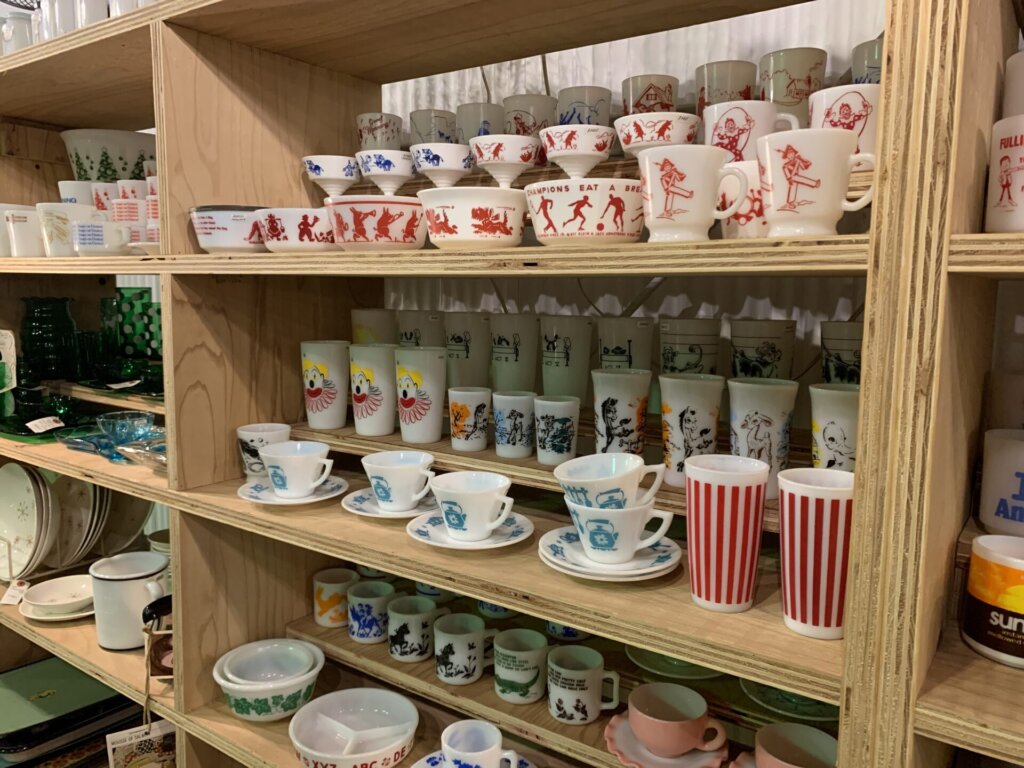 当店には、ファイヤーキングはもちろんの事、同年代頃に製造販売されたミルクガラスの食器類が沢山並んでいます♪