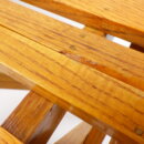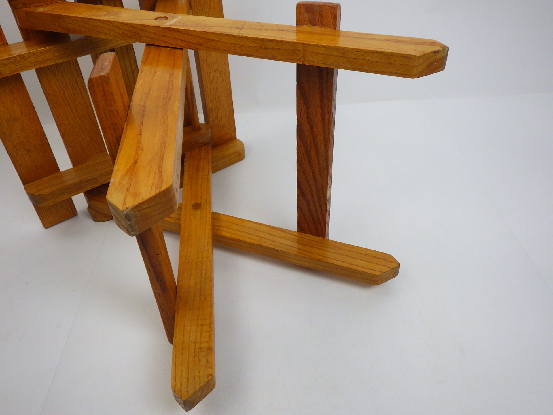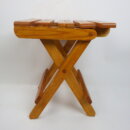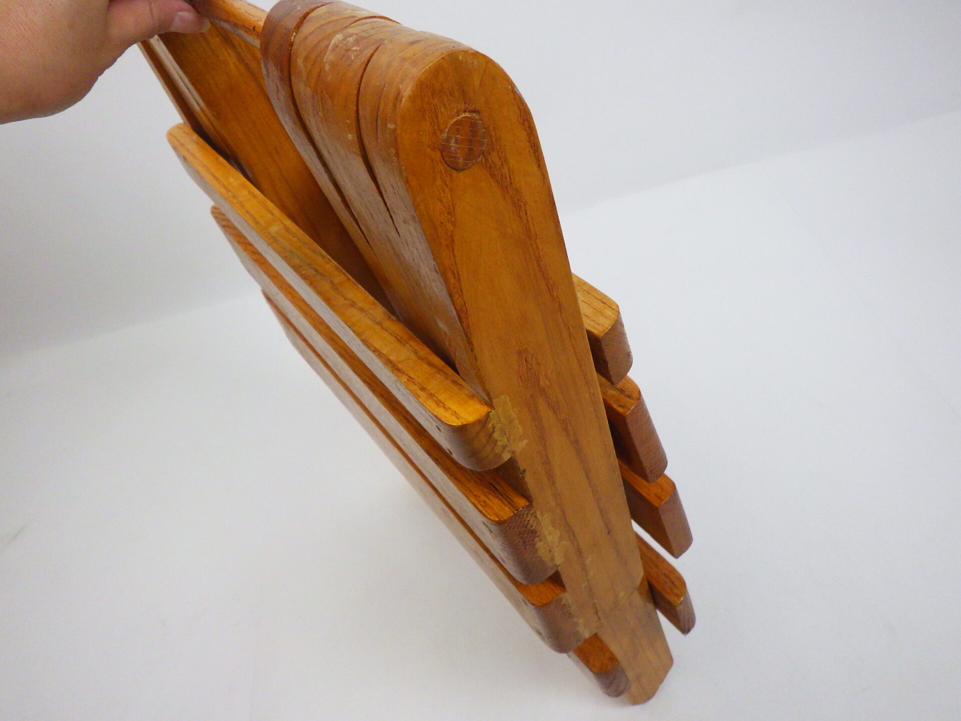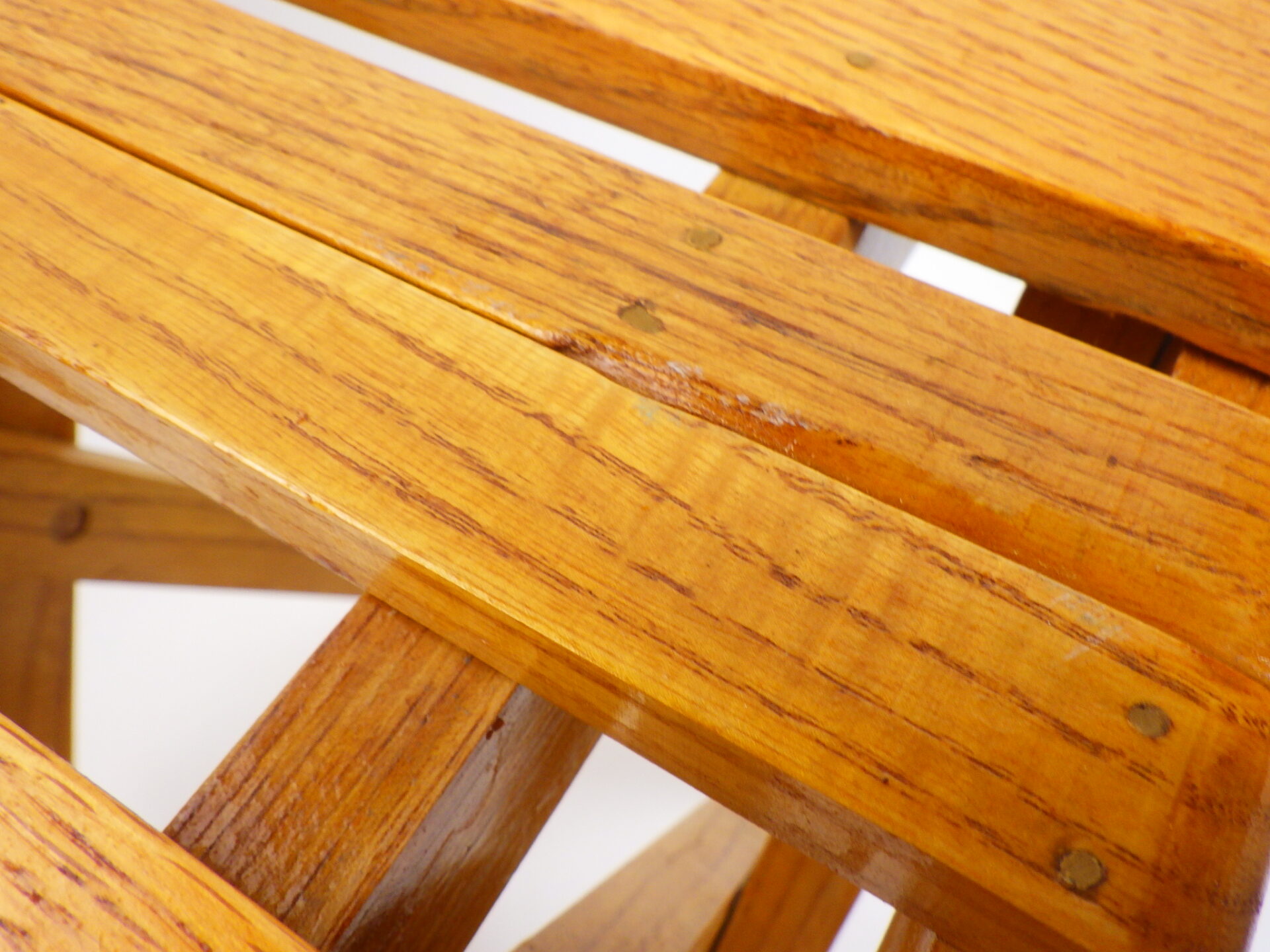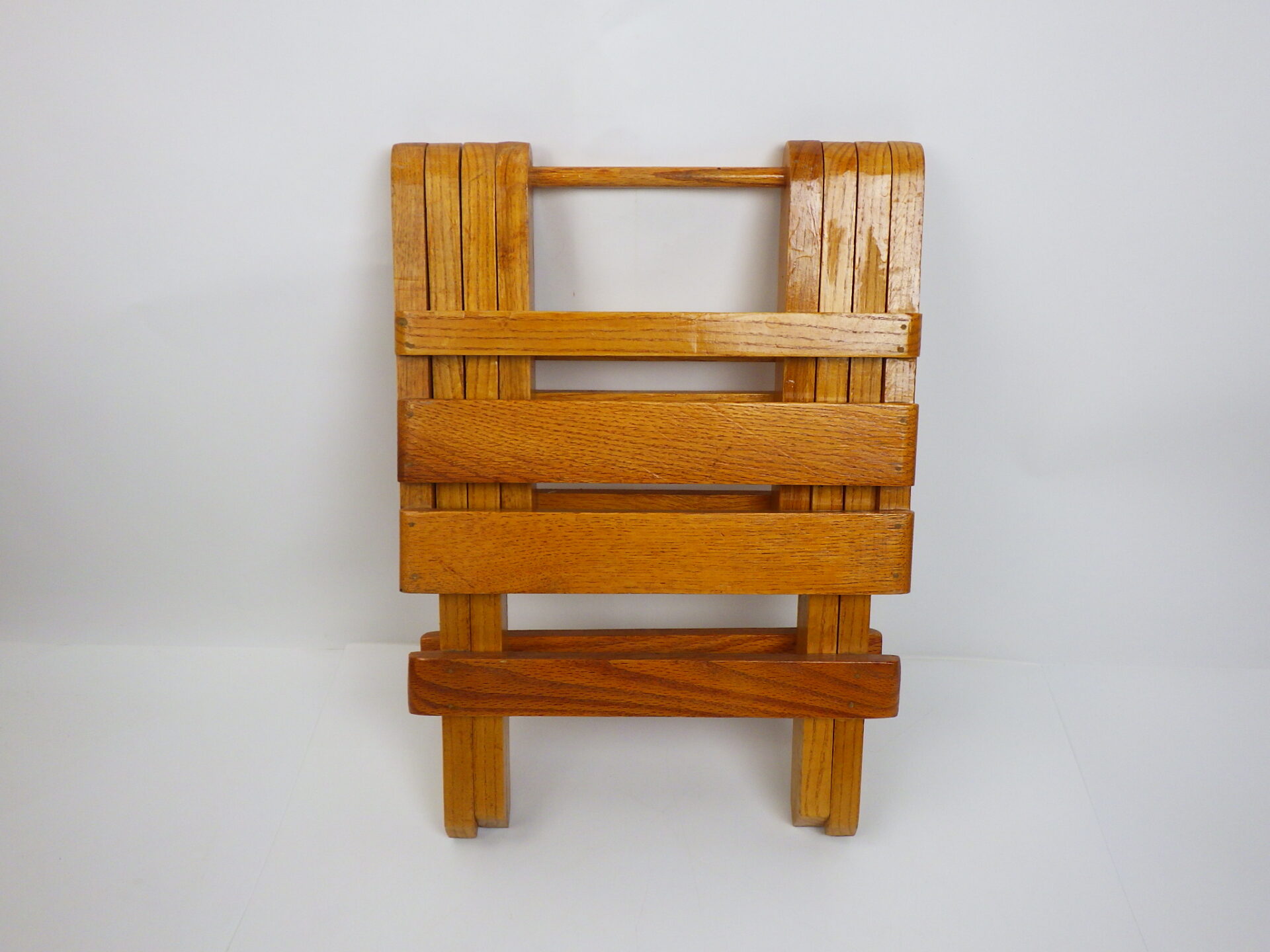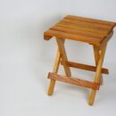 | アメリカで買い付けました。 ビンテージのフォールディング木製スツールです。 折り畳む際は座面を左右にスライドさせて折り畳みます。 状態も良く腰掛けても使えますし、キャンプ等に持ち出してクーラー等を置くのにも良い雰囲気です。 |
