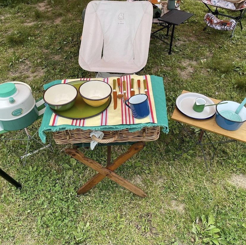 琺瑯アイテムにベークライトのカトラリー、ランチョンマットがとても良い雰囲気ですよね!
