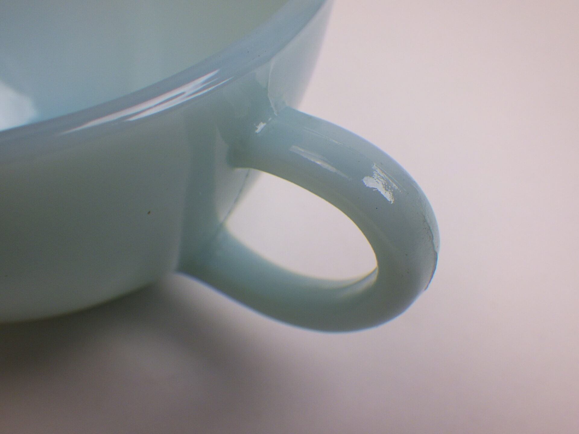 | 1956年~58年の三年間だけ製造されていたターコイズブルーのC&Sです。 薄手なので、紅茶やコーヒーを注ぐとほんのり中が透け、とても綺麗ですね。 来客用にもオススメのアイテムです。 |
