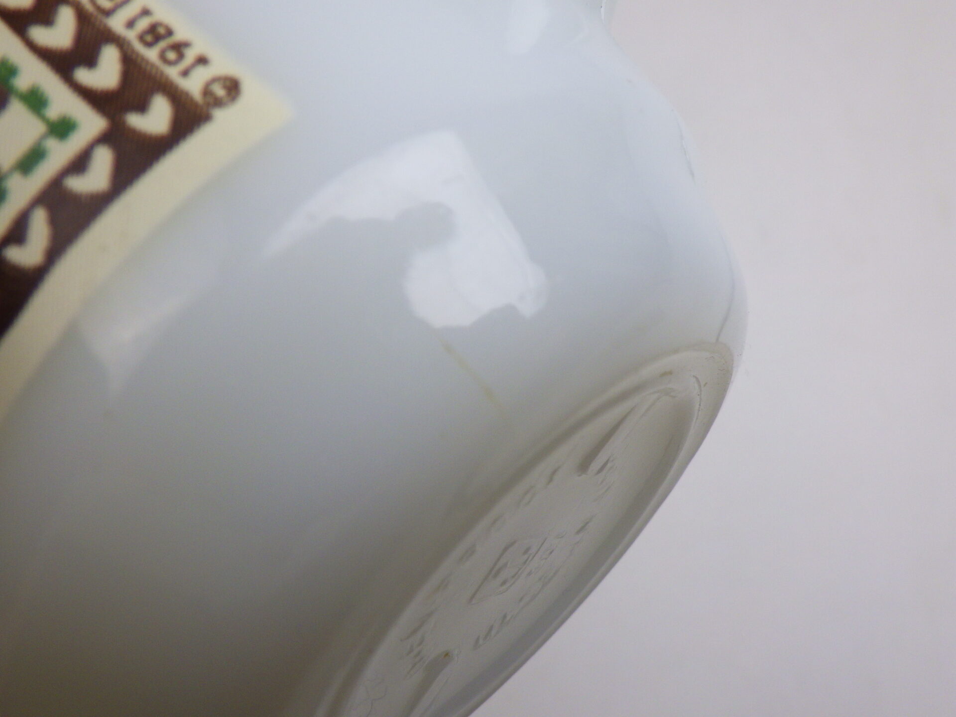 | condition | 内部に製造時よりの劣化線、着色がみられます。 ハンドルに着色がみられます。 ボトムに製造時よりのヘアライン、劣化線、薄い着色、スレがみられます。 その他ワレ、カケなく、ツヤもあり良い雰囲気です。 |