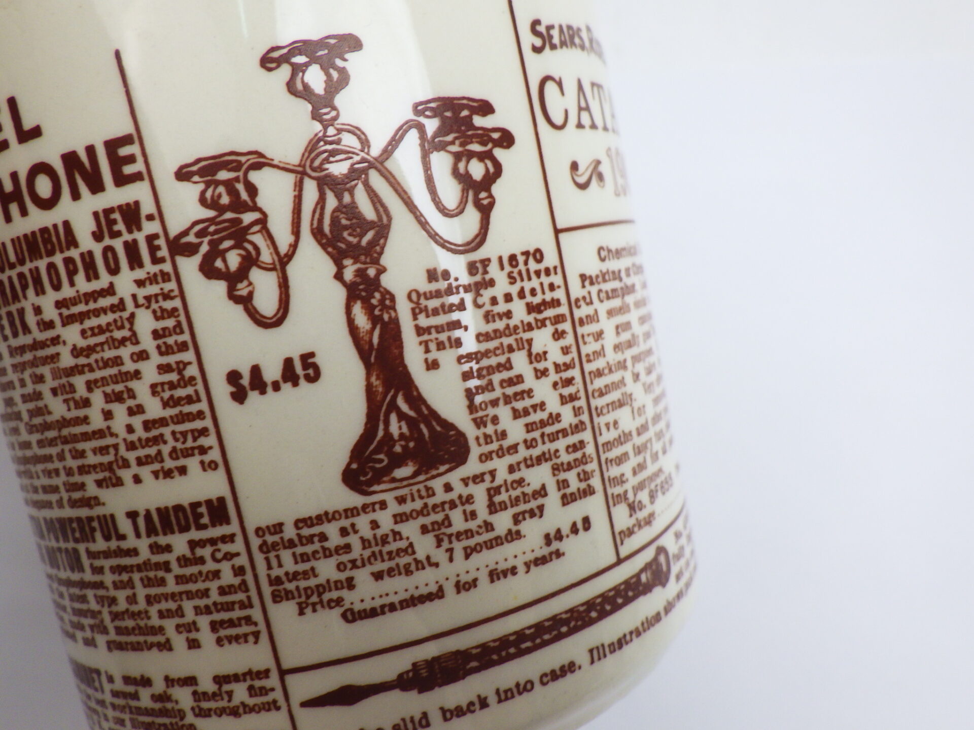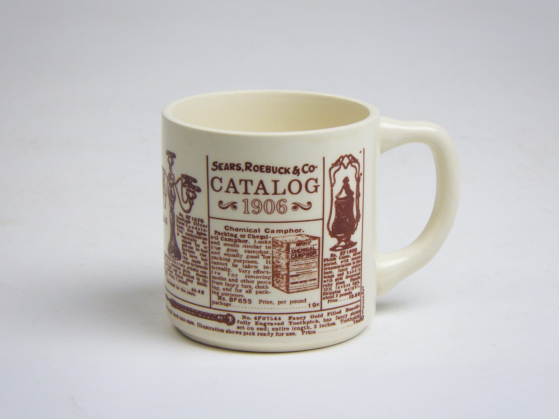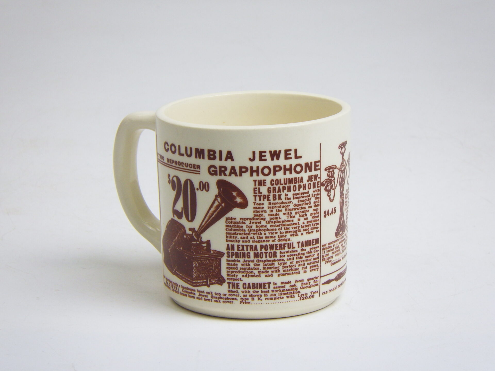| アメリカで買い付けました。 プリントされているのはお店のカタログでしょうか? 大ぶりなので、コーヒー、ココア、コールドドリンク、何でもいけそうですね。 |