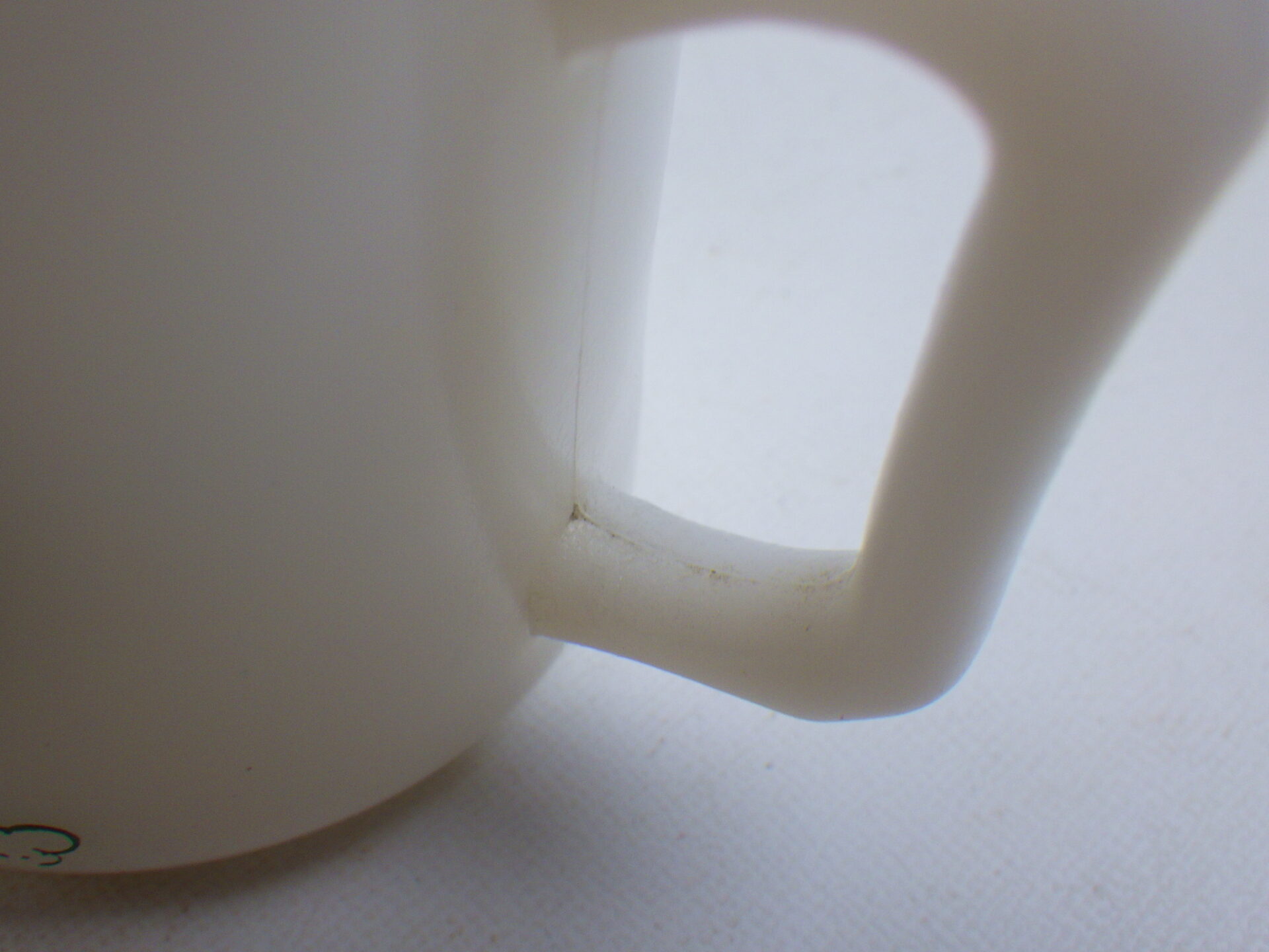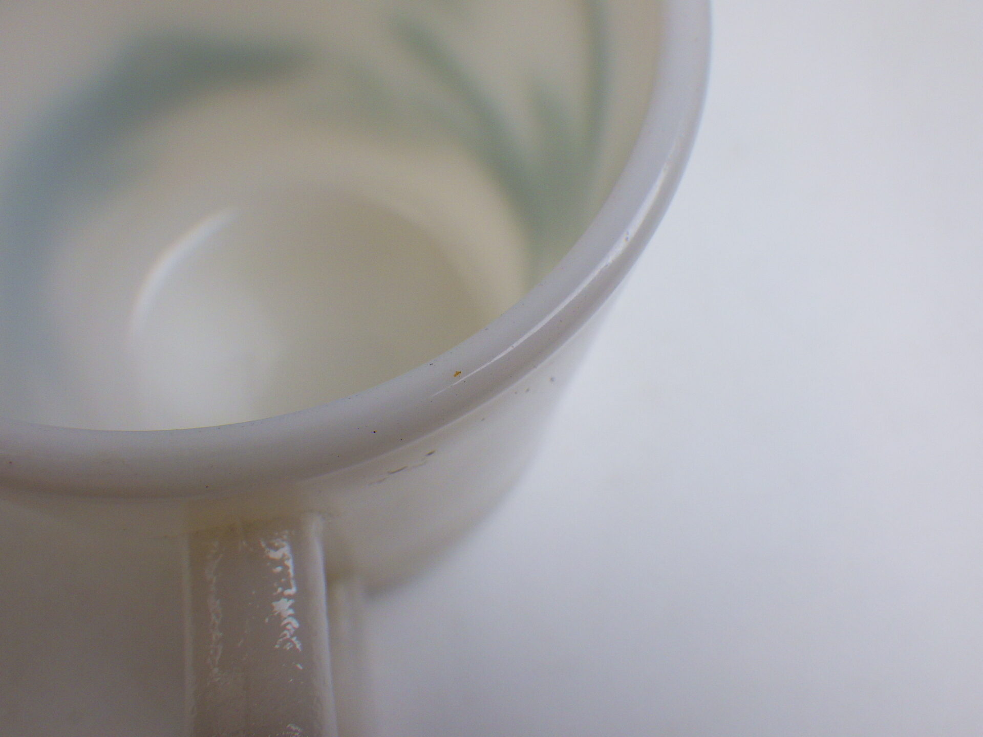 | condition | リム、ハンドル、側面、ボトムにそれぞれわずかな着色があります。 リムに極わずかなチップがありますが、その他ワレ、カケはありません。 |