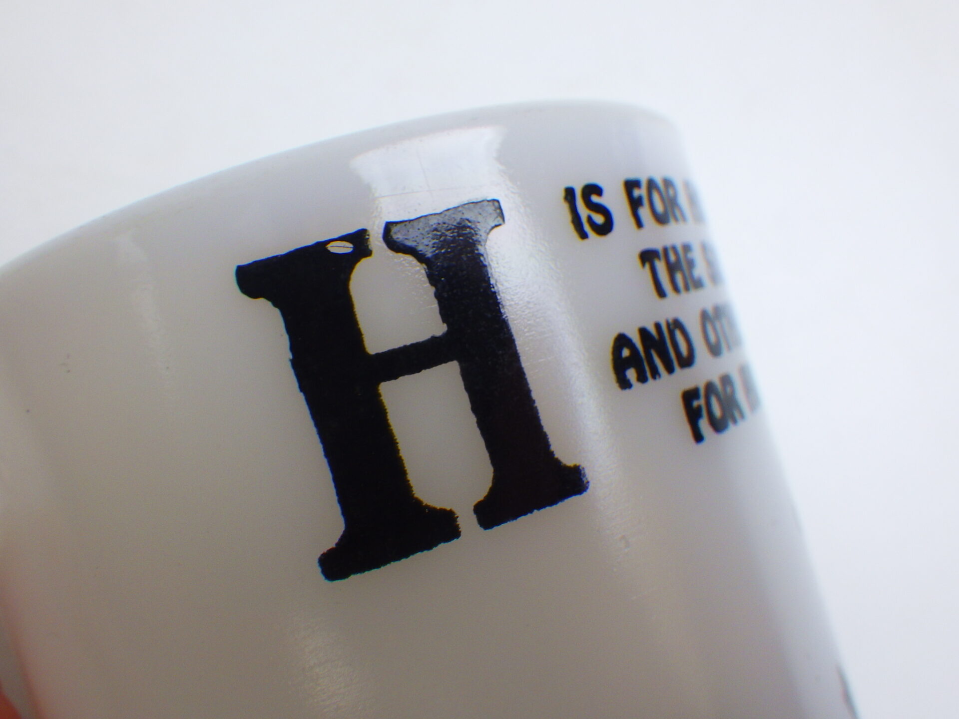 | product | "Hazel-Atlas" Animal House Mug/ ヘーゼルアトラス チャイルドマグ アルファベット ホース 馬 |