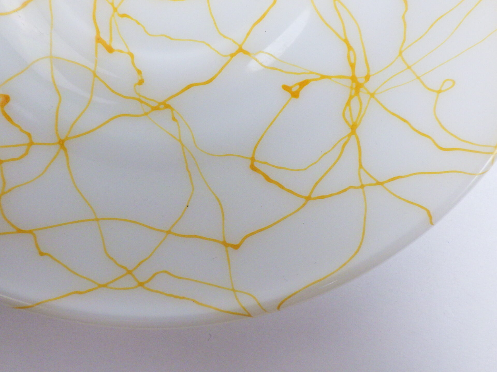 | アメリカでは「スパゲッティ」等と呼ばれるミッドナイトマジックシリーズ。 ミルクホワイトの地にハンドペイントで施された模様は一点一点表情が異なるため、「人と違った」アイテムがお好みの方にはたまらないですね。 |