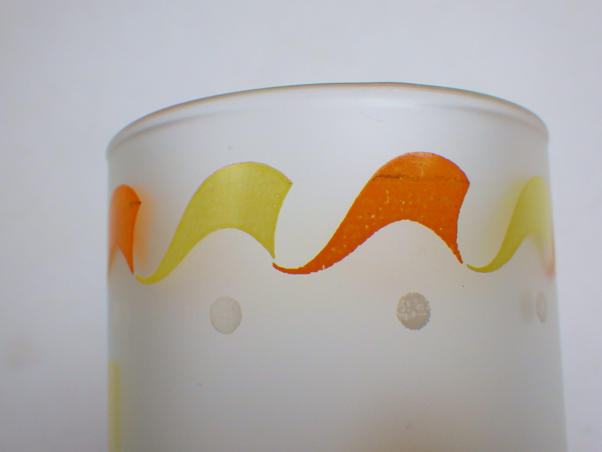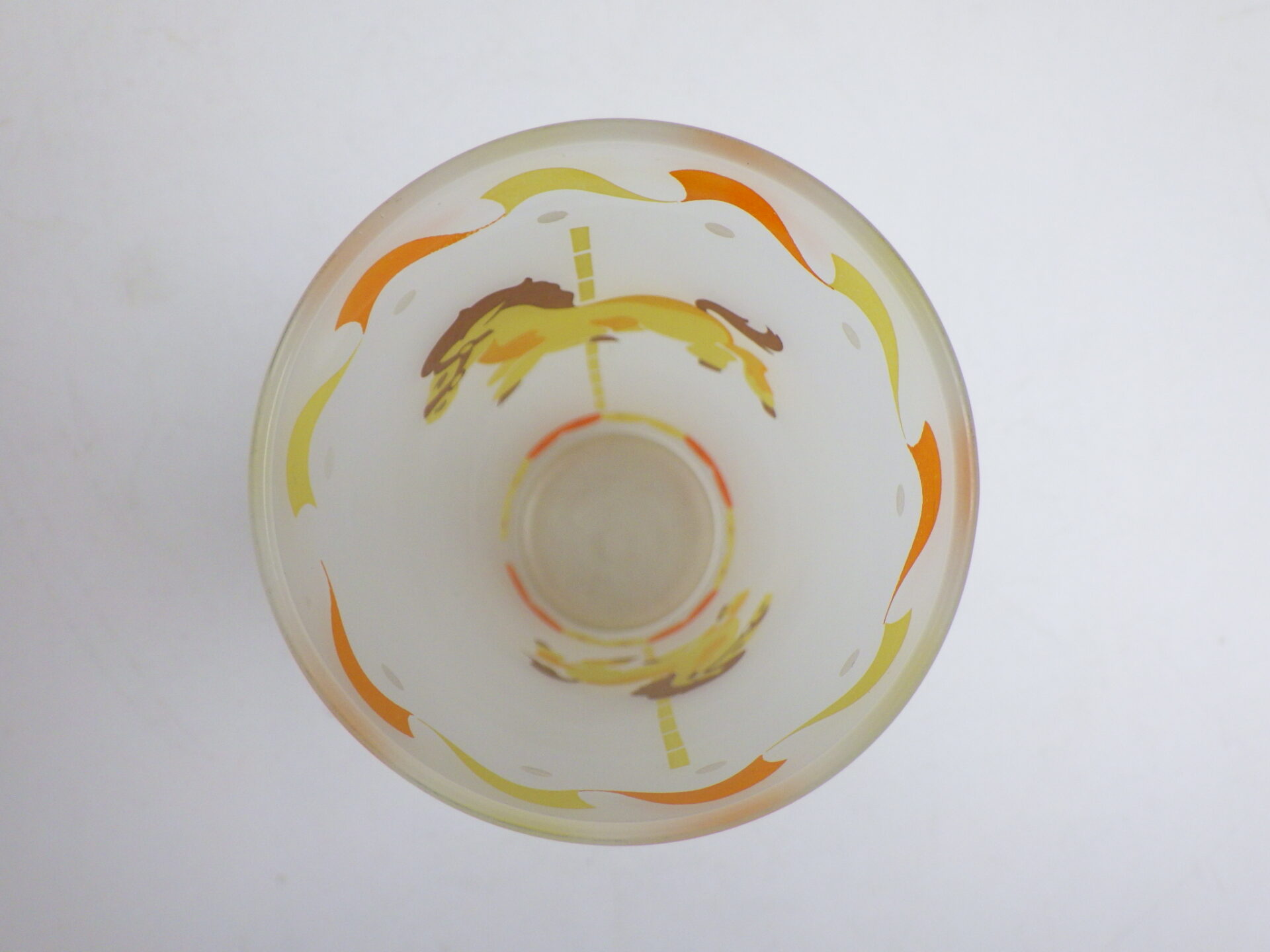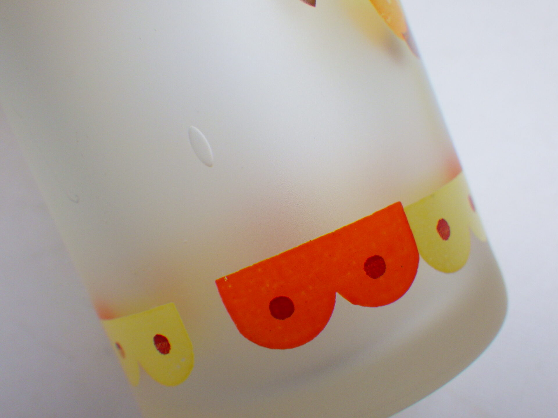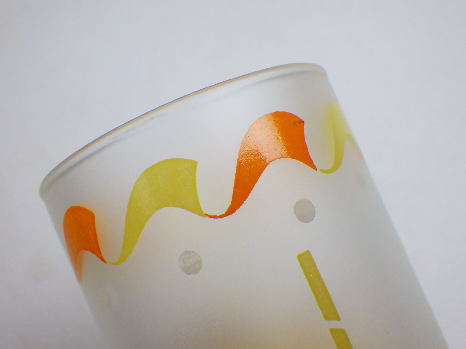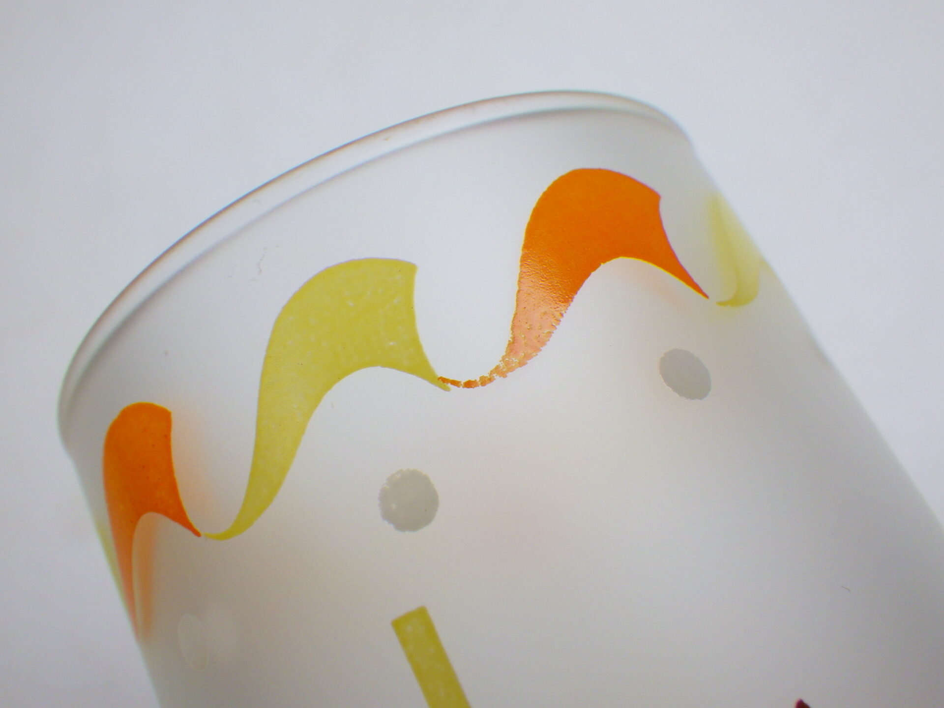 | 可愛いプリントのアイテムが多い、Libbey社のメリーゴーランド・アニマルグラスです。 表面が少し曇ったような加工のフロストガラスで出来ており、「手垢がつきにくい」ということで当時は重宝されていたようです。 いくつか揃えて飾ってみても可愛いですし、ロングタンブラーサイズなので氷を入れてコールドドリンクもたっぷり飲める、オススメのアイテムです。 |