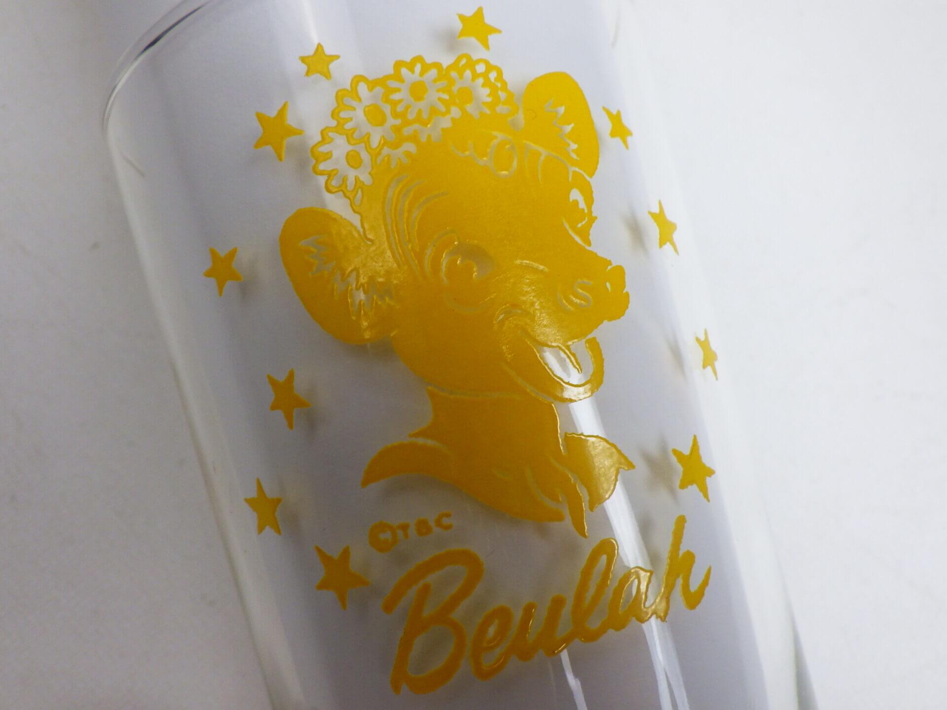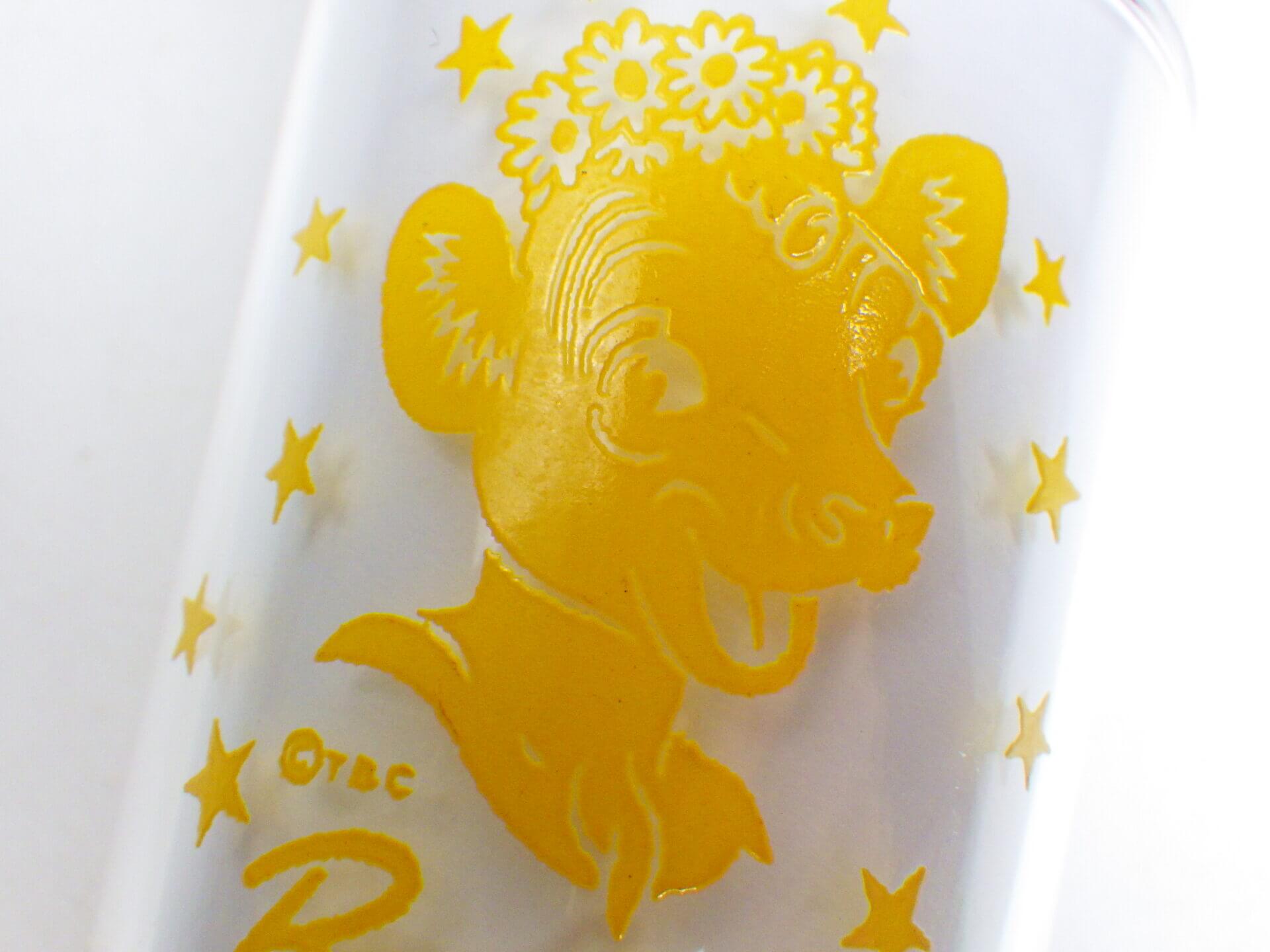 | ポップで可愛いイエローのプリントが印象的なビンテージグラスです。 こちらは雌牛?バージョンの「Beulah(ベウラ)」。 花冠が可愛らしいですね。 「Beau-regard(ボーレガード)」という雄牛?バージョンとペアでいかがですか? カルピスなどをいれて飲みたくなりますね♪ |