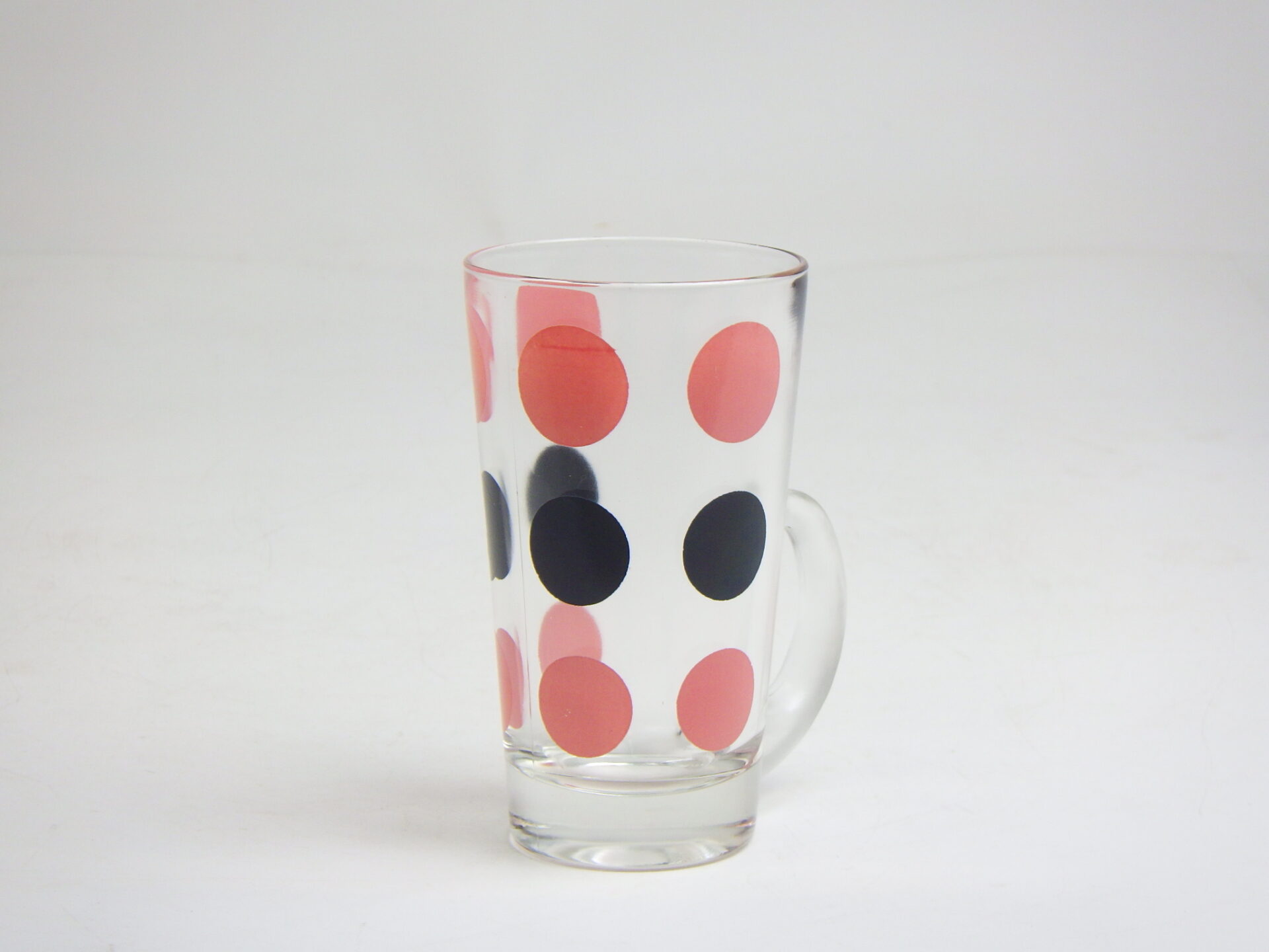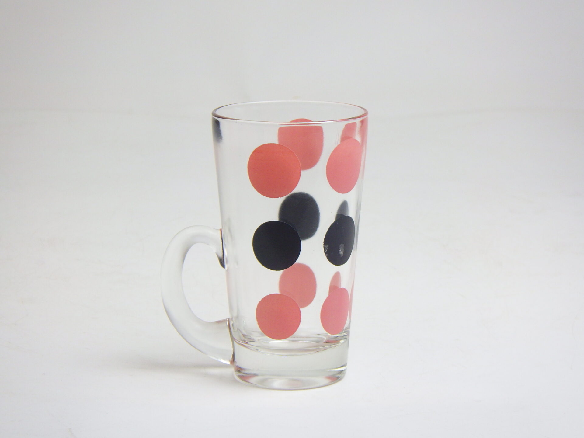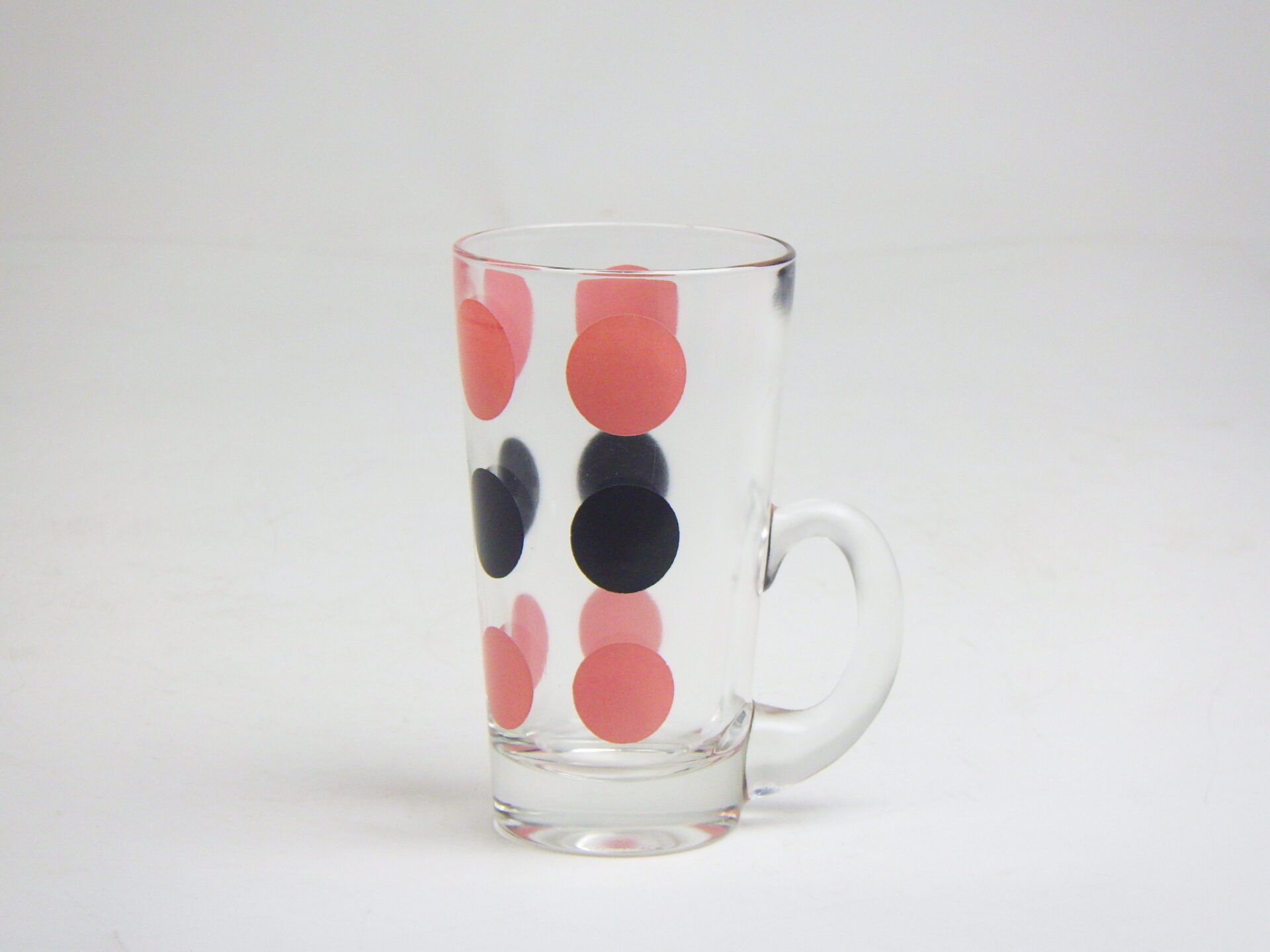 | ピンクとブラックのポルカドットがビンテージらしく可愛いガラスマグです。 たっぷり容量なので氷をいれてソフトドリンクやアルコール類も楽しめそう。 アイスを乗せてフロートにしたり、パフェグラスとしても使えそうですね! |