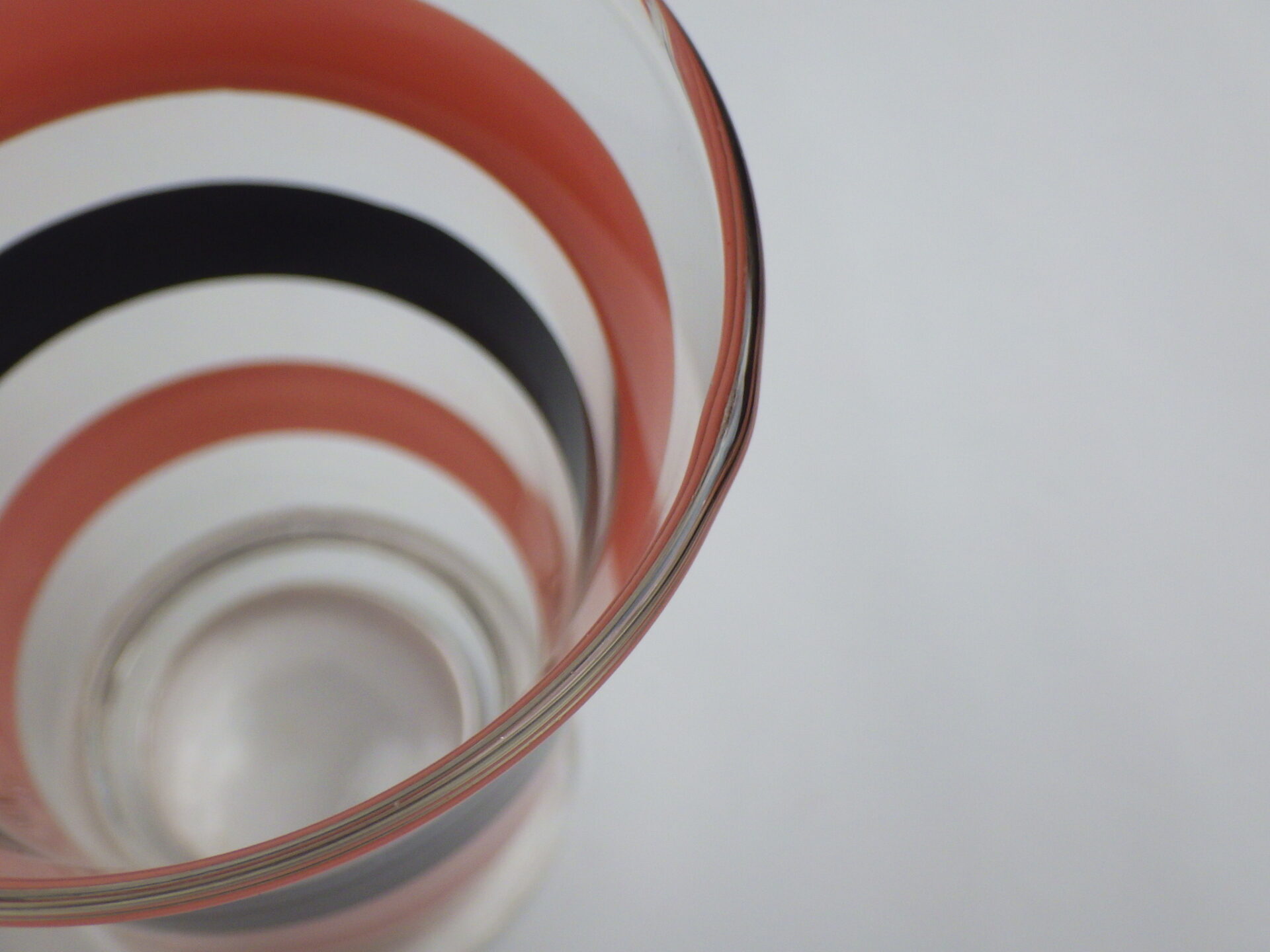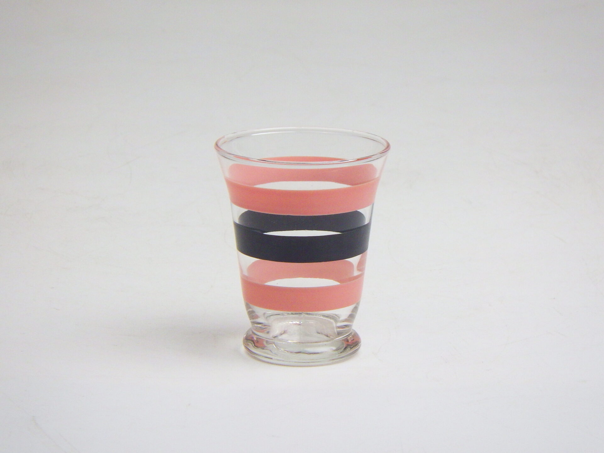 | 1950年代に人気のあった「ピンク×ブラック」の配色のビンテージグラス。 当時は洋服など様々なアイテムがこの配色で製造されました。 フィフティーズ好きな方にオススメのアイテムです。 こちらはかなり小ぶりなサイズ。ショットグラスとして使ったり、小さな草花を活けて花瓶にしても良さそうですね。 ※こちらは刻印のないタイプです |
