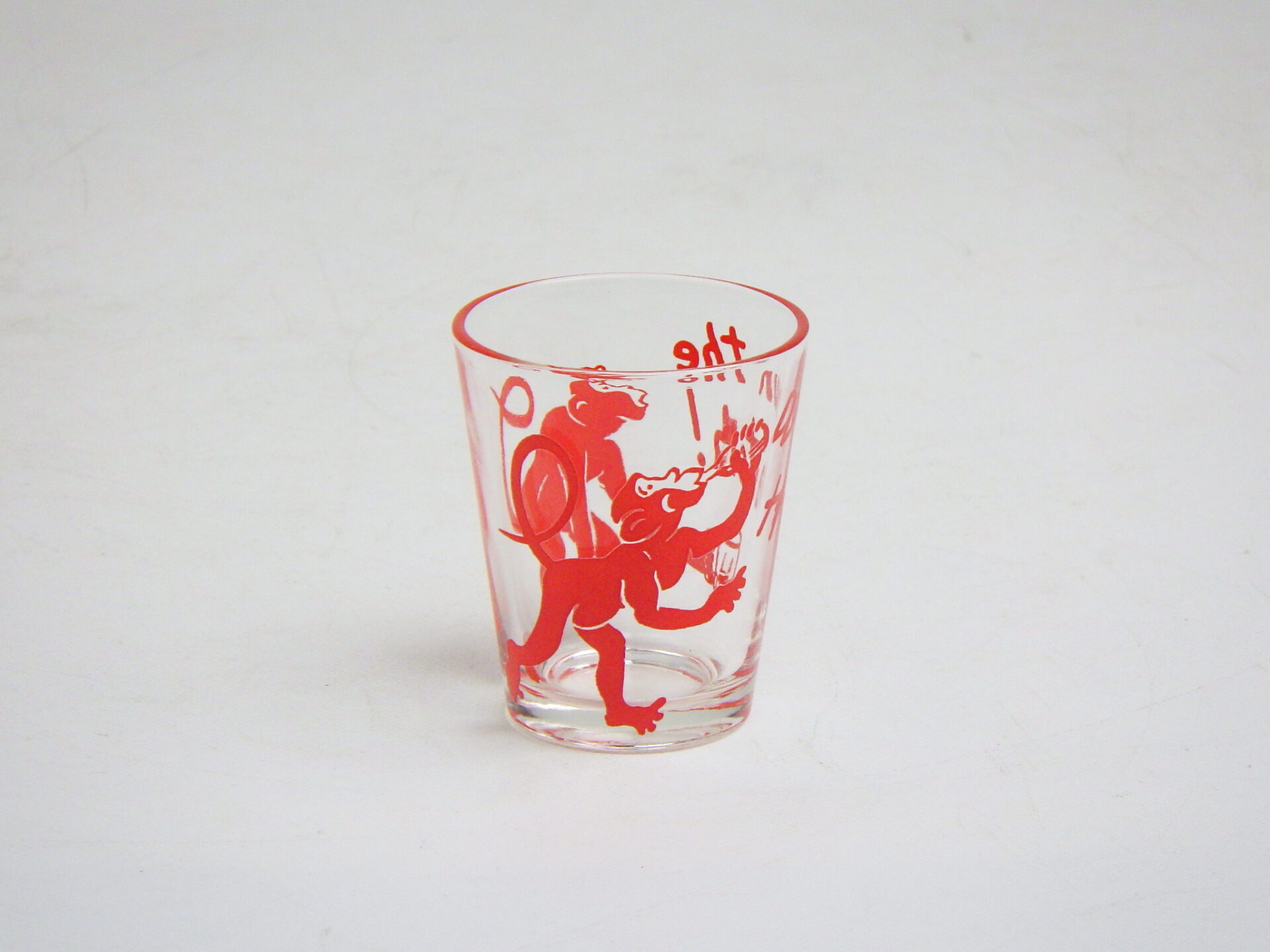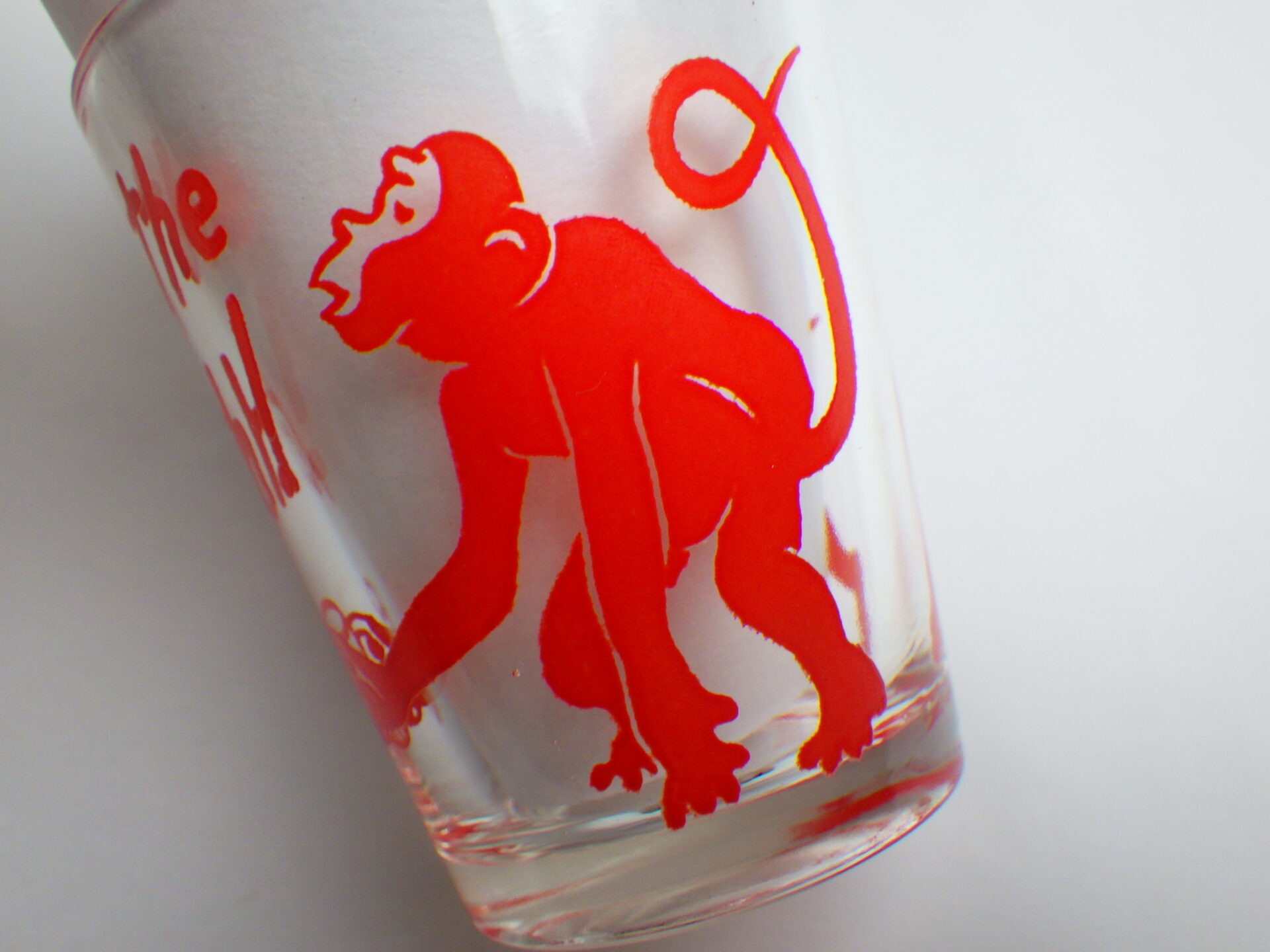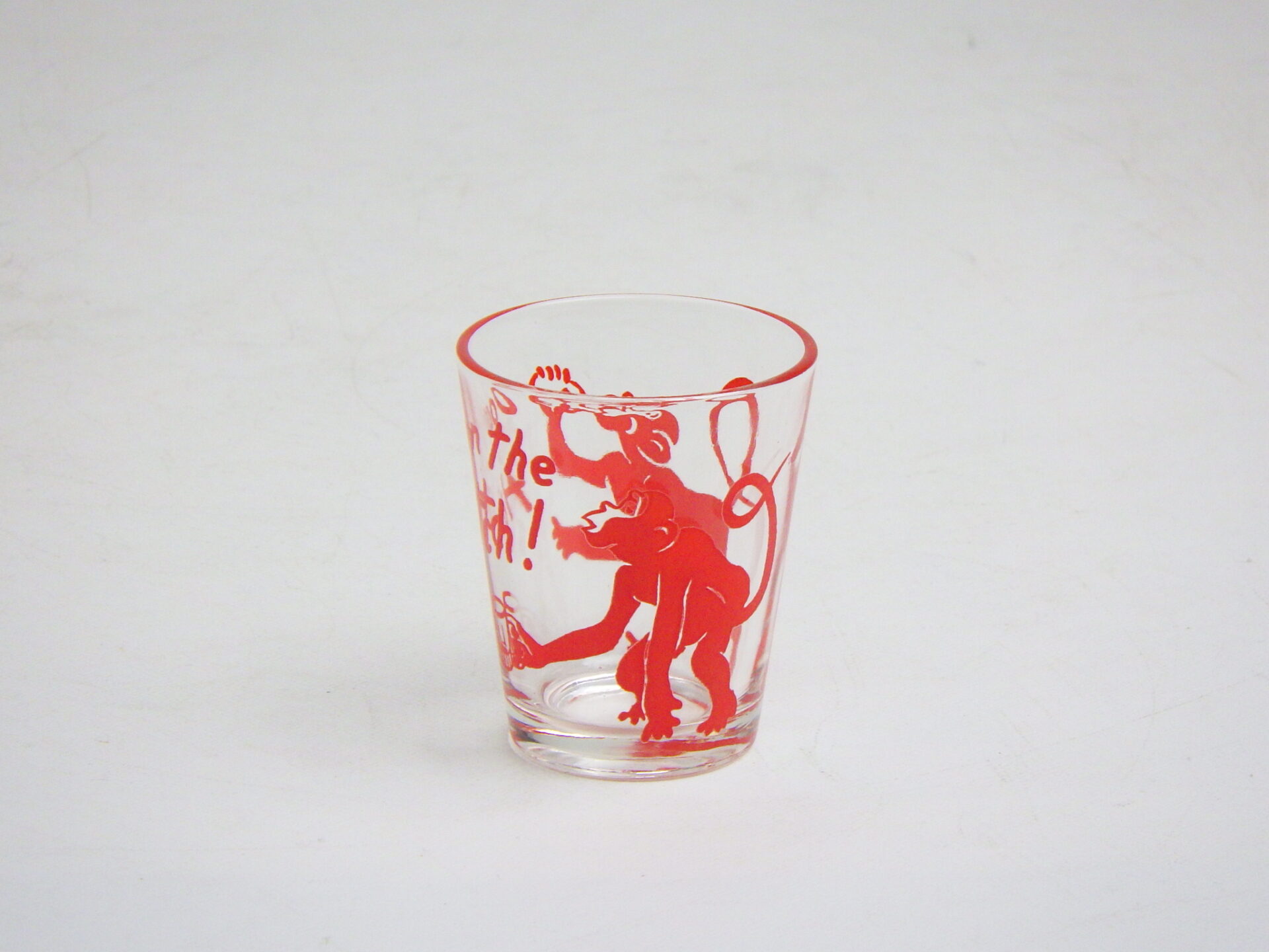 酒盛りしているお猿さんがプリントされた愉快なショットグラス。