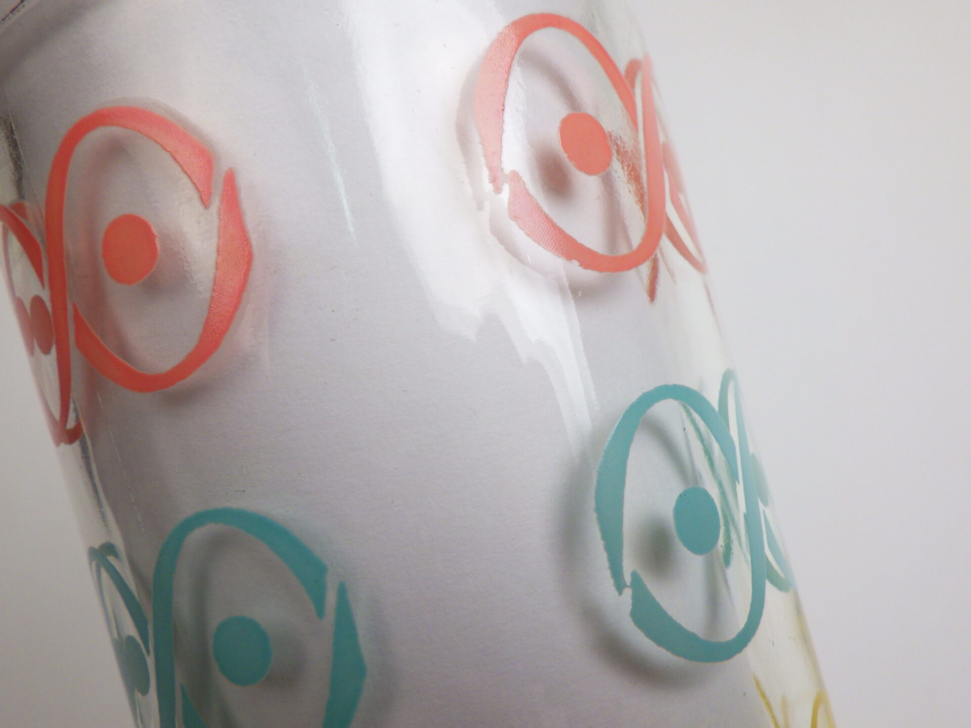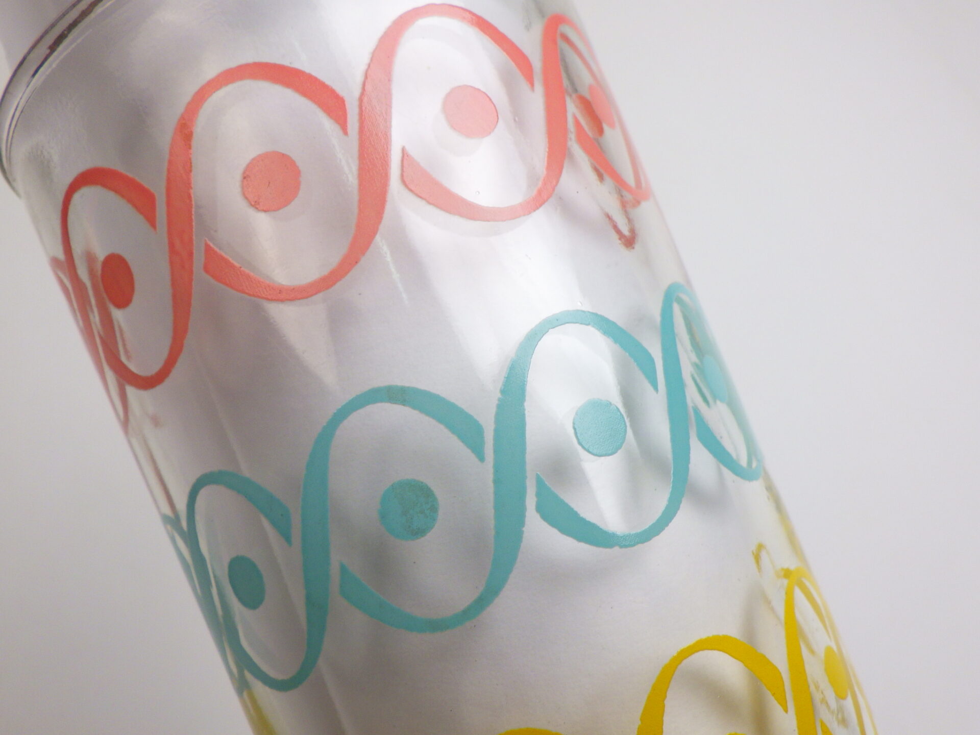 | アメリカで買い付けました。 おそらく元は蓋付きの販売用容器だったと思われます。 パステルカラーの幾何学模様が爽やかで、インテリアとして飾っておくのにもオススメです。 高さもあるのでフラワーポットとしても使えそうですね。 |