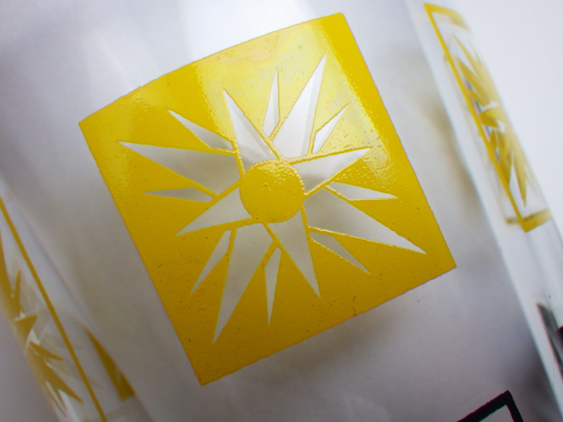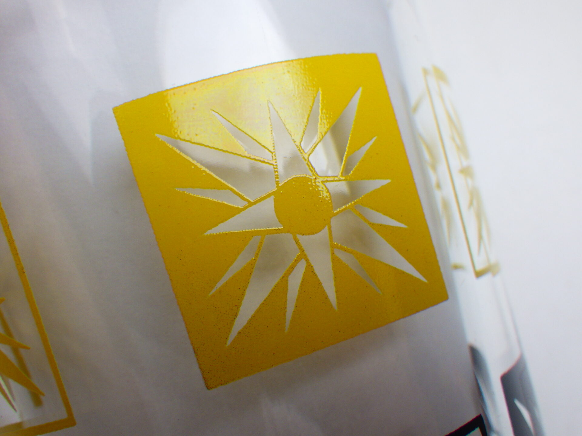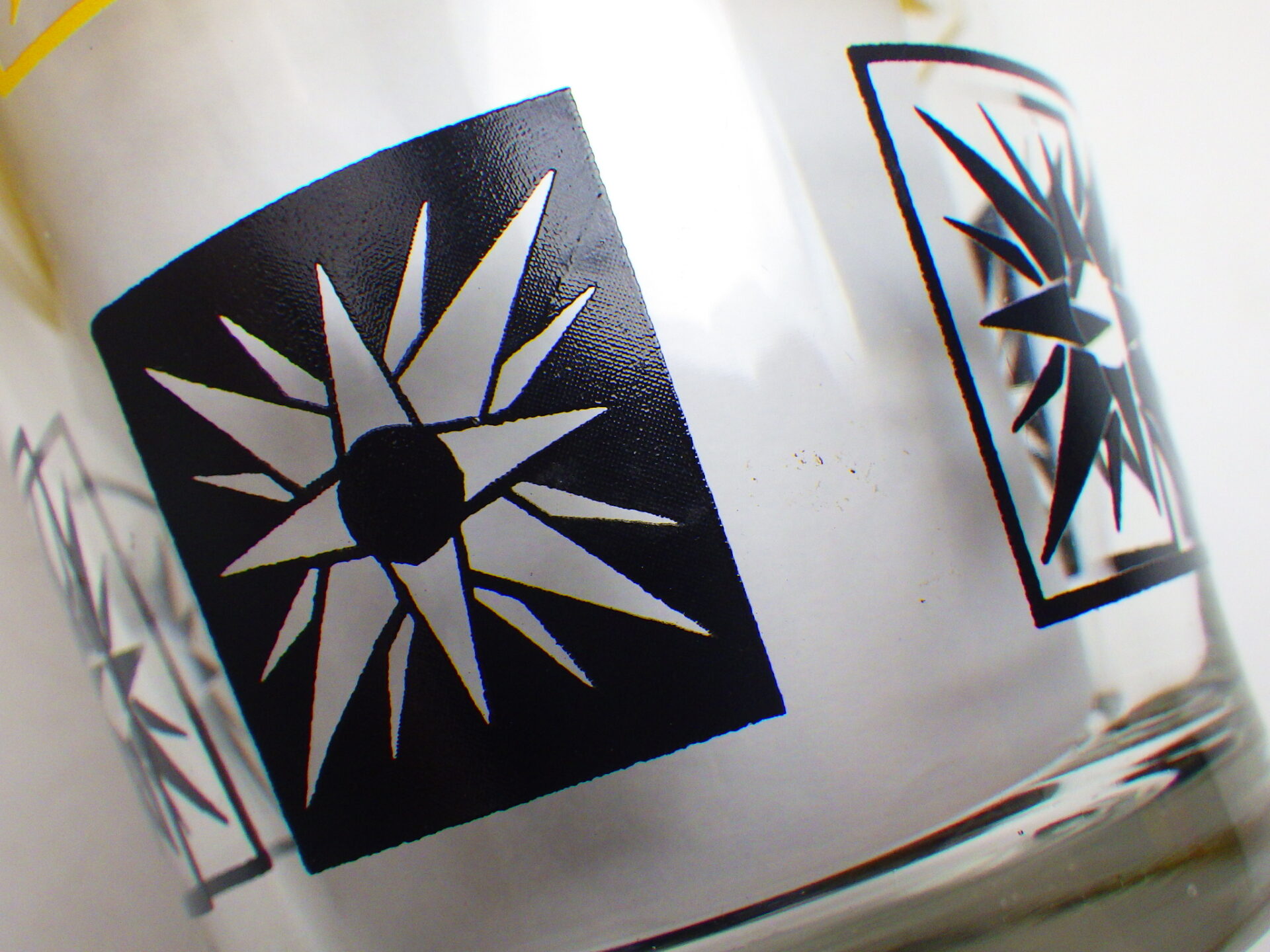 | product | "HAZEL-ATLAS" Sour cream glass Aztec Sun/ヘーゼルアトラス サワークリームグラス イエロー×ブラック |