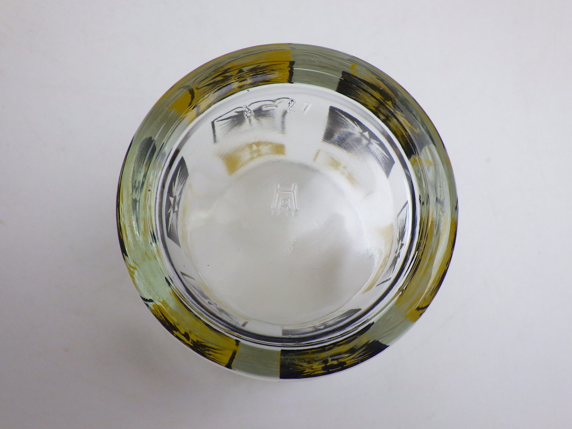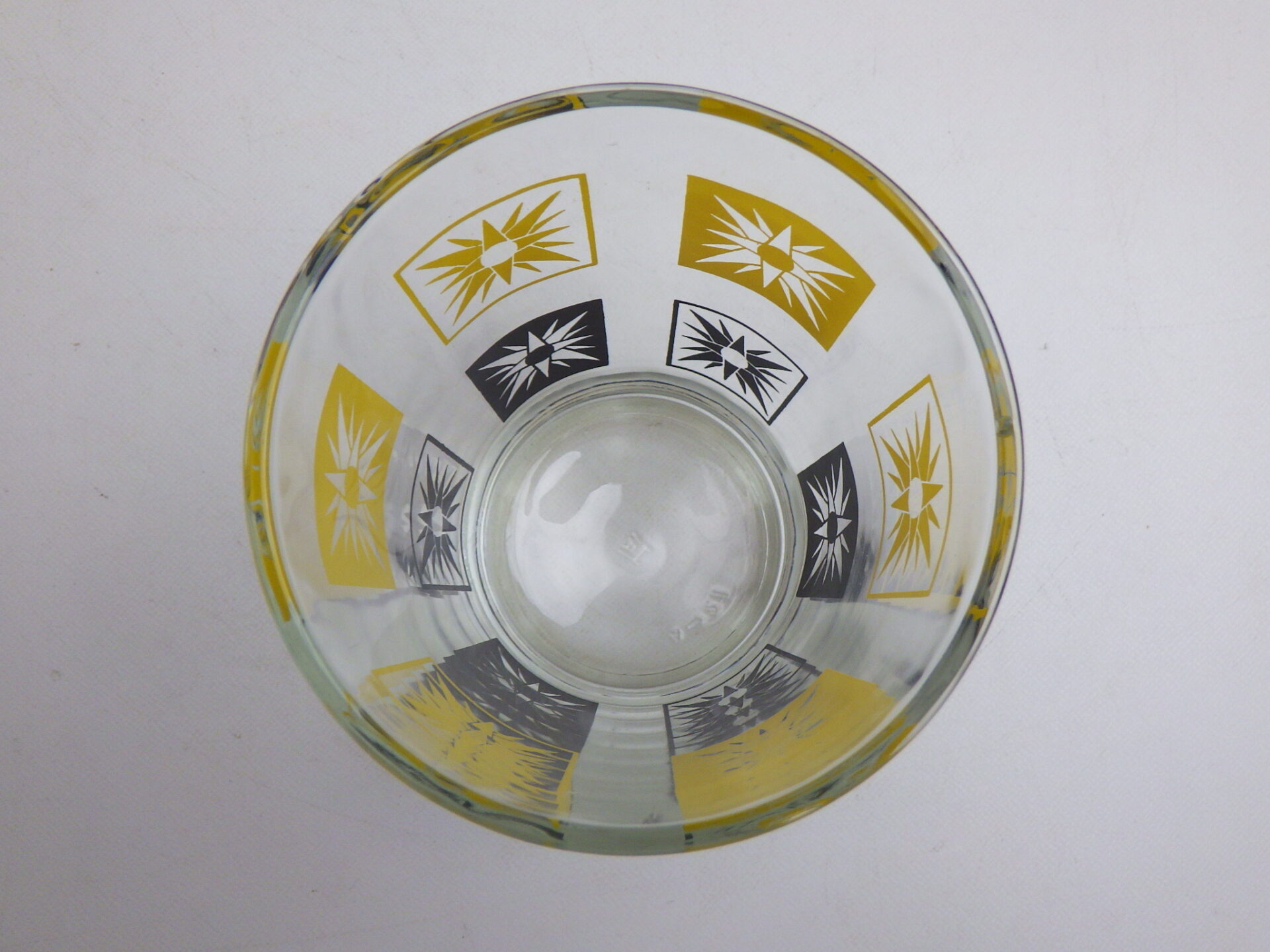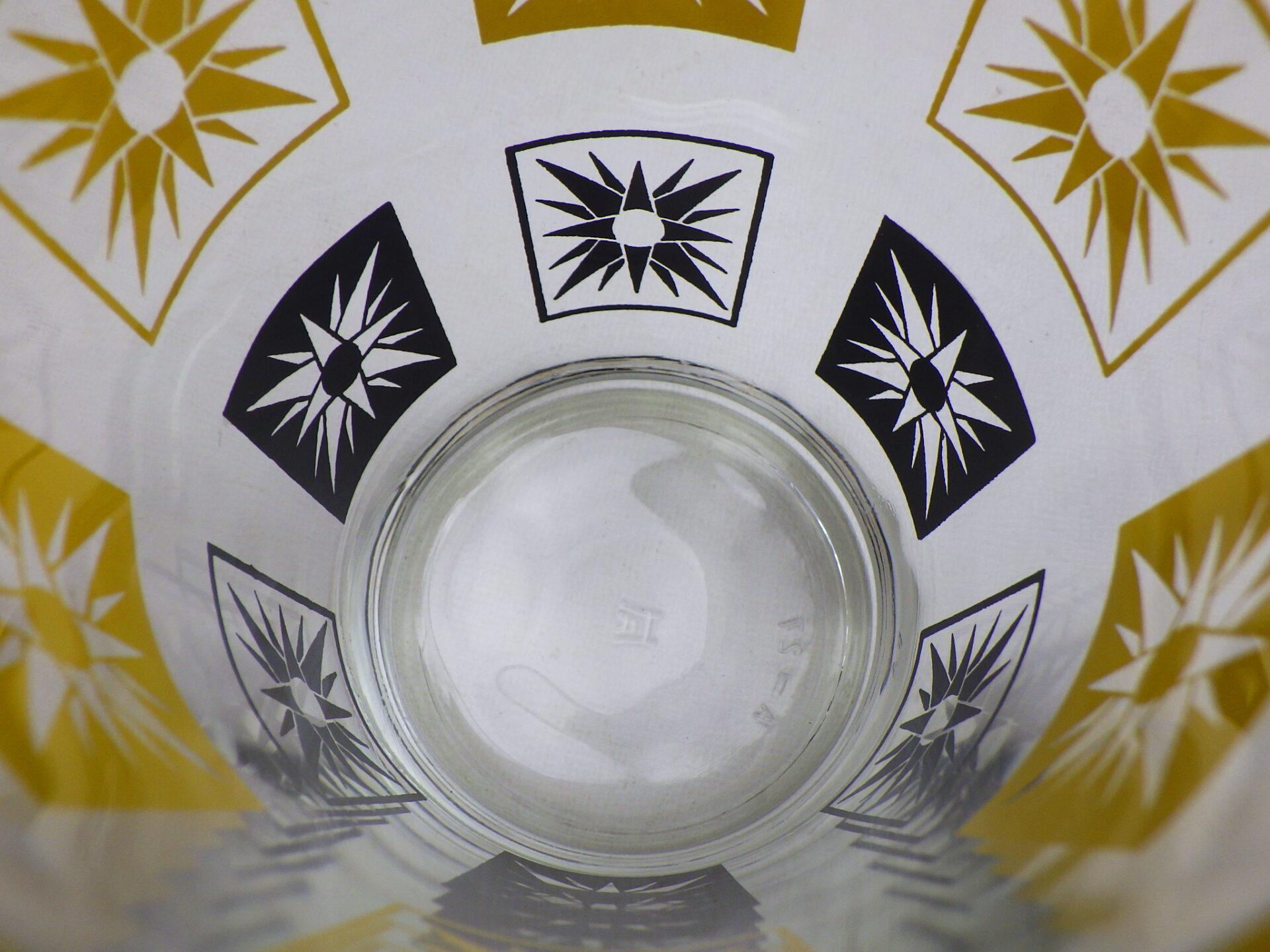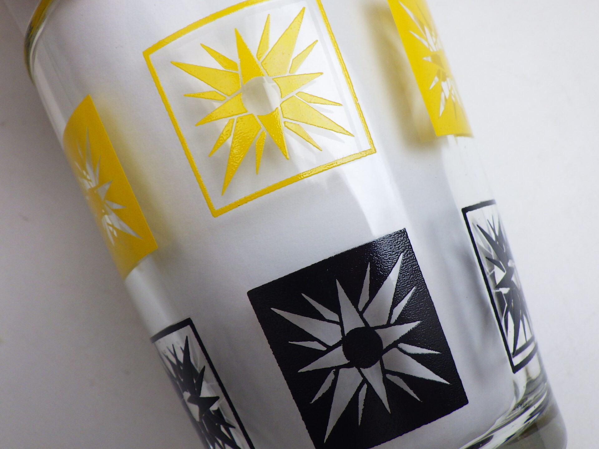 | product | "HAZEL-ATLAS" Sour cream glass Aztec Sun/ヘーゼルアトラス サワークリームグラス イエロー×ブラック |