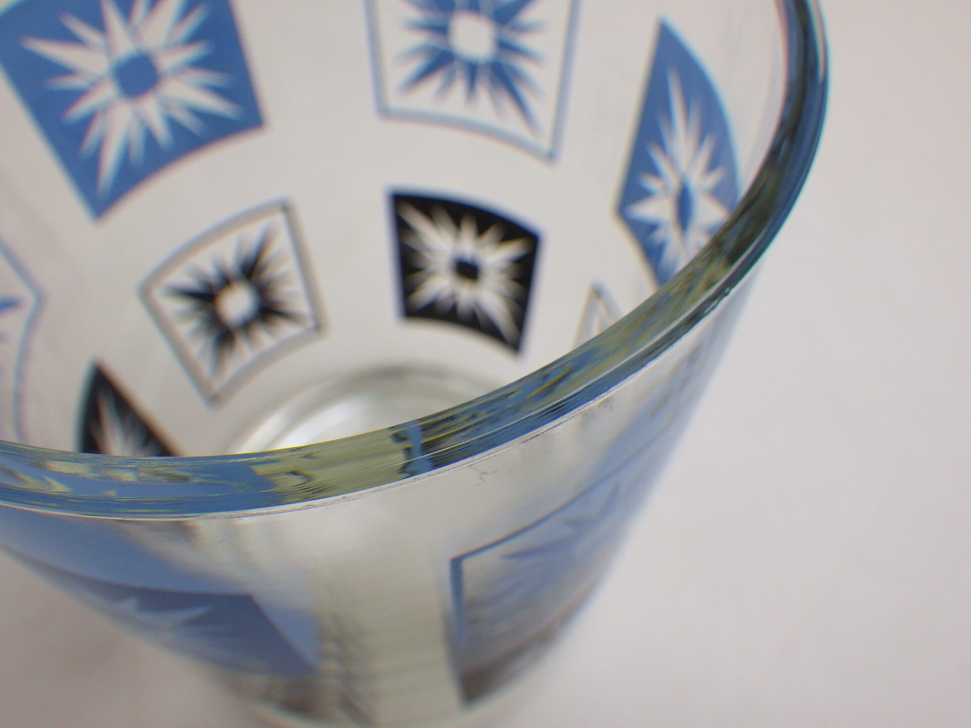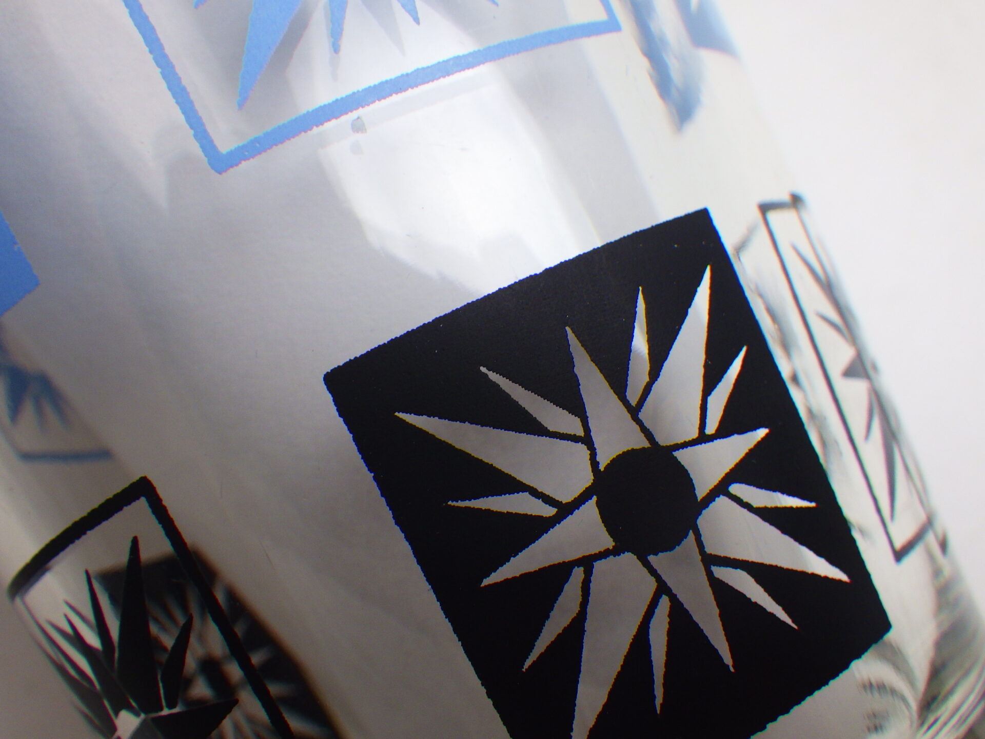 | product | "HAZEL-ATLAS" Sour cream glass Aztec Sun/ヘーゼルアトラス サワークリームグラス ブルー×ブラック |