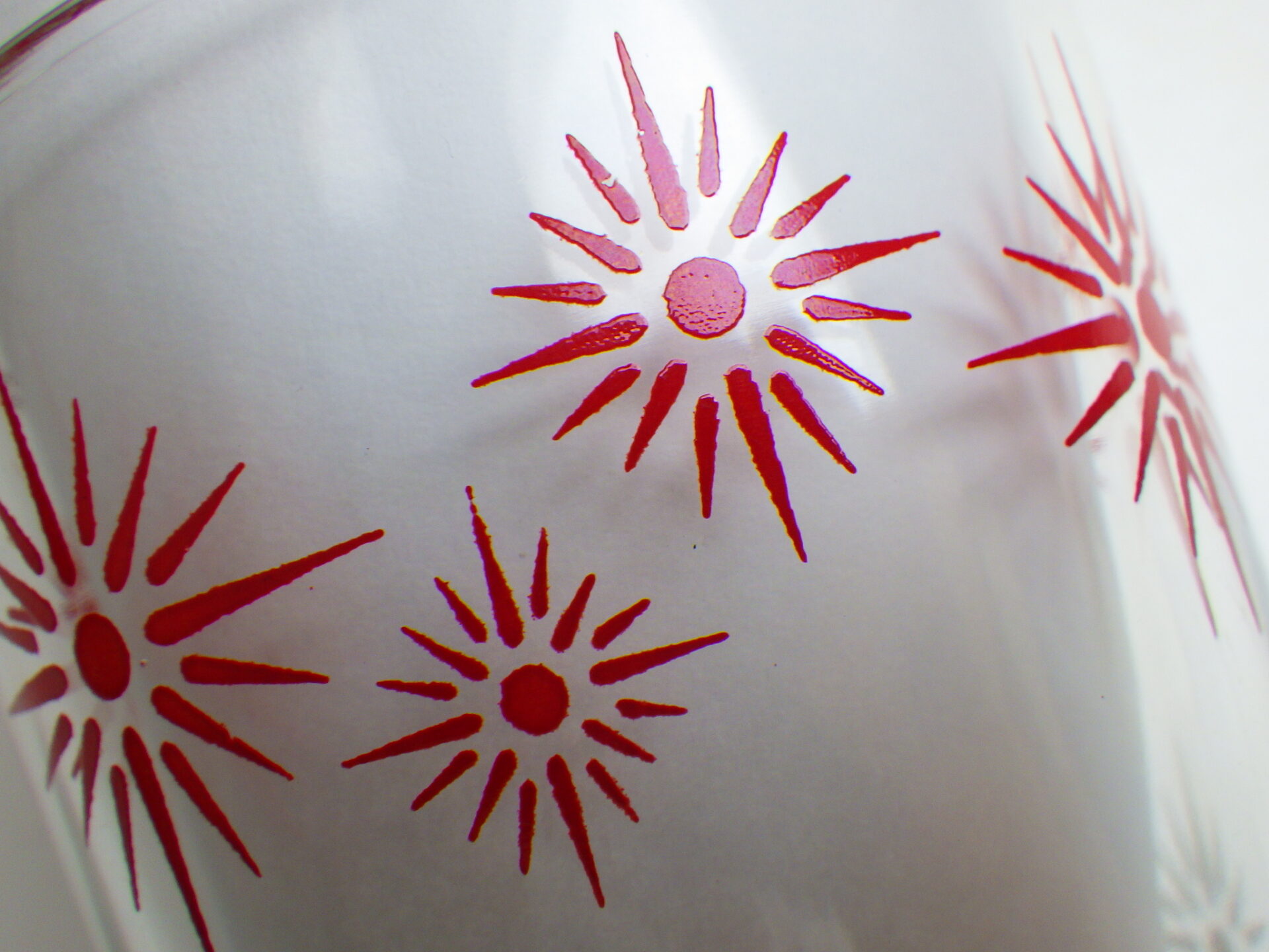 | 1950年頃から1970年頃までヘーゼルアトラスが、サワークリームの容器として製造していました。 プリントの種類も多くコレクターズアイテムとしてとても人気です。 こちらは1/2pintよりも大きな1pintサイズ(約473ml)で珍しいアイテムです。 |