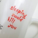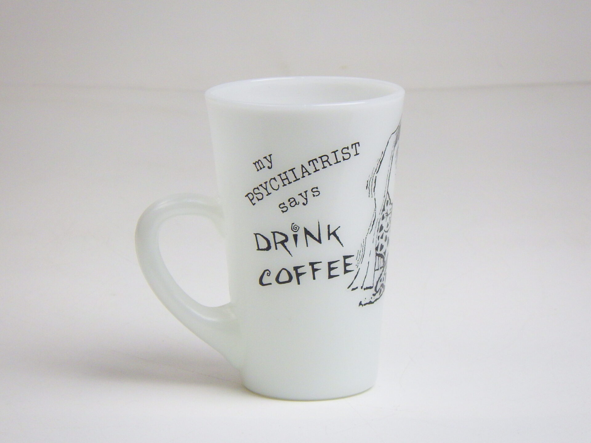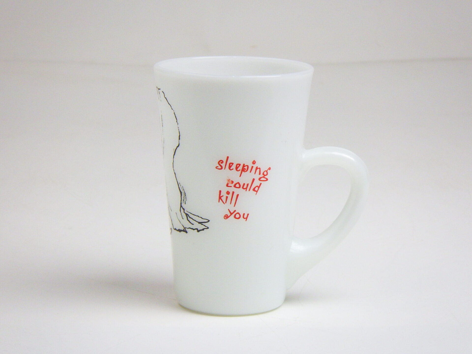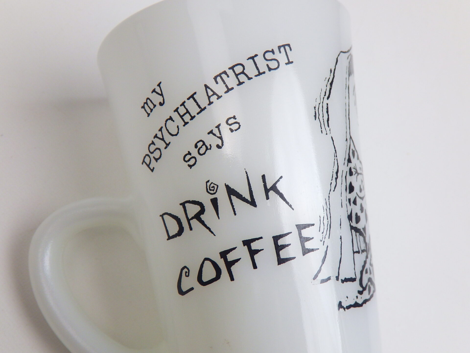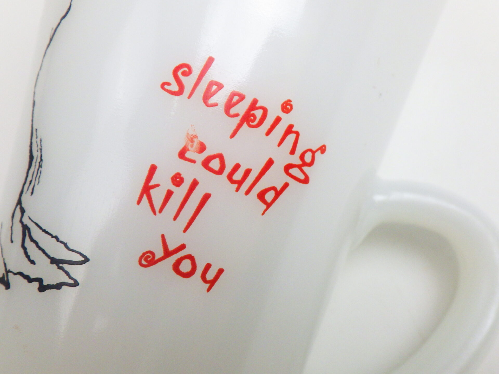 | 「コーヒーは眠りを妨げます」というコピーと共にガクガク震える男の人がコミカルに描かれた、一コマ漫画のプリントマグです。 コーヒーを題材にしたこちらのシリーズは他のパターンも存在します。 約360cc程の容量なので、ビールや氷たっぷりのジュースなどにもピッタリですね。 ※パティオには元々刻印はありません |