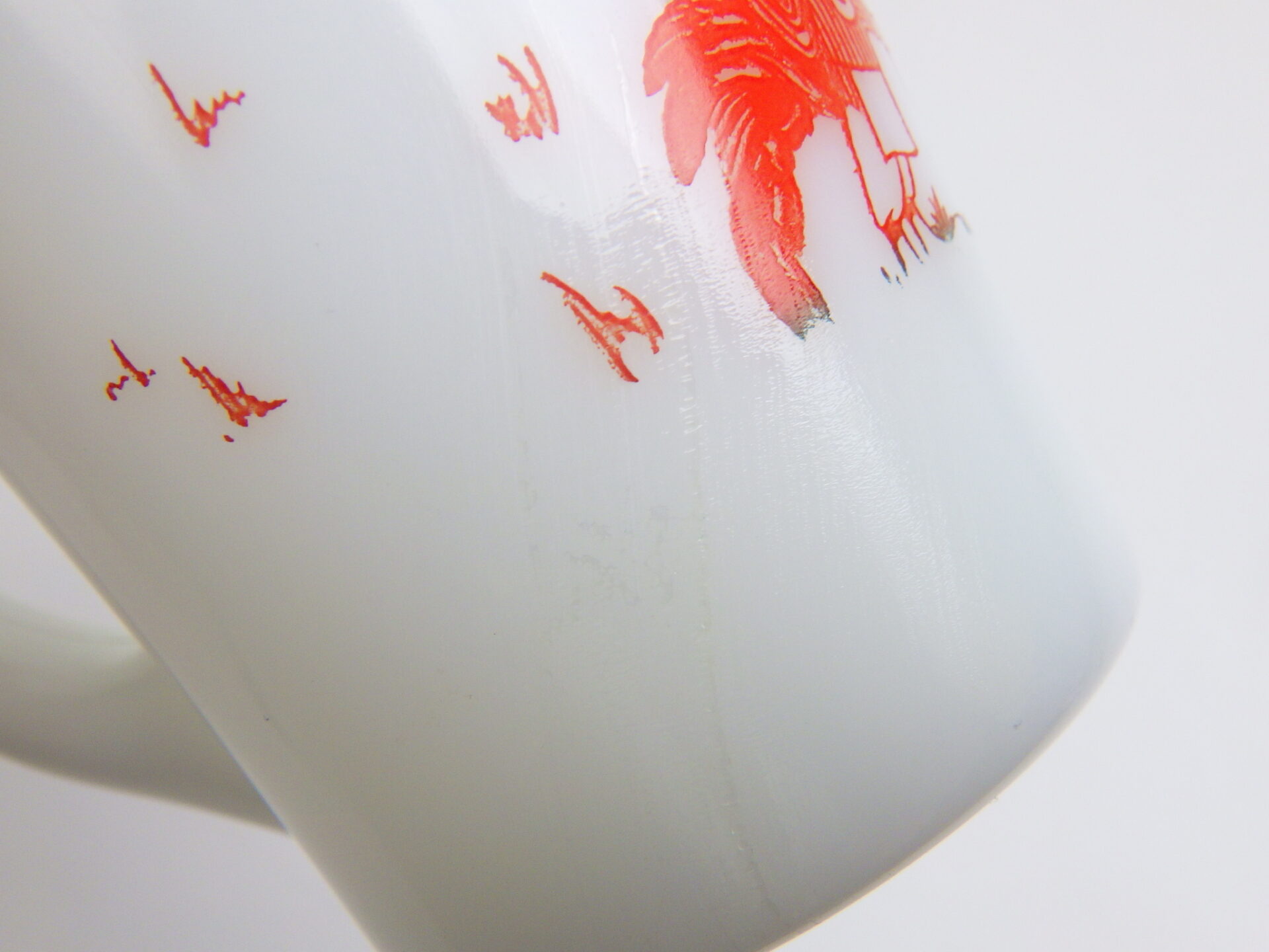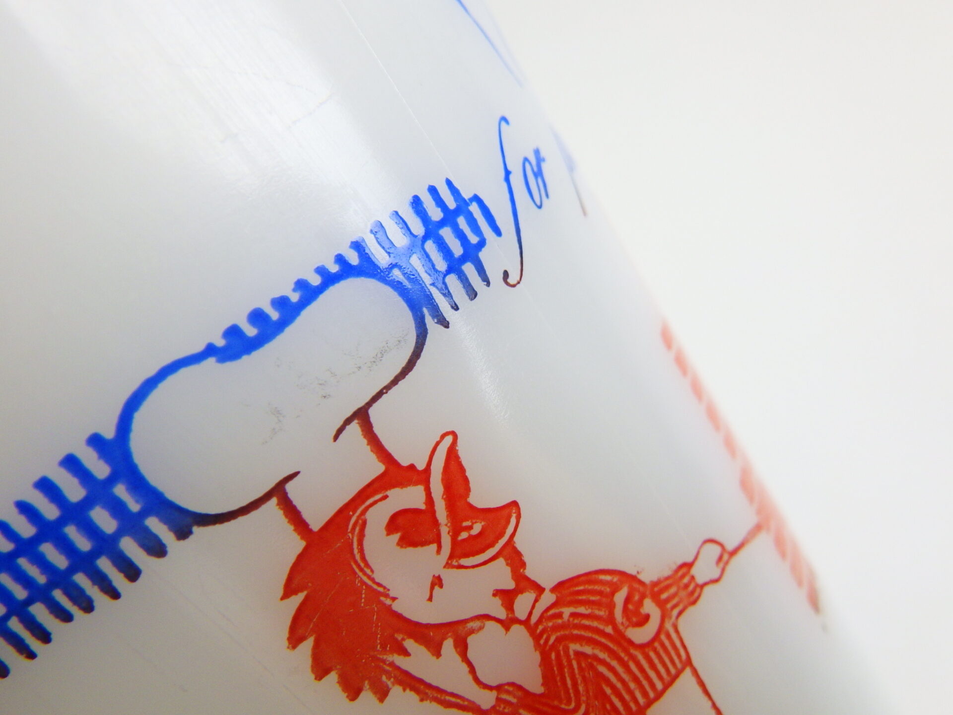 | アメリカンラガービール「ジョーベルビア」のアドバタイジングマグです。 ジョーベルのマスコットキャラクターがバーベキューをしている様子がプリントされています。 ビール会社のアドマグなので、ビールを飲むのにまさにぴったりのアイテムですね。 |