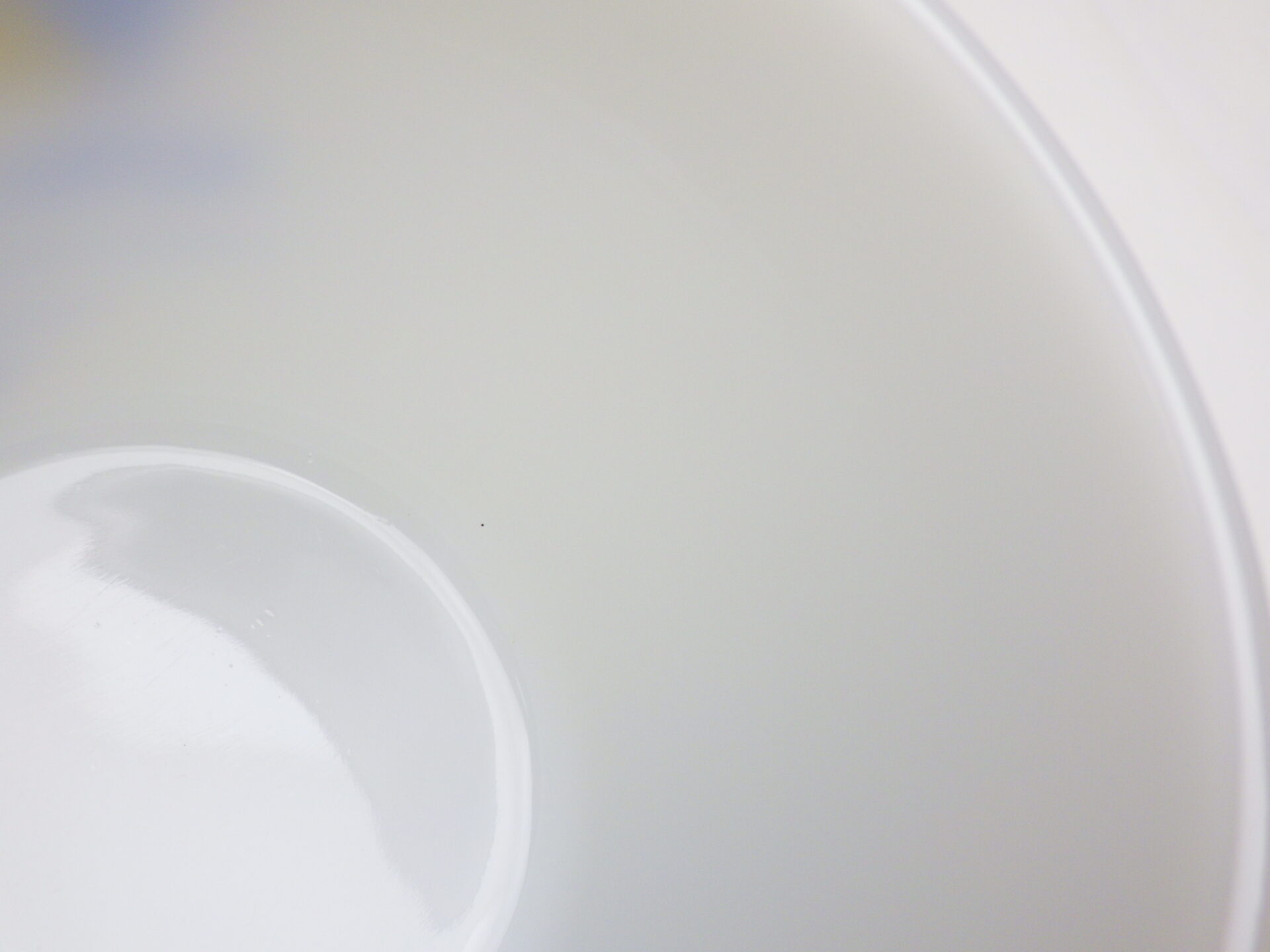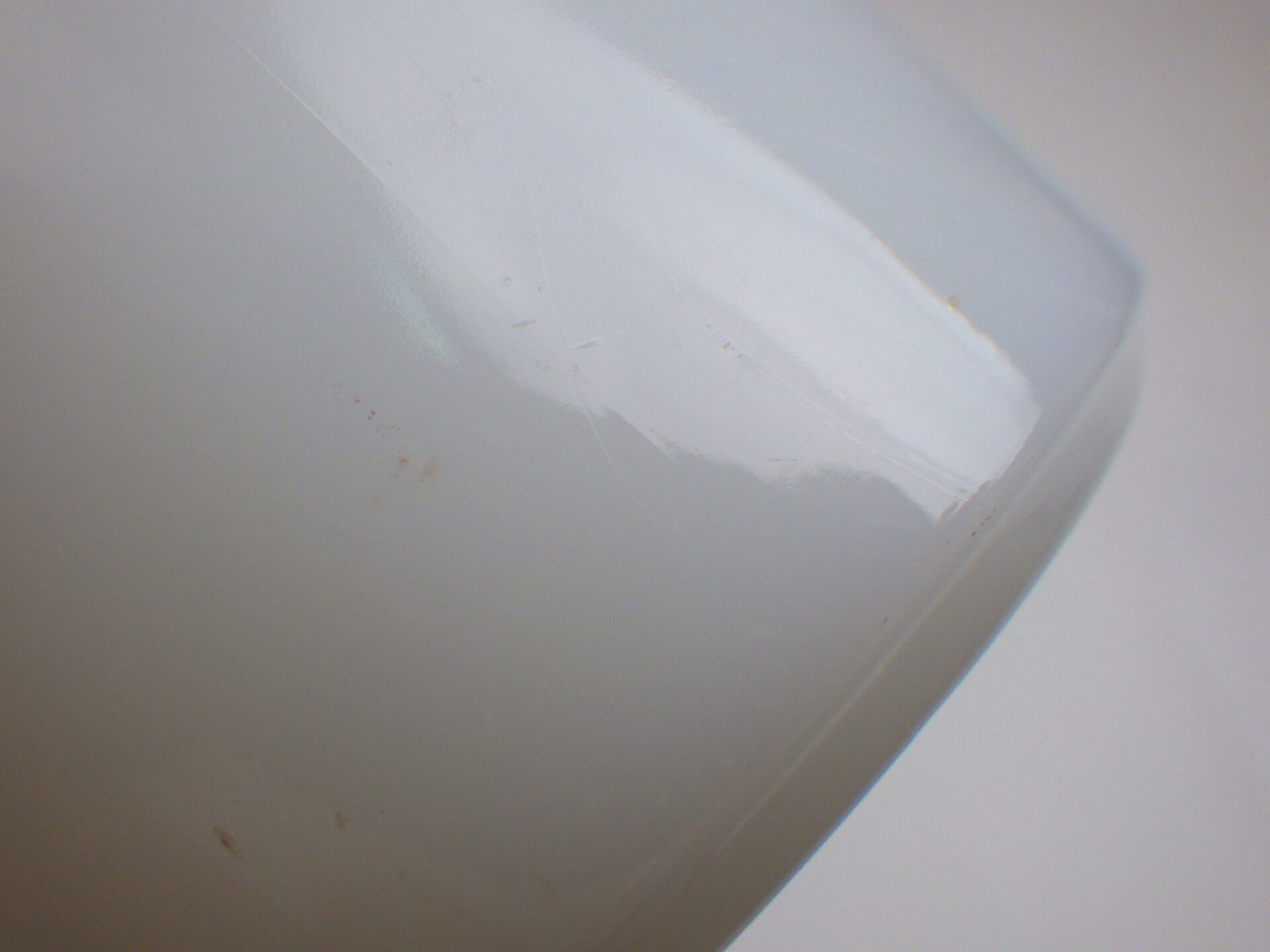 | condition | 製造時よりのアライン、劣化線、バブル痕がみられます。 リム、ボトムにわずかな着色がみられます。 その他ワレ、カケなく、ツヤもあり綺麗な状態です。 |