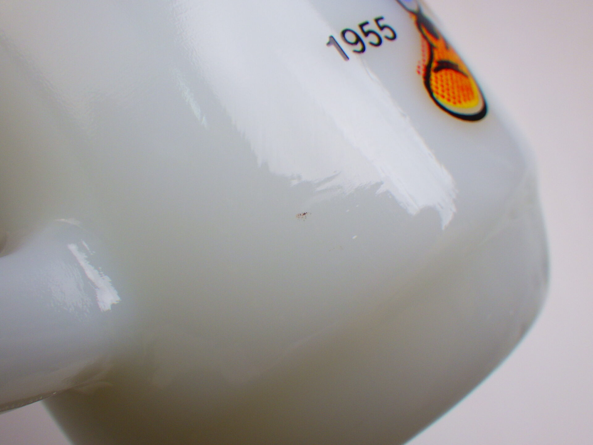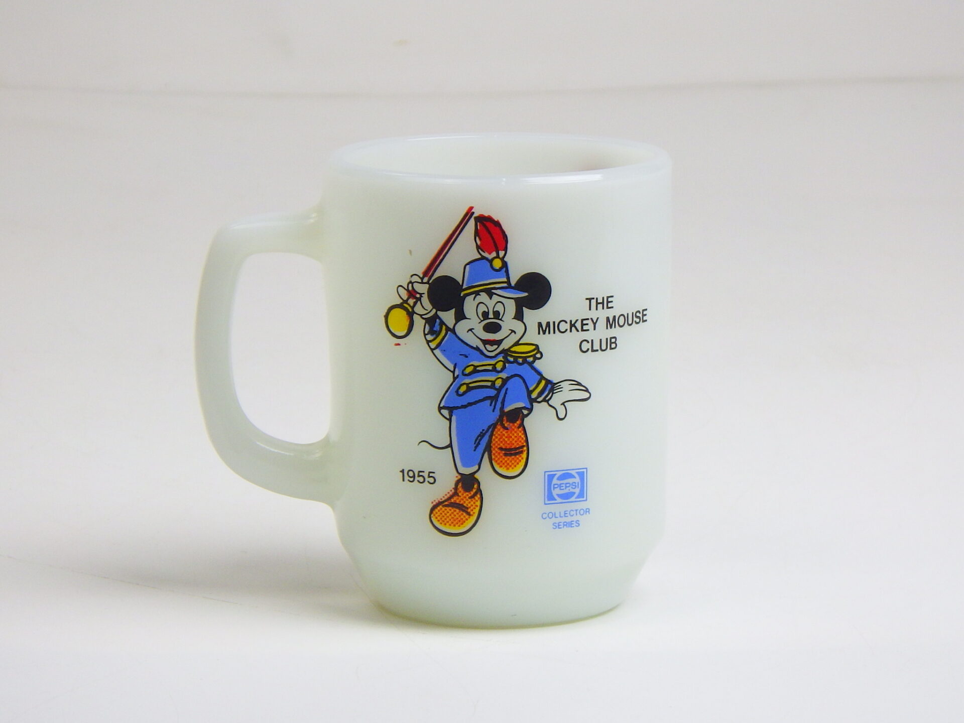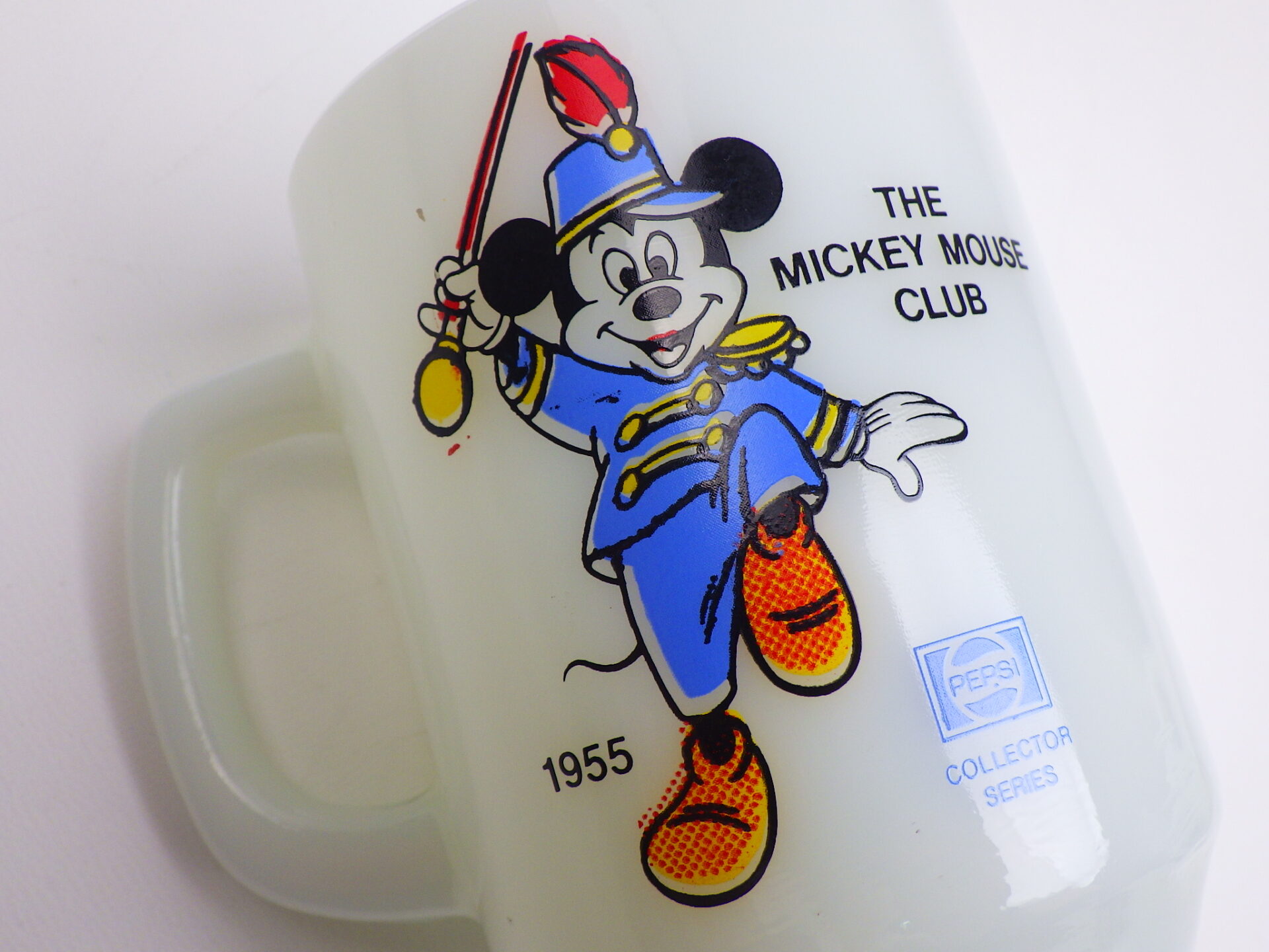 | 1980年にペプシがノベルティで作ったディズニーマグです。 ペプシのロゴもプリントされています。 こちらはディズニー制作のテレビ番組「ミッキーマウス・クラブ」がモチーフになっています。1955年に開始され、リバイバル版として1989年に復活した伝説的番組で、日本でも話題となった「ラ・ラ・ランド」の主演ライアン・ゴズリングもこの番組出身です。(その他の出演者には、ブリトニー・スピアーズやジャスティン・ティンバーレイク等もいます) |