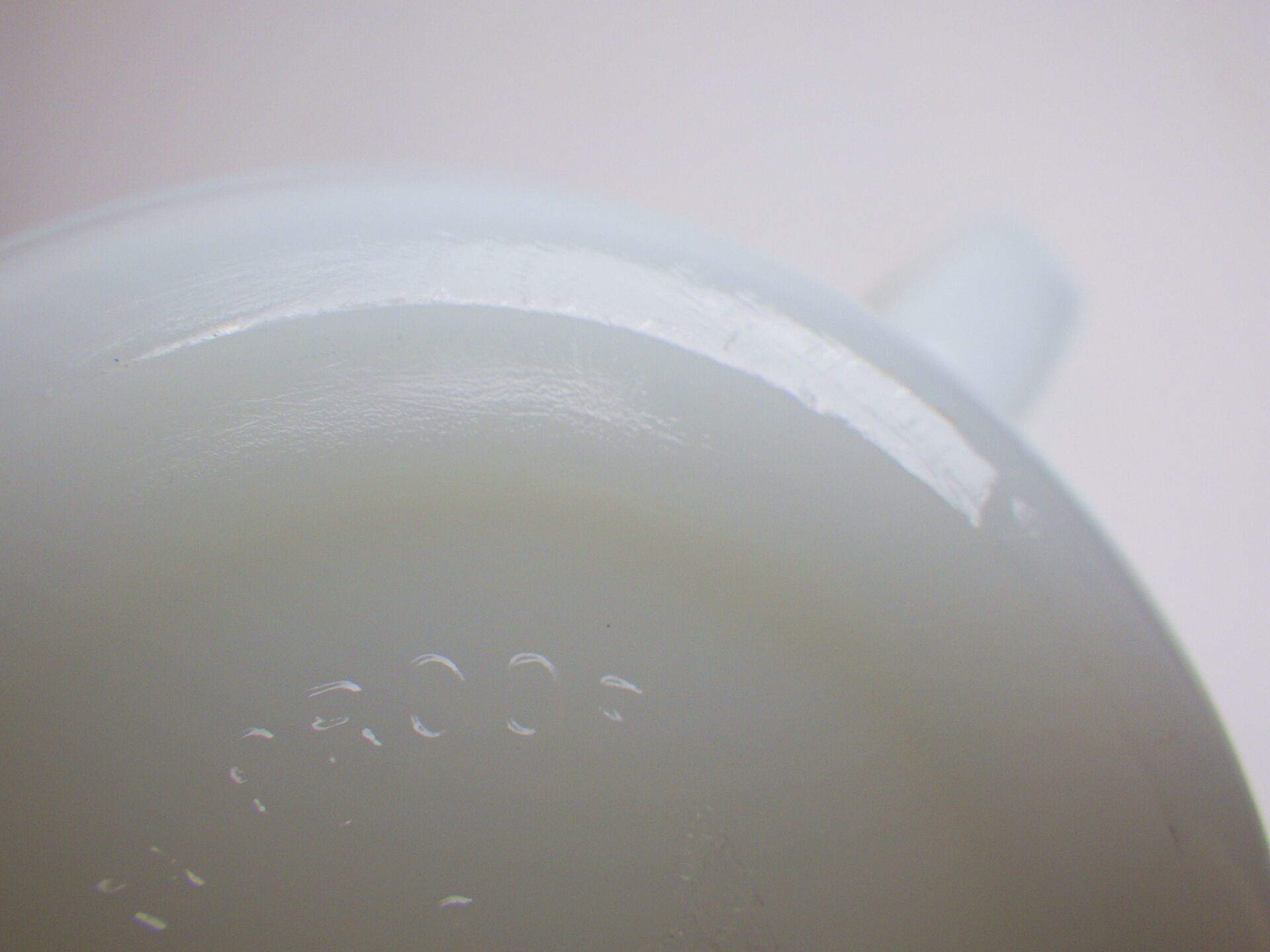 | condition | リム、ハンドル、ボトムにわずかな着色があります。 製造時よりのヘアライン、劣化線、バブル痕、ホワイトスポット、インク着色がみられます。 その他ワレ、カケなく、ツヤもあり良い雰囲気です。 |