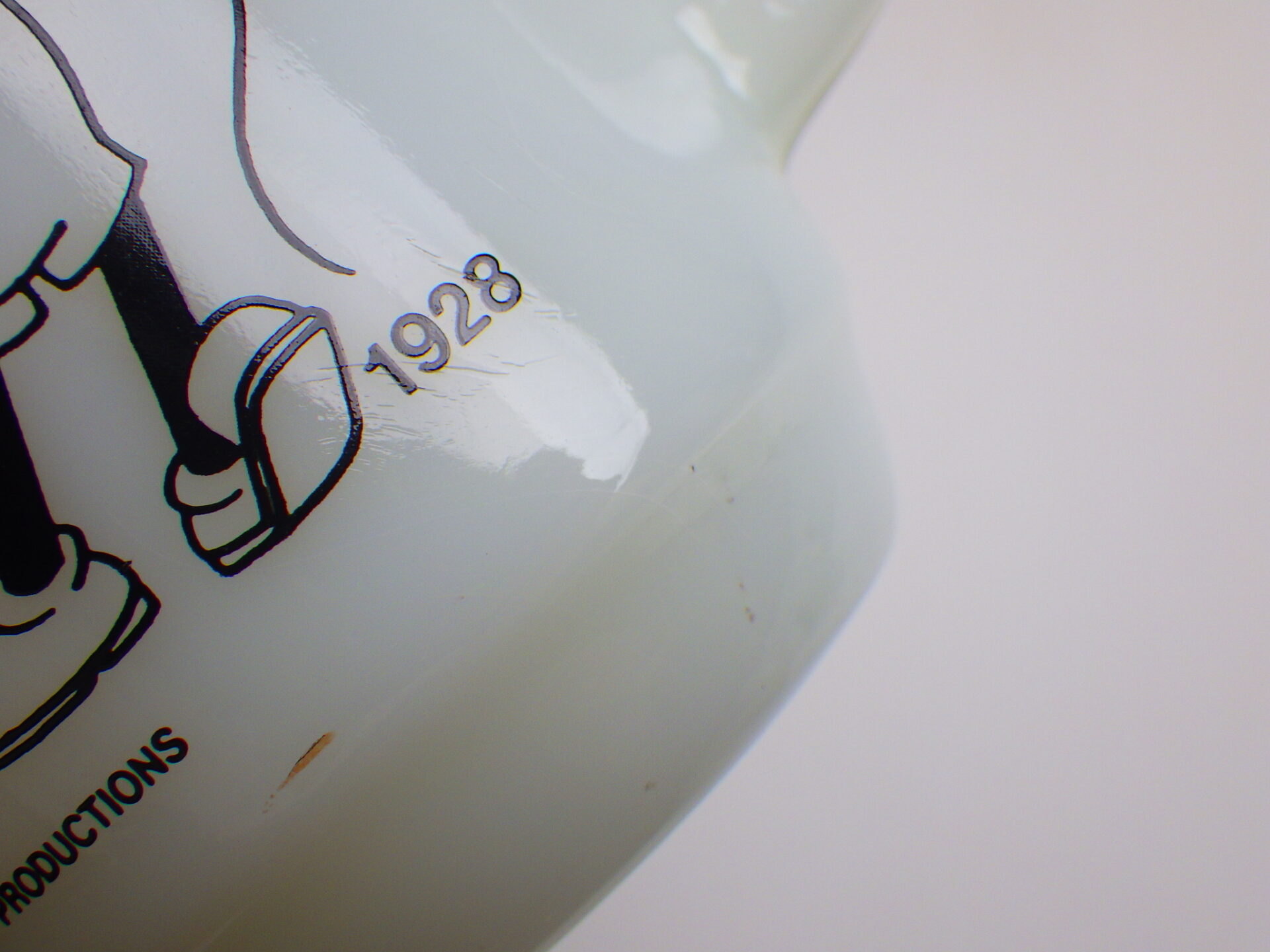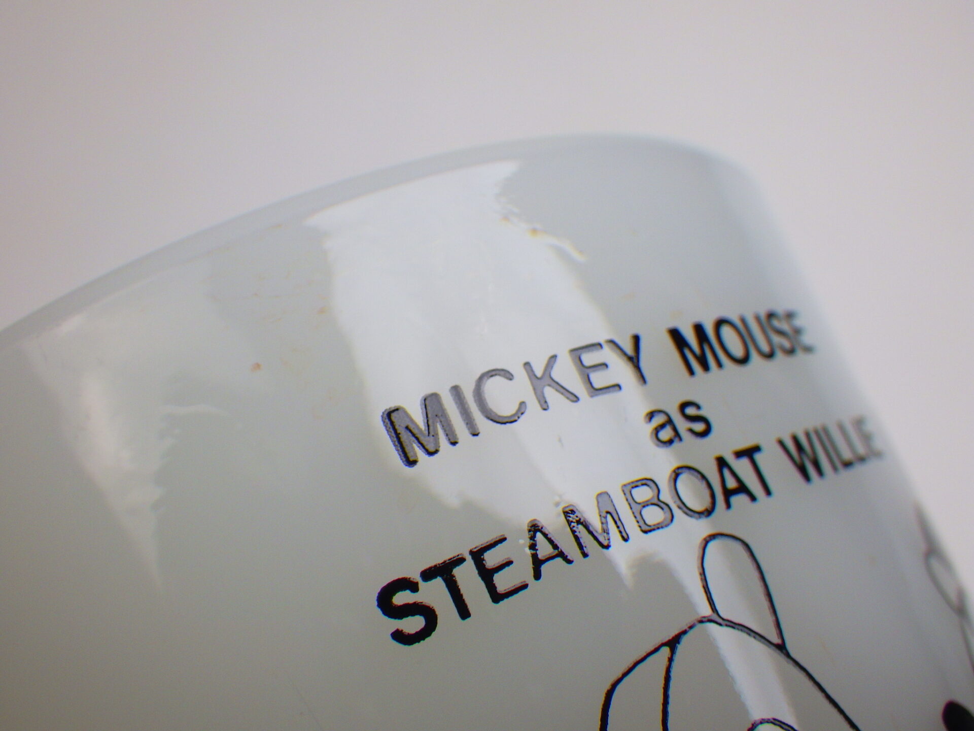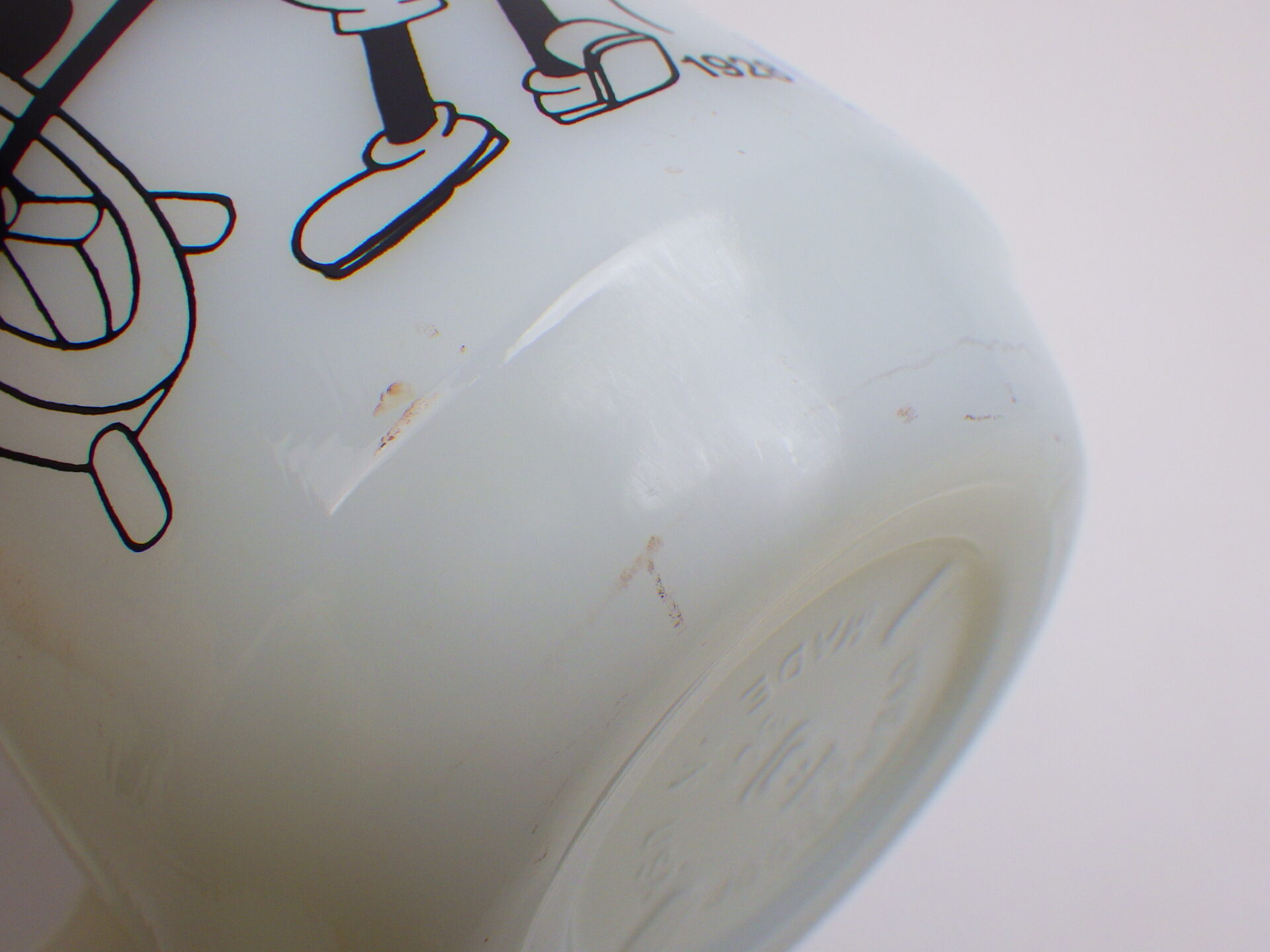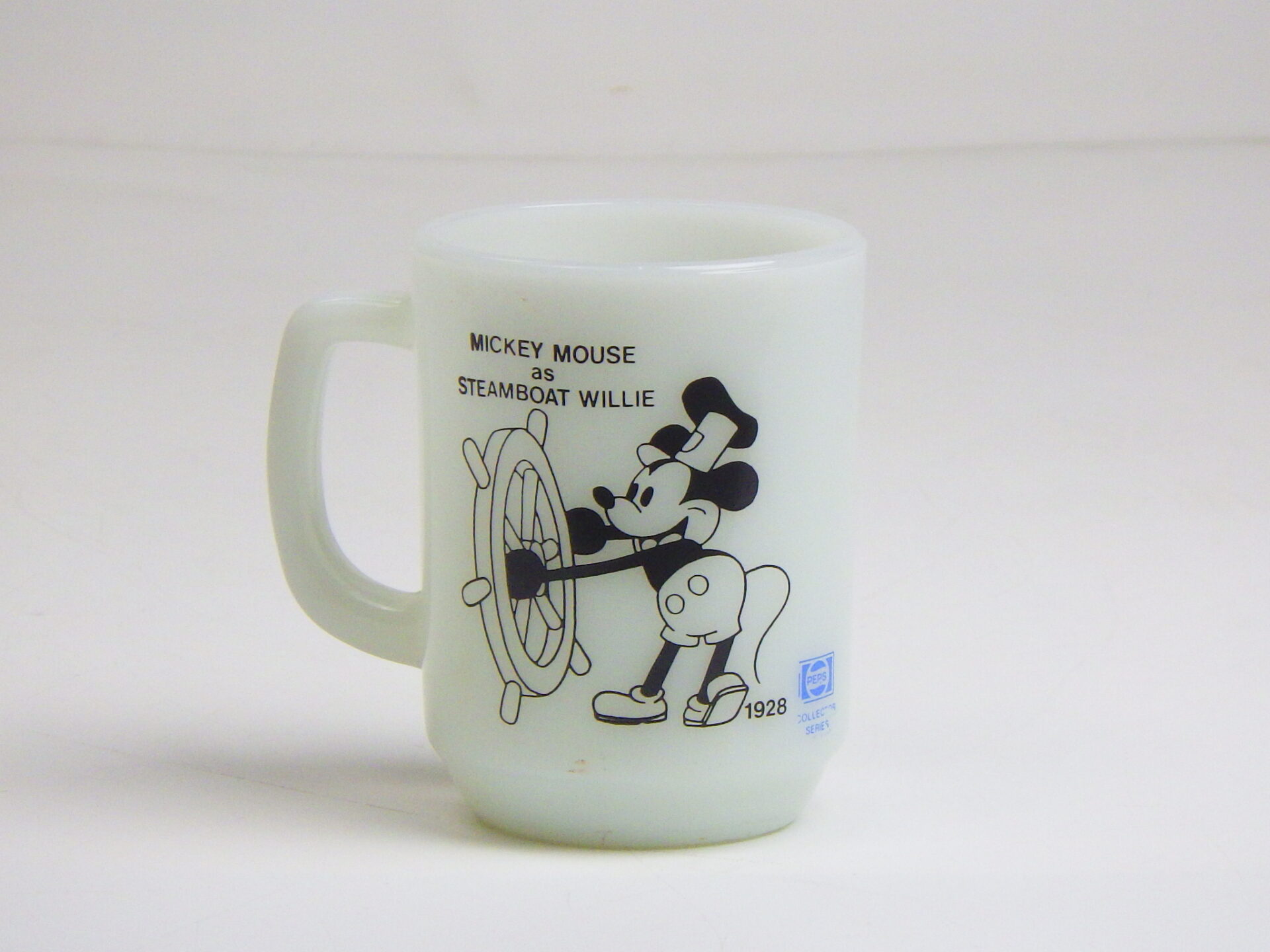 | 1980年にペプシがノベルティで作ったディズニーマグです。 ペプシのロゴもプリントされています。 こちらは1928年11月18日にミッキーがスクリーンデビューを飾った作品「蒸気船ウィリー」がモチーフとなっています。 |