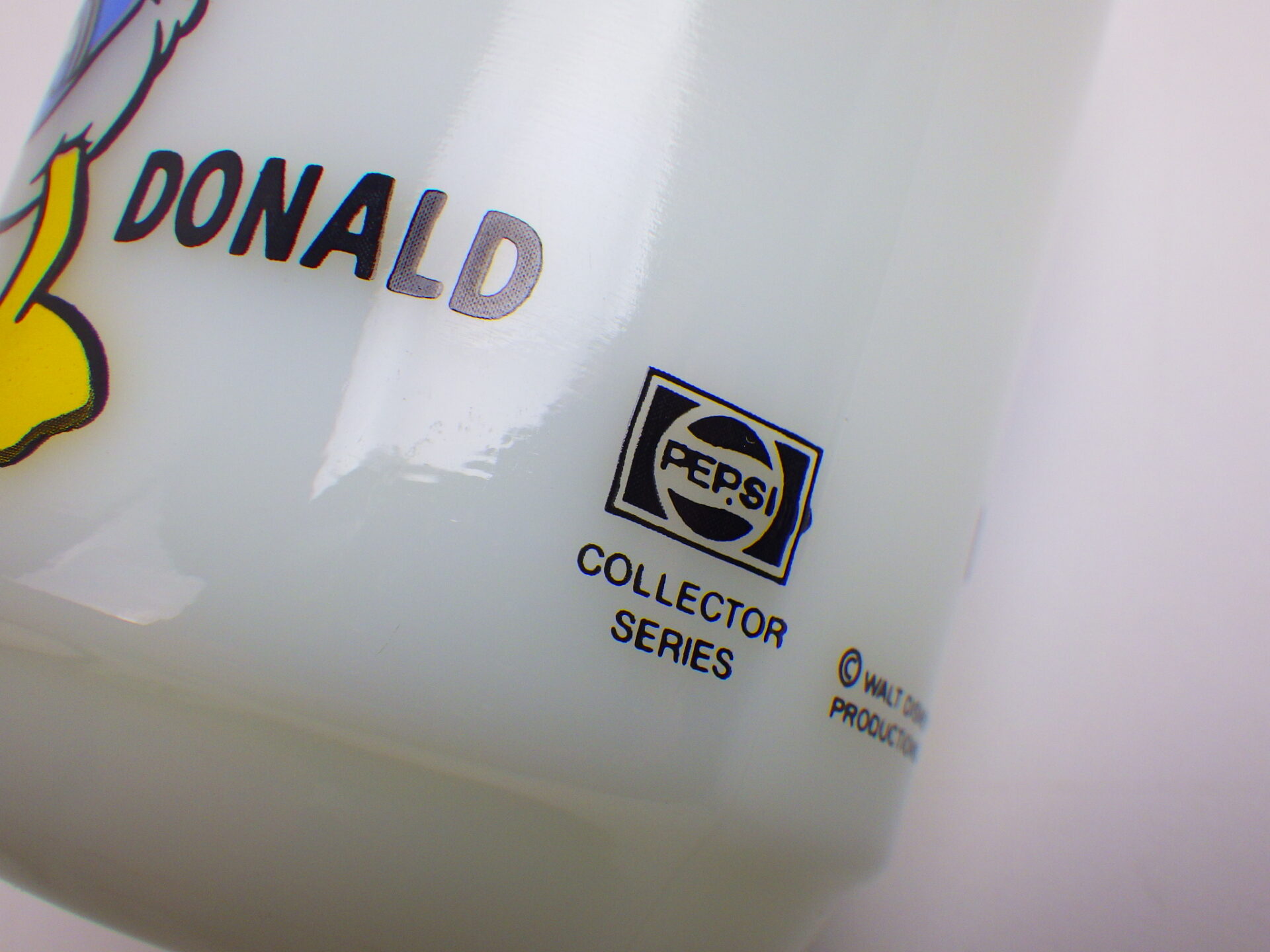 | 1980年にペプシがノベルティで作ったディズニーマグです。 ペプシのロゴもプリントされています。 こちらはディズニーの人気キャラクター「ドナルド・ダック」のバージョンです。代表的なマリンルックが可愛いですね。 |