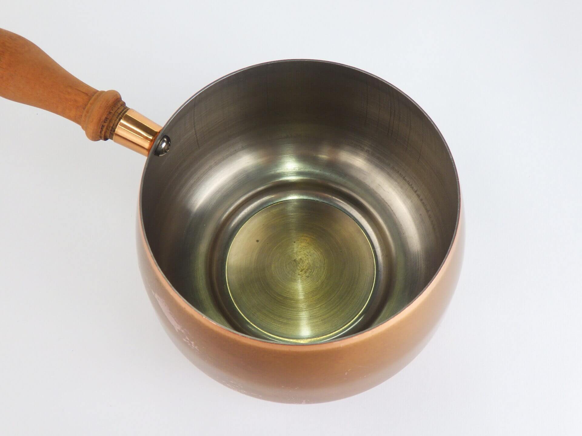 | アメリカで買い付けしたビンテージの銅製片手鍋です。 しっかりとした厚みがあり、熱伝導率も良いためプロの世界でも愛用されています。 まん丸な木製の持ち手がとても可愛く、お料理の時間が楽しくなりそうですね。 |