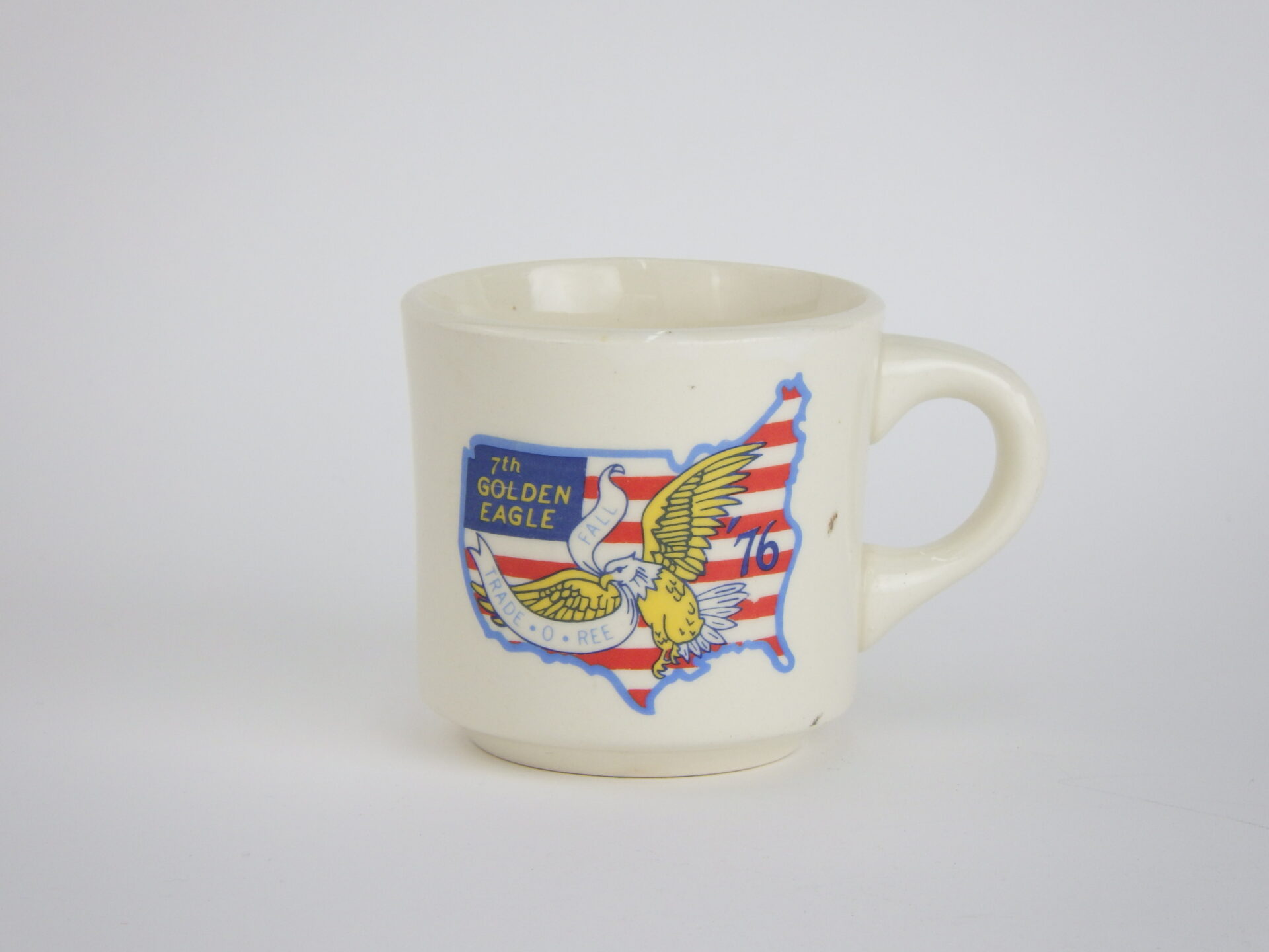 | 76年に行われた「TRADE・O・RE」(ボーイスカウトの記念品を販売したりするイベント)のロゴ入りマグです。 オハイオ州のチームのようです。 おウチ時間のコーヒータイムやアウトドアのお供にいかがですか? |