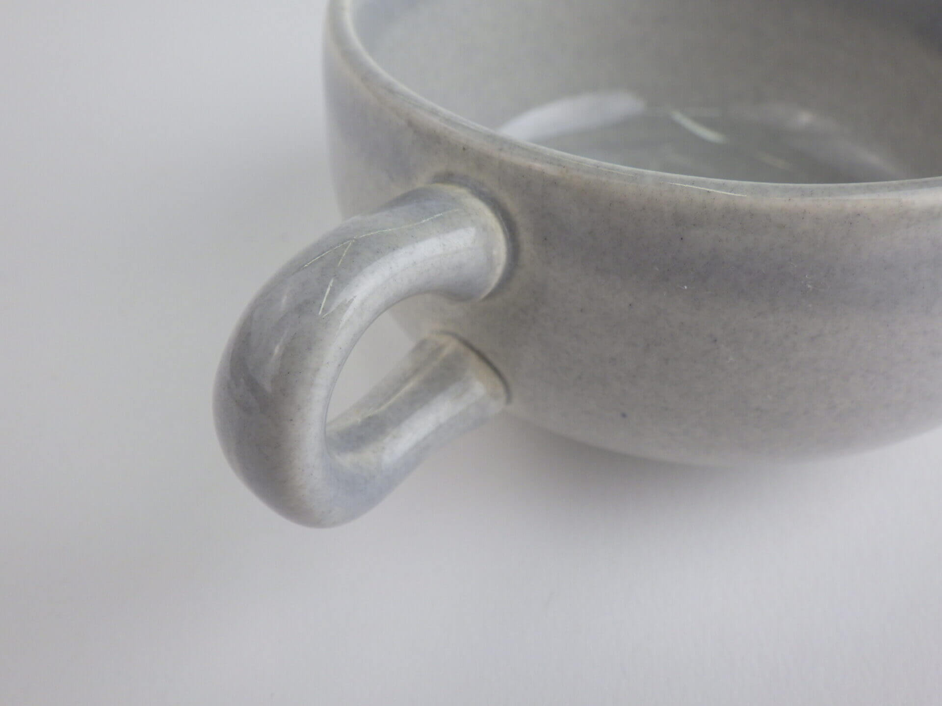 | 1939年から1959年に製造されたSteubenville(スチューベンヴィル)社製のアメリカンモダンシリーズです。 ラッセルライトらしい丸みがあり、縁がぽってりしているデザインで、とても可愛いですね。 上品さも兼ね揃えているので、来客用にもオススメしています。 |
